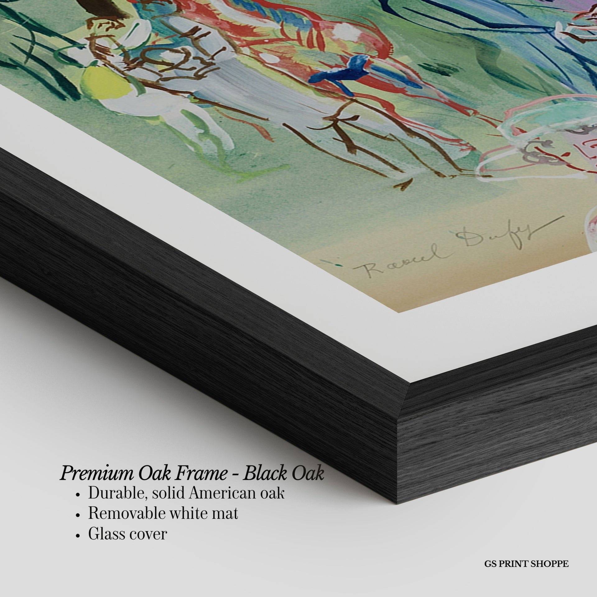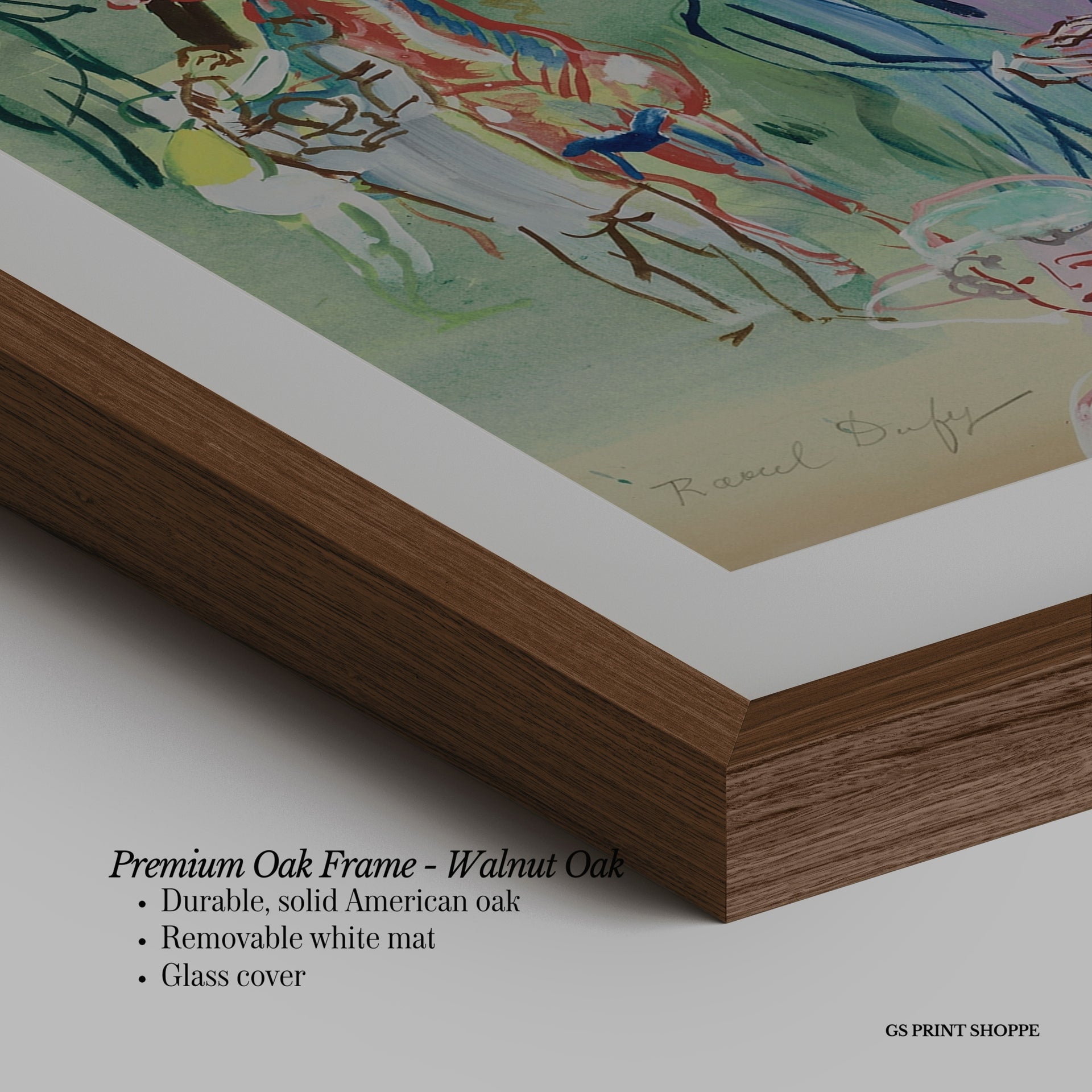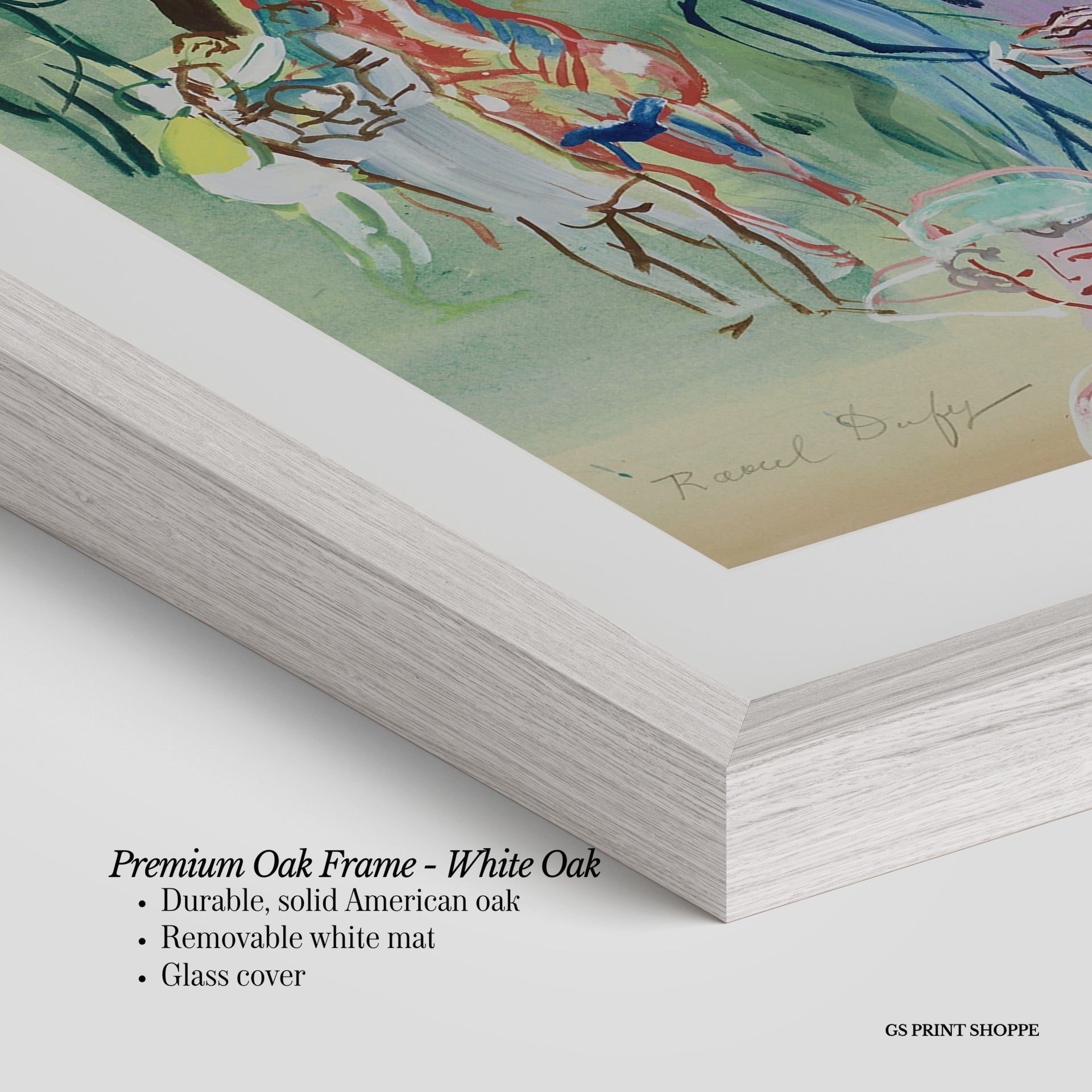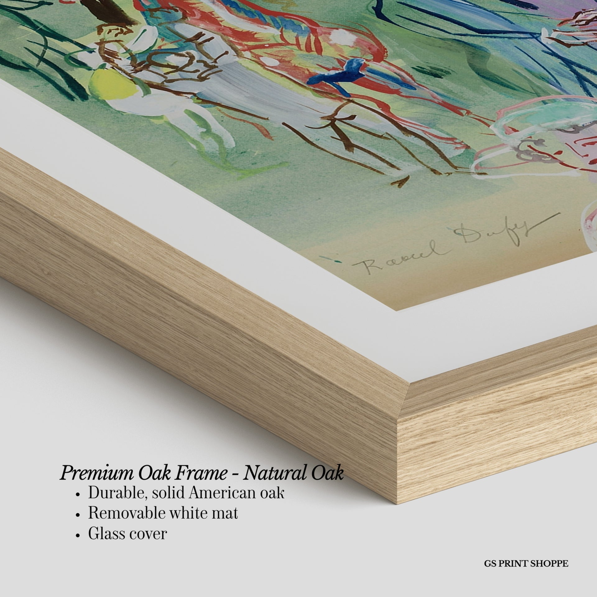 Premium Oak Frame: Our premium oak frame is crafted from solid American oak, offering a warm, natural feel with a high-end finish. We complete this elevated offering with a bright white removable mat and real glass for a versatile and polished look.