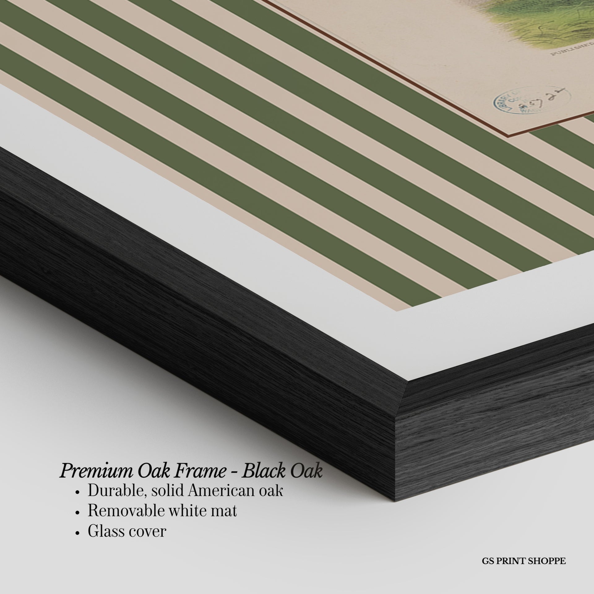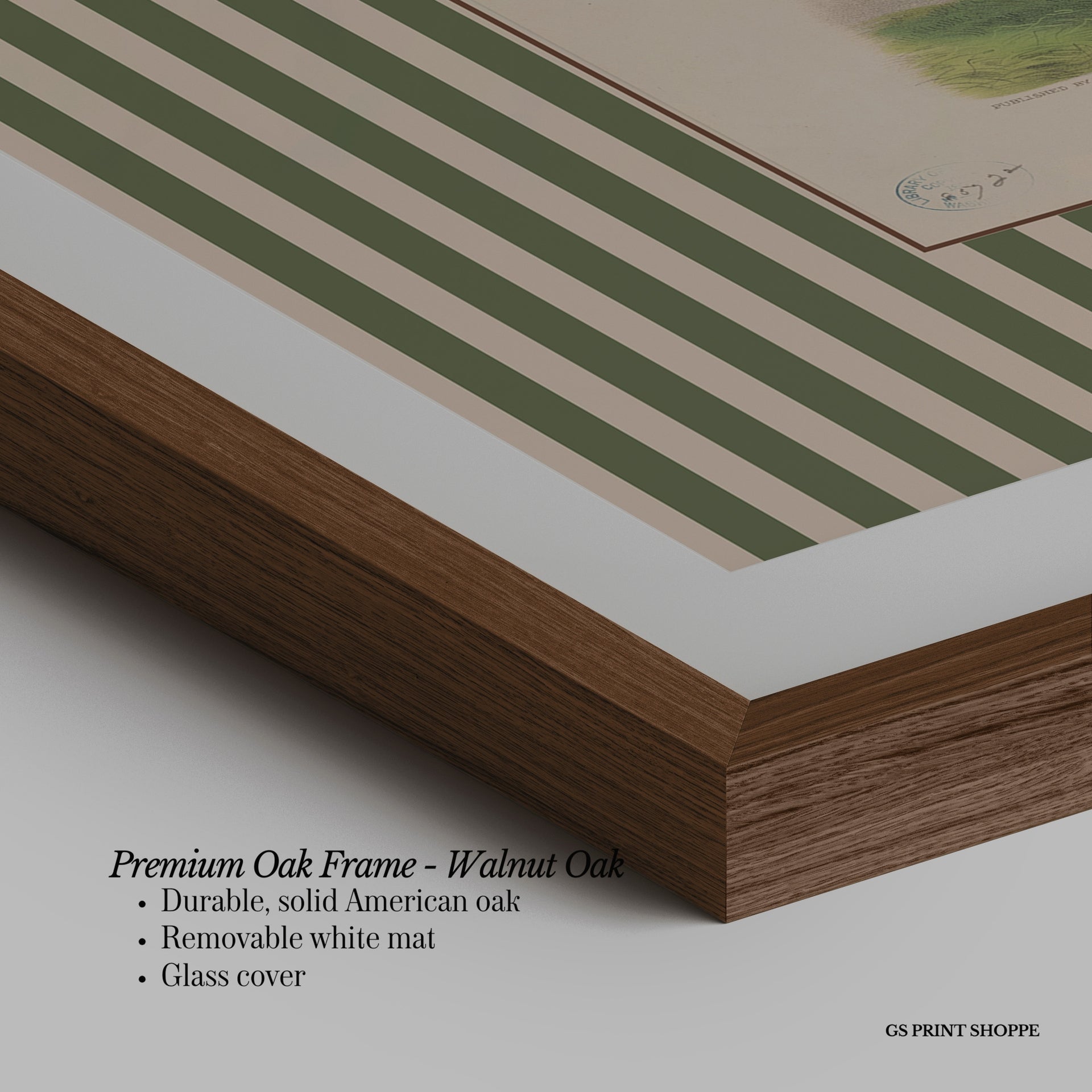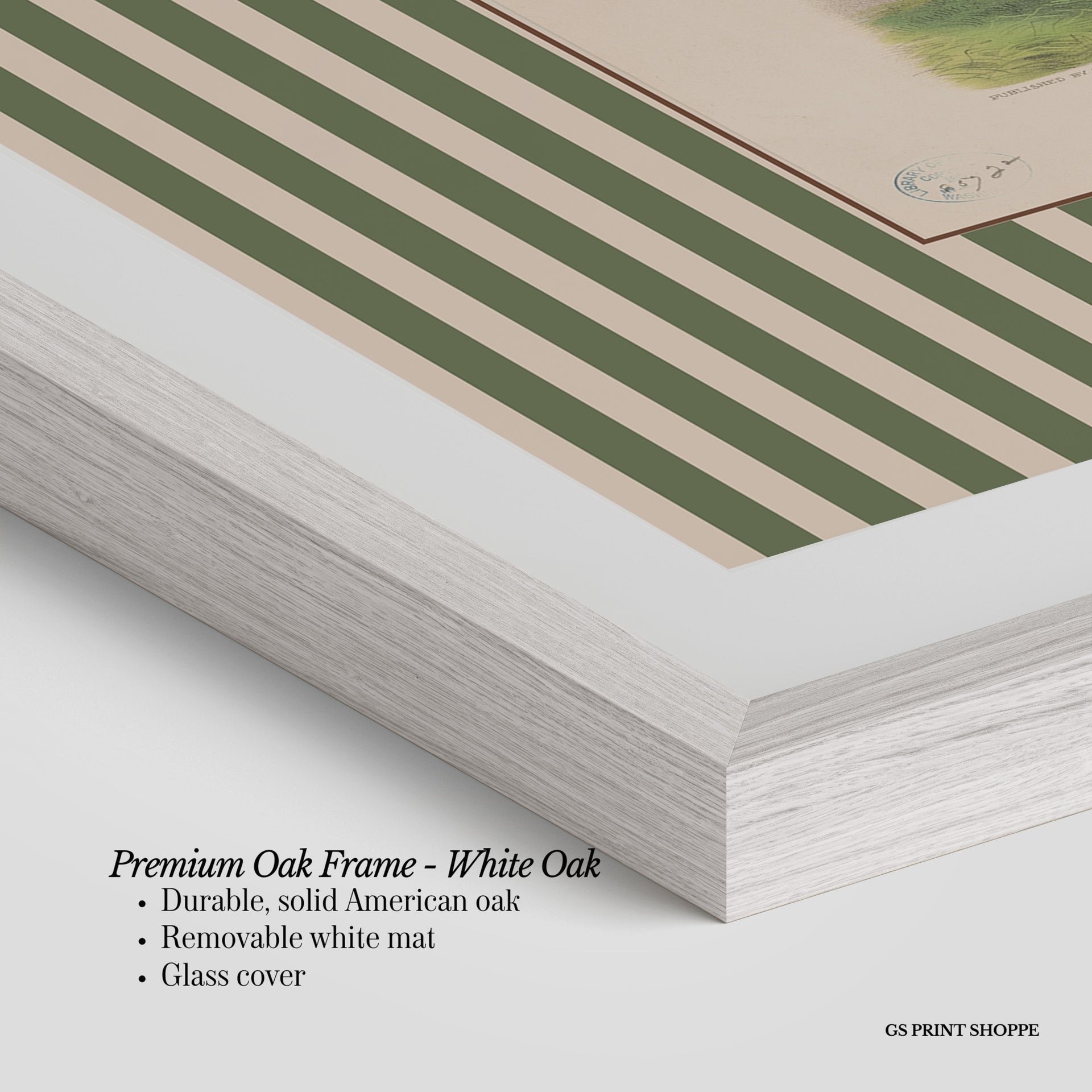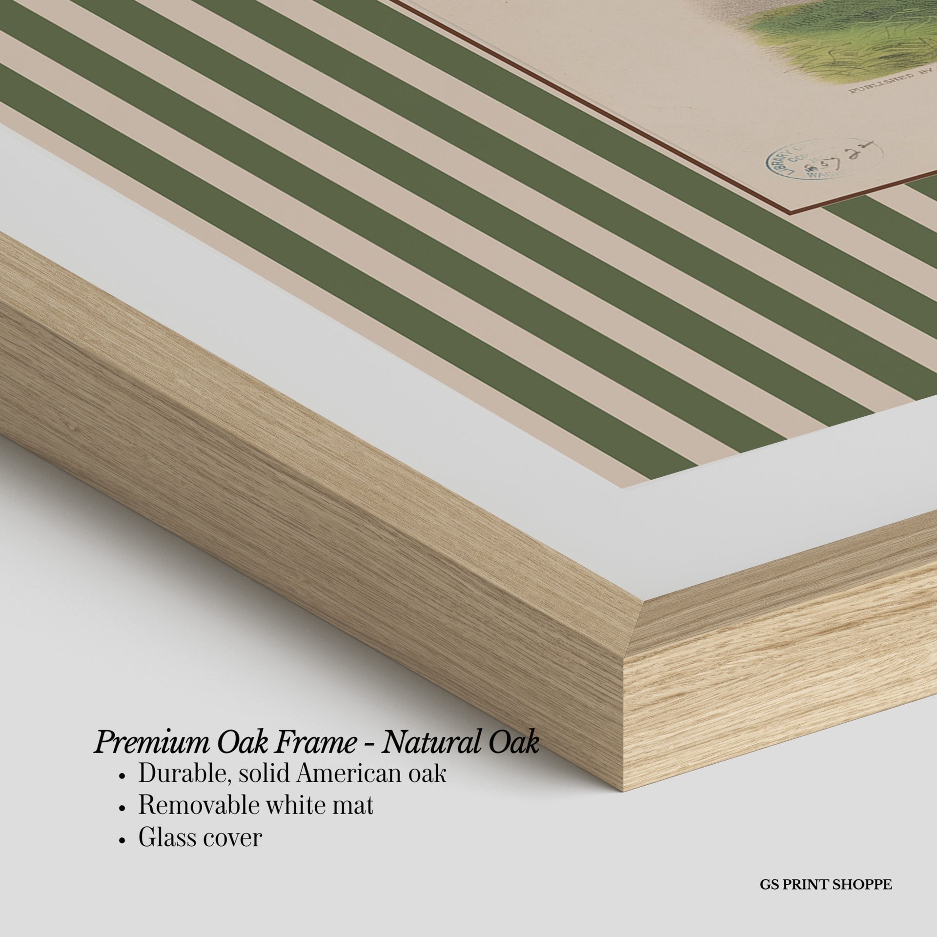 Premium Oak Frame: Our premium oak frame is crafted from solid American oak, offering a warm, natural feel with a high-end finish. We complete this elevated offering with a bright white removable mat and real glass for a versatile and polished look.