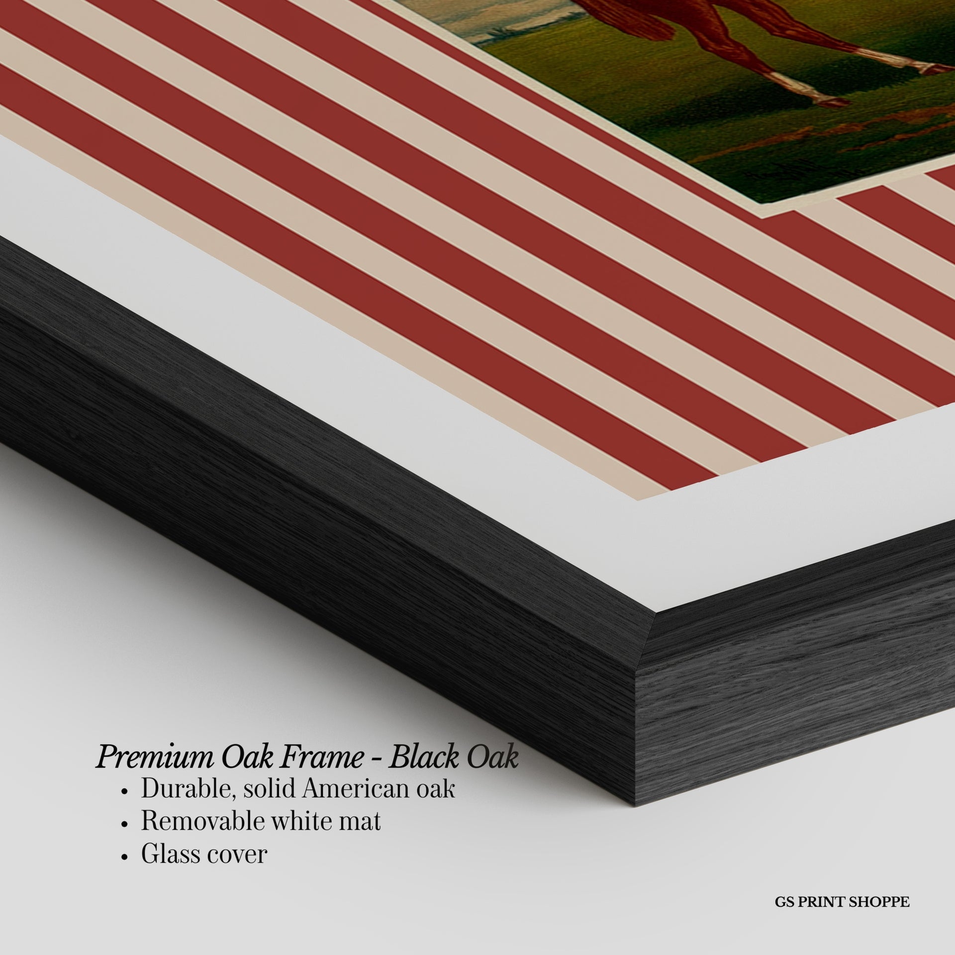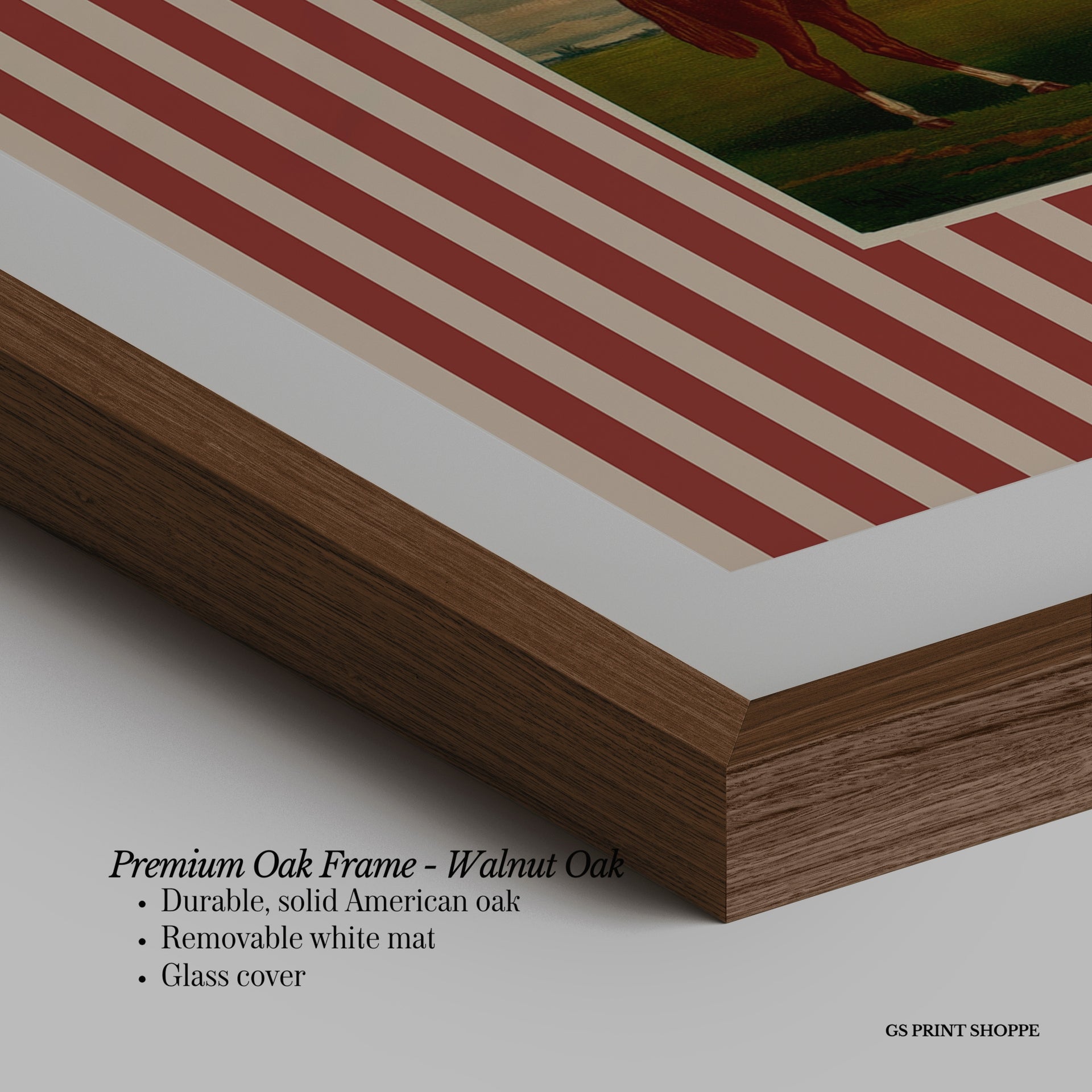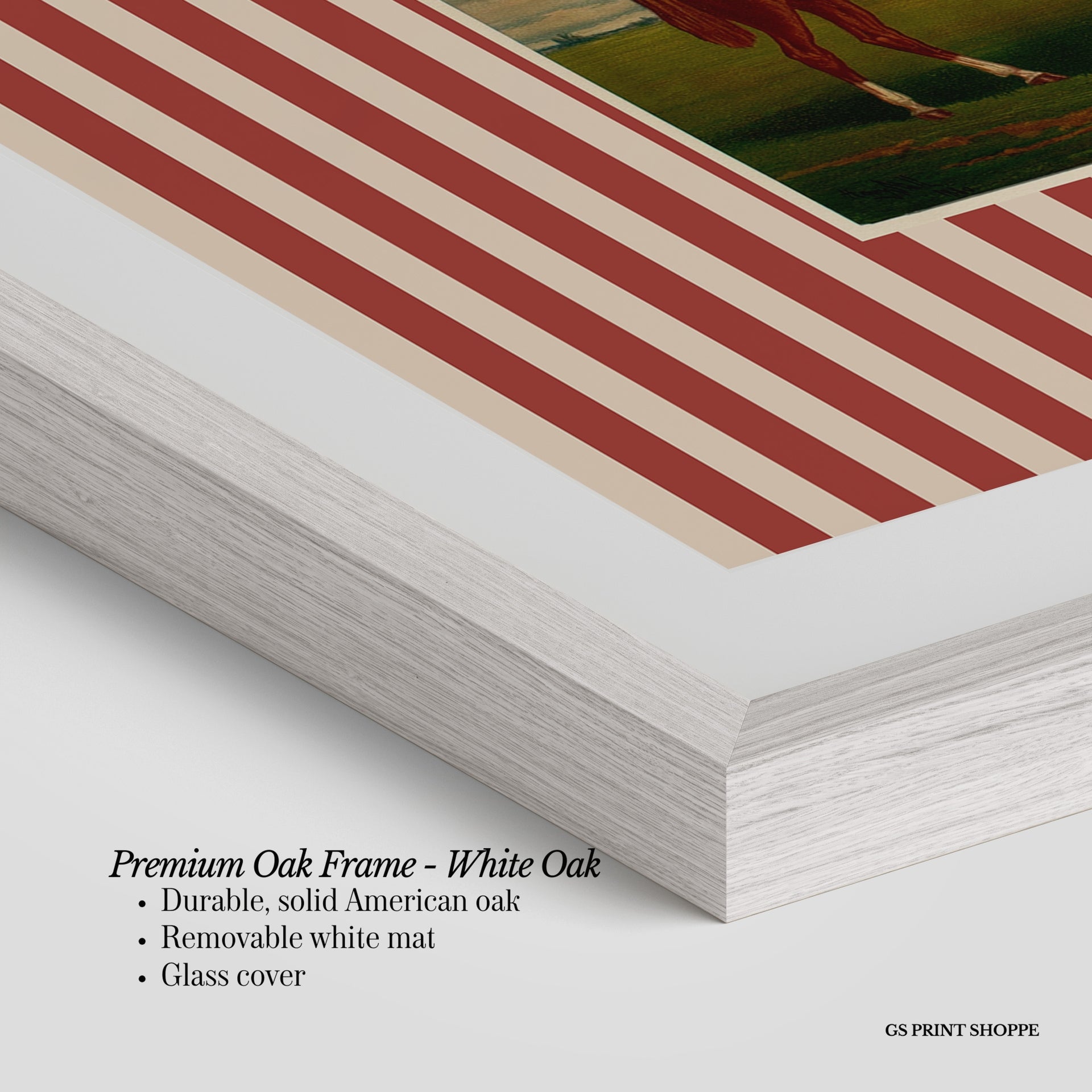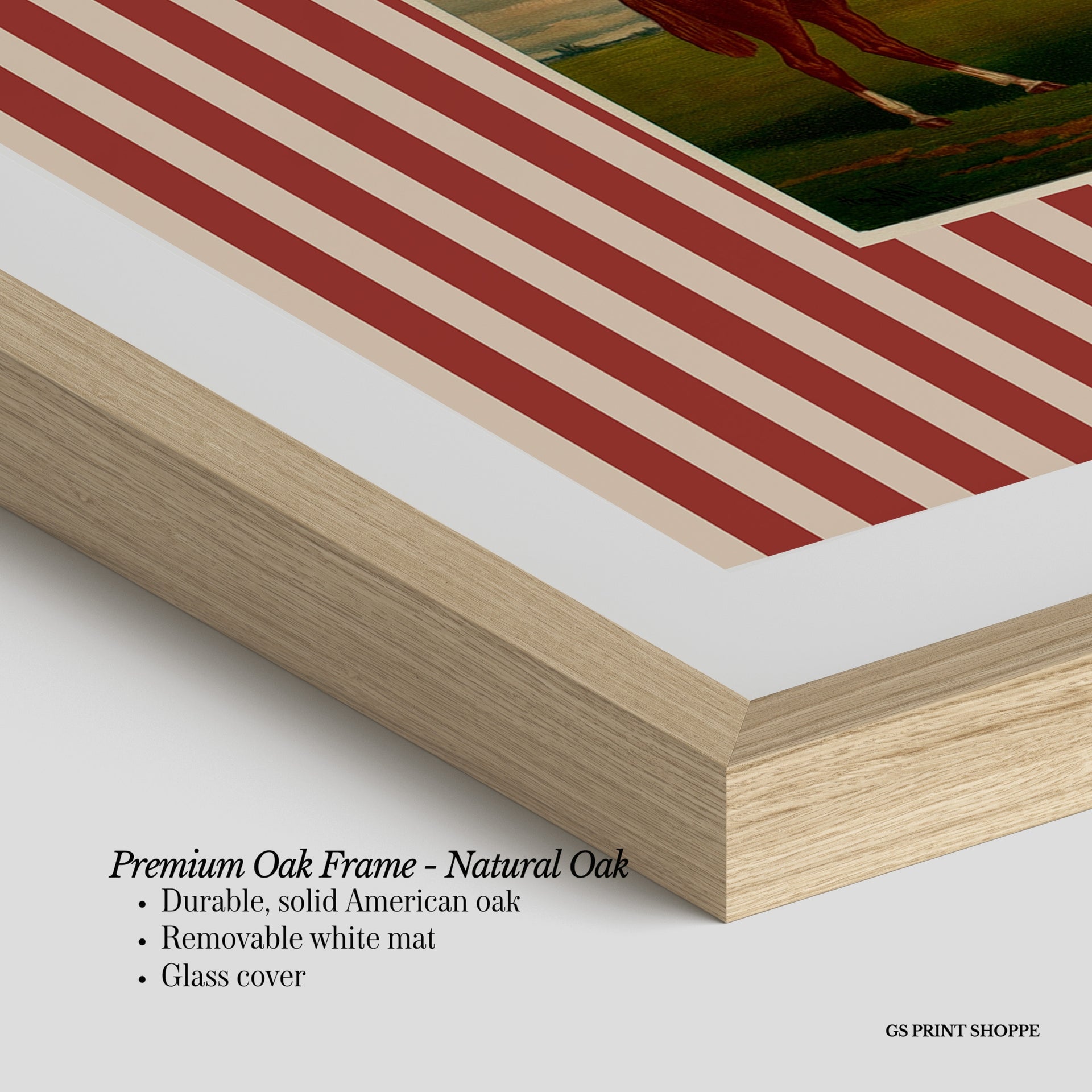 Premium Oak Frame: Our premium oak frame is crafted from solid American oak, offering a warm, natural feel with a high-end finish. We complete this elevated offering with a bright white removable mat and real glass for a versatile and polished look.