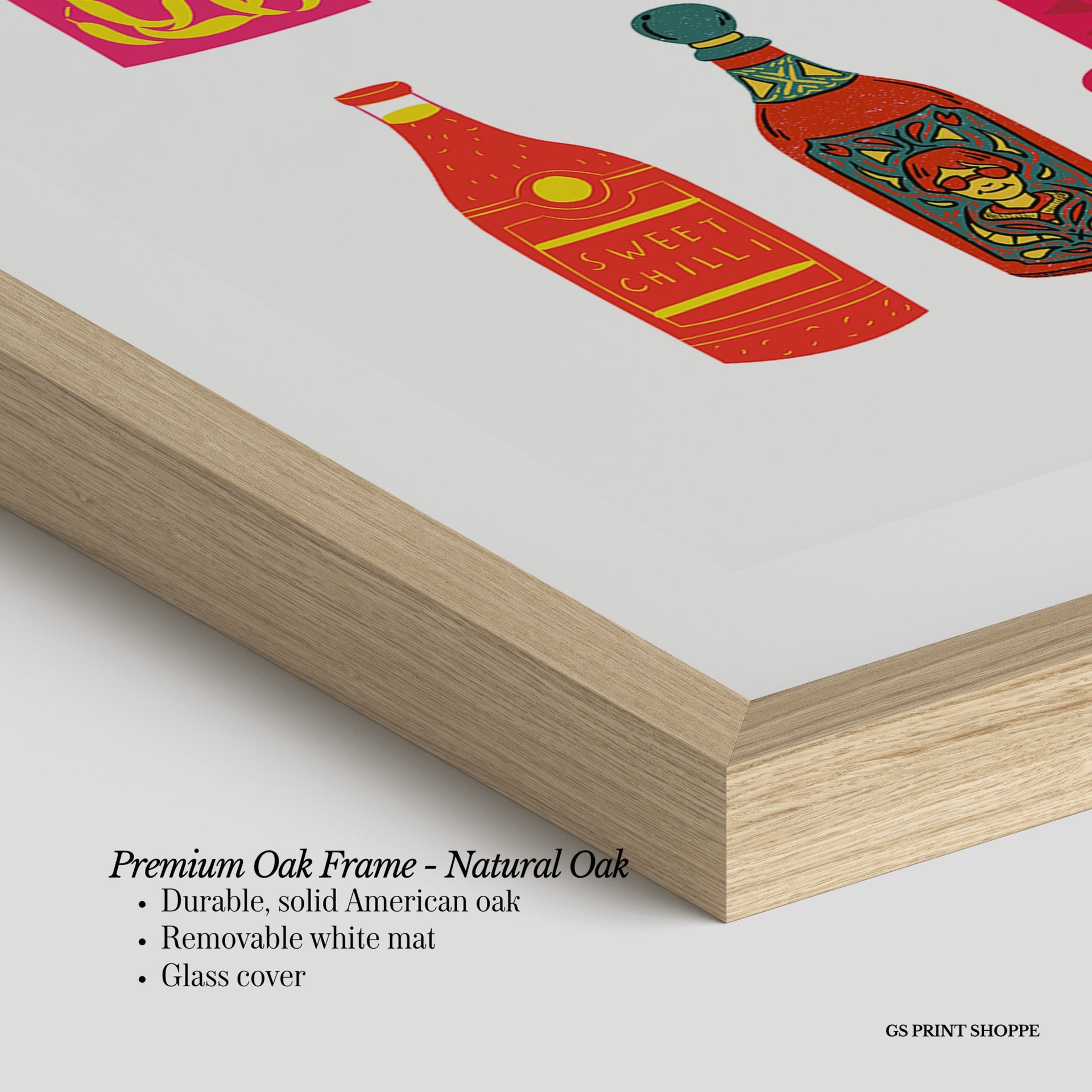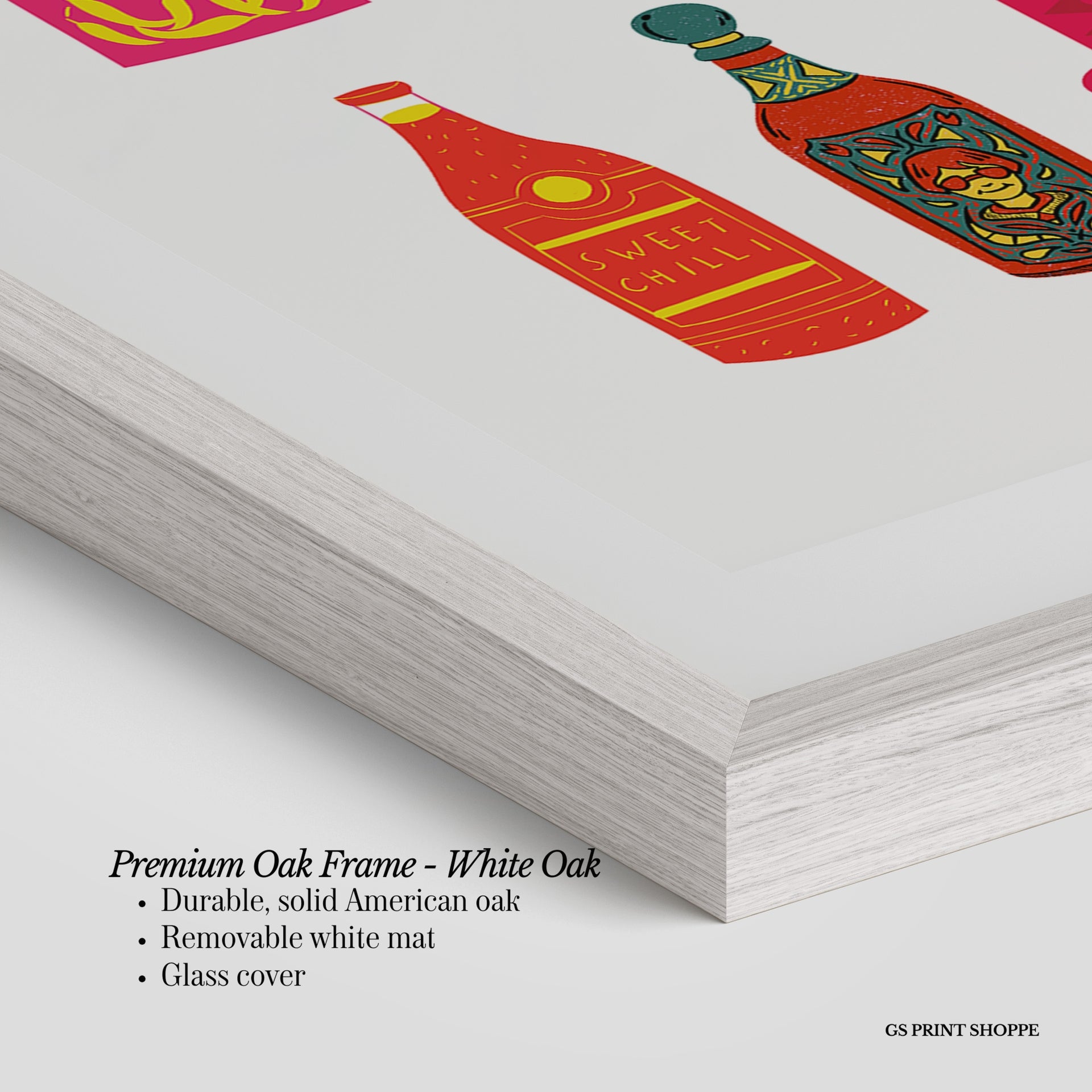 Premium Oak Frame: Our premium oak frame is crafted from solid American oak, offering a warm, natural feel with a high-end finish. We complete this elevated offering with a bright white removable mat and real glass for a versatile and polished look.