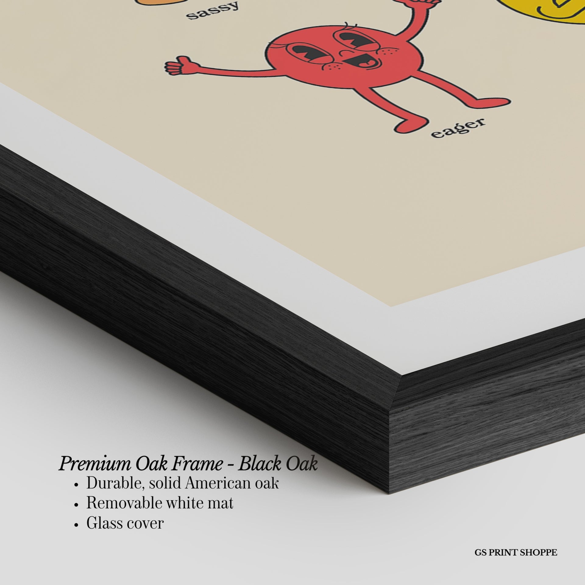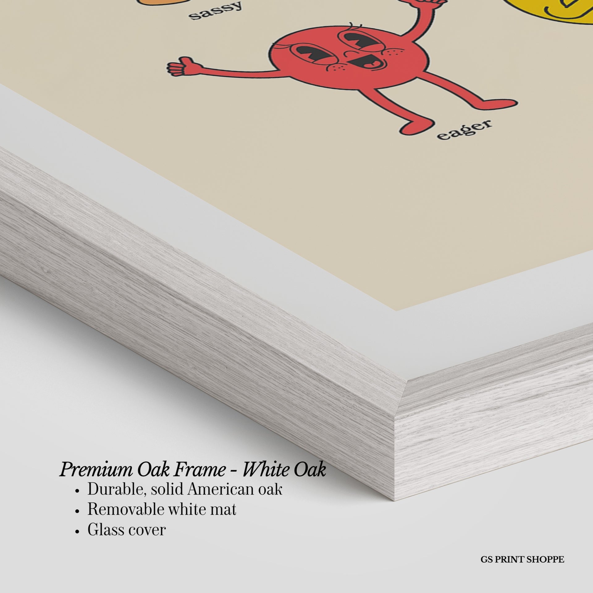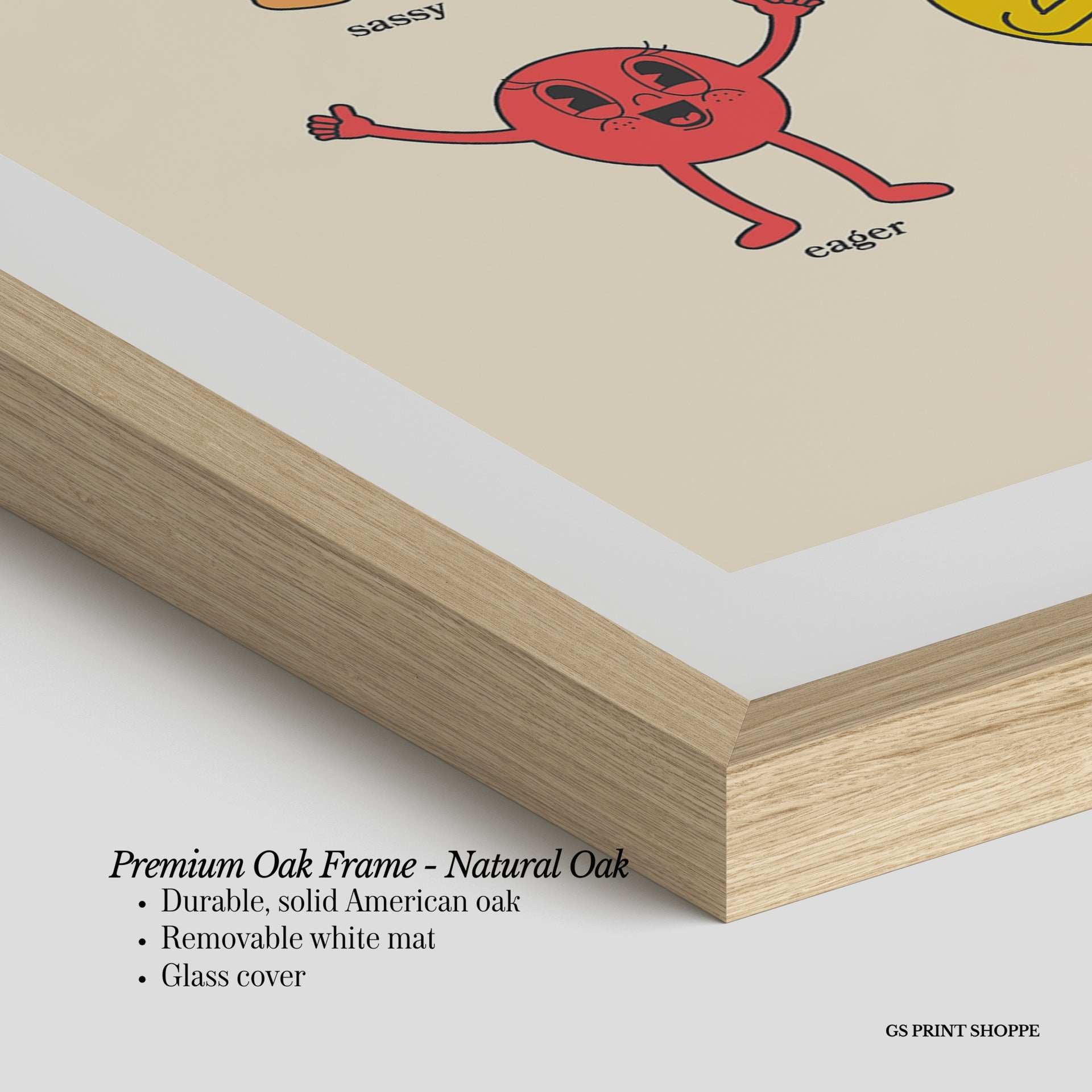 Premium Oak Frame: Our premium oak frame is crafted from solid American oak, offering a warm, natural feel with a high-end finish. We complete this elevated offering with a bright white removable mat and real glass for a versatile and polished look.