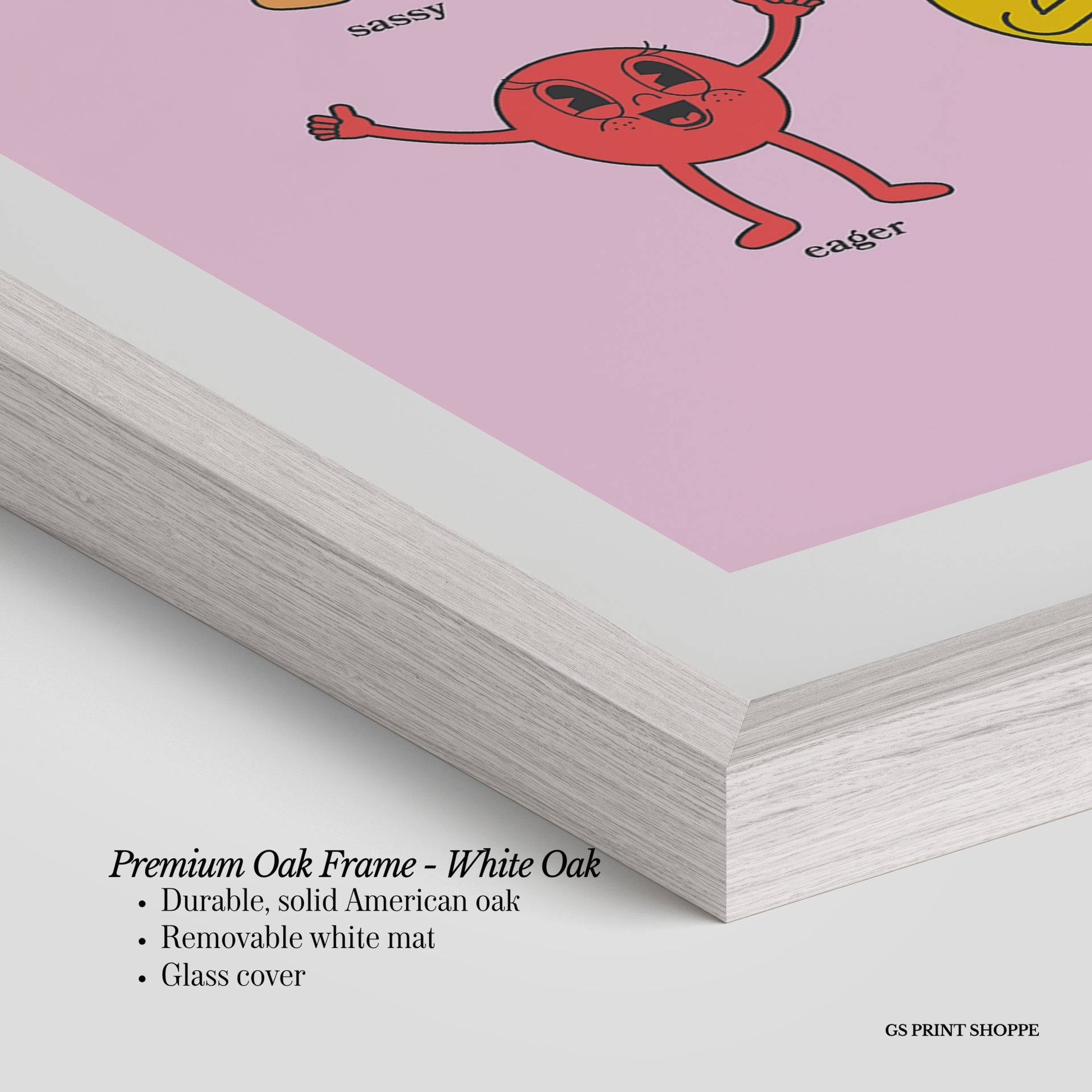 Premium Oak Frame: Our premium oak frame is crafted from solid American oak, offering a warm, natural feel with a high-end finish. We complete this elevated offering with a bright white removable mat and real glass for a versatile and polished look.