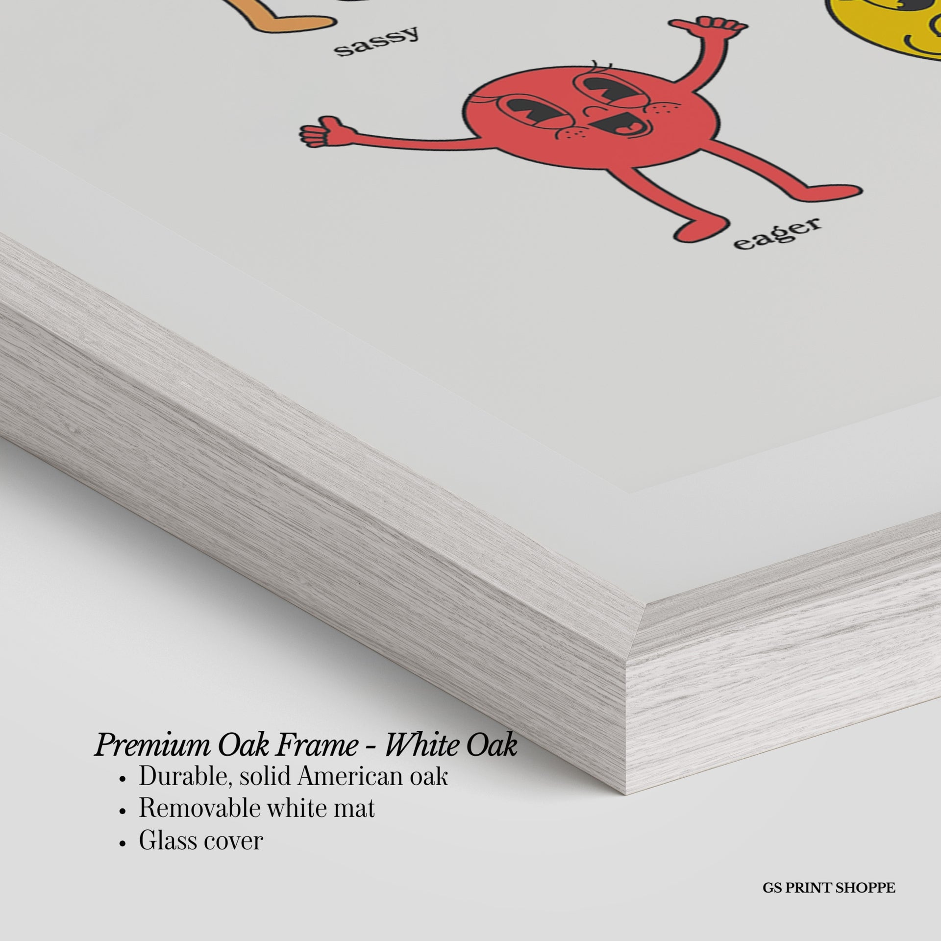Premium Oak Frame: Our premium oak frame is crafted from solid American oak, offering a warm, natural feel with a high-end finish. We complete this elevated offering with a bright white removable mat and real glass for a versatile and polished look.