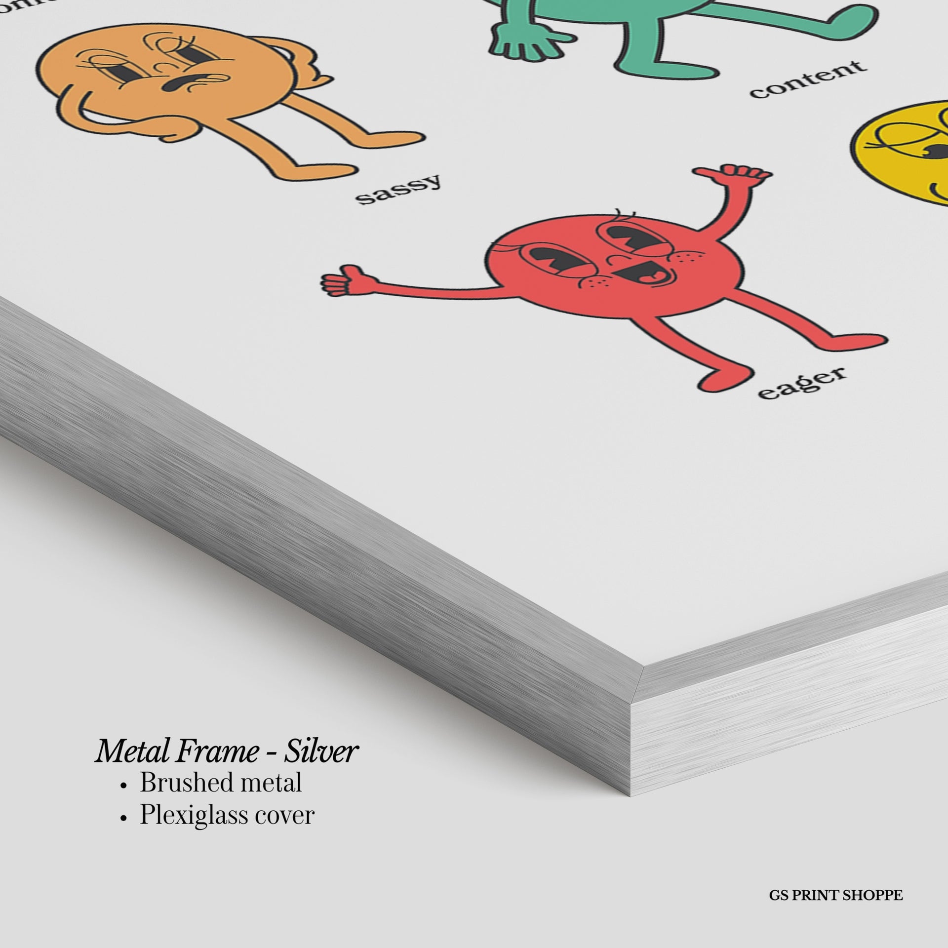 Metal Frame: Sleek and modern, our metal frame is crafted with brushed metal for a polished finish. It comes with durable plexiglass and sturdy metal hangers for horizontal or vertical display.