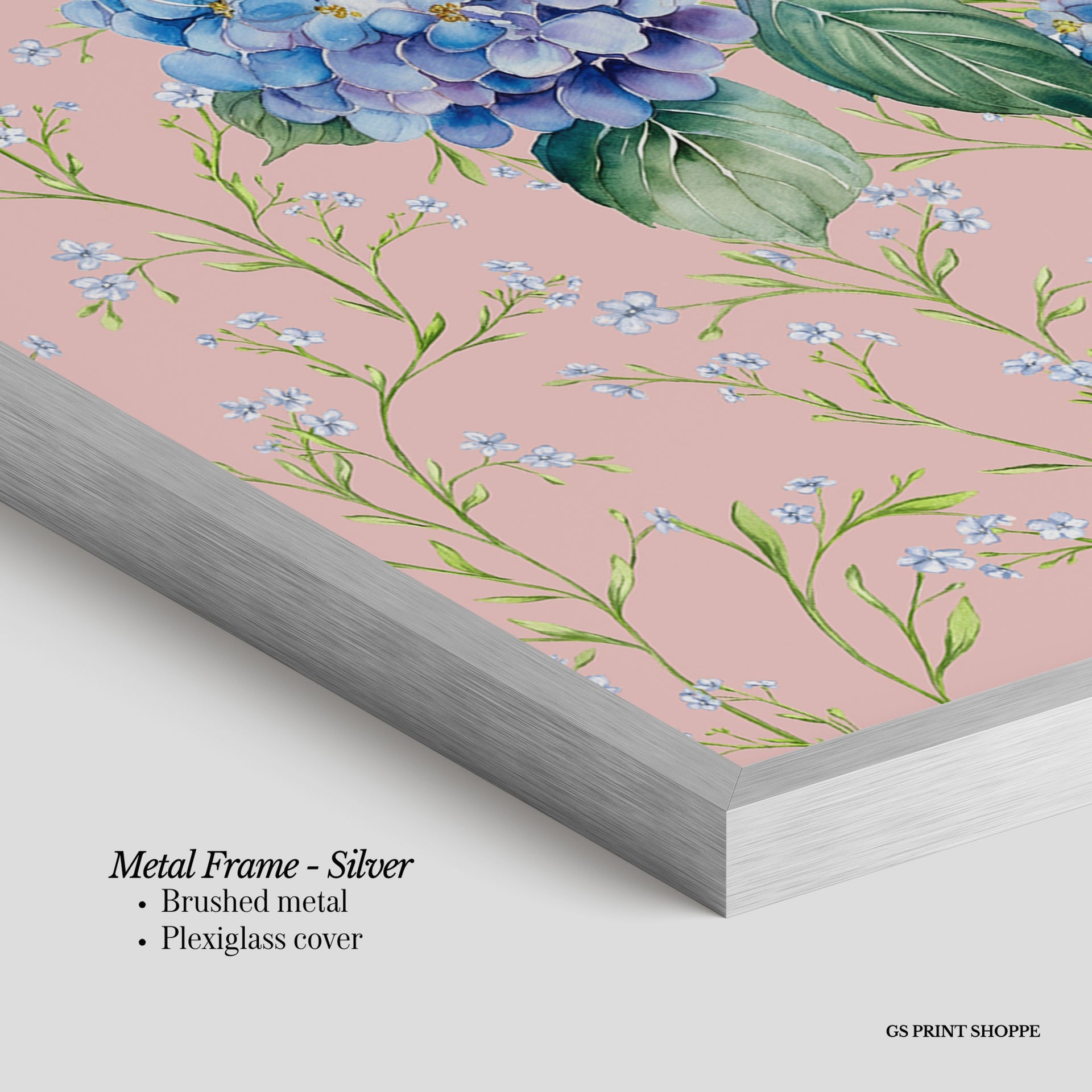 Metal Frame: Sleek and modern, our metal frame is crafted with brushed metal for a polished finish. It comes with durable plexiglass and sturdy metal hangers for horizontal or vertical display.