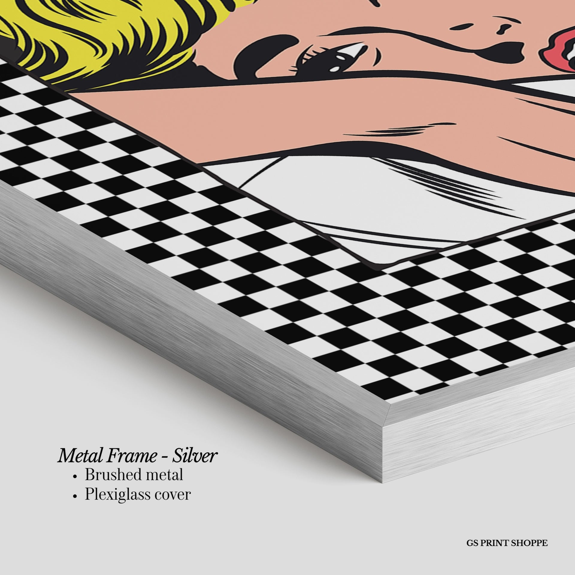 Metal Frame: Sleek and modern, our metal frame is crafted with brushed metal for a polished finish. It comes with durable plexiglass and sturdy metal hangers for horizontal or vertical display.