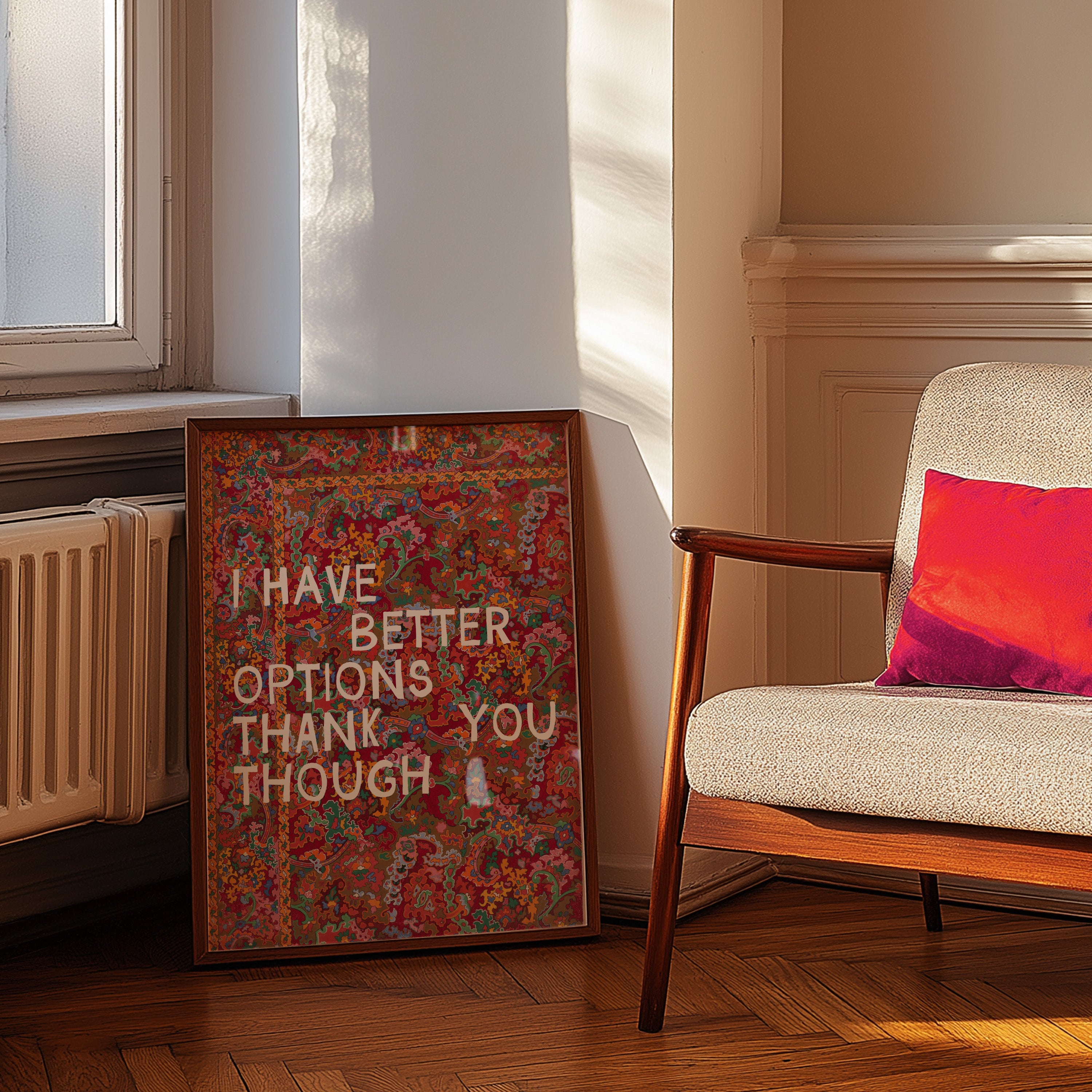 Unframed: This print is professionally printed on archival matte paper (230 gsm), a smooth, acid-free paper with a non-reflective finish. It will be carefully packaged to arrive safely at your door.