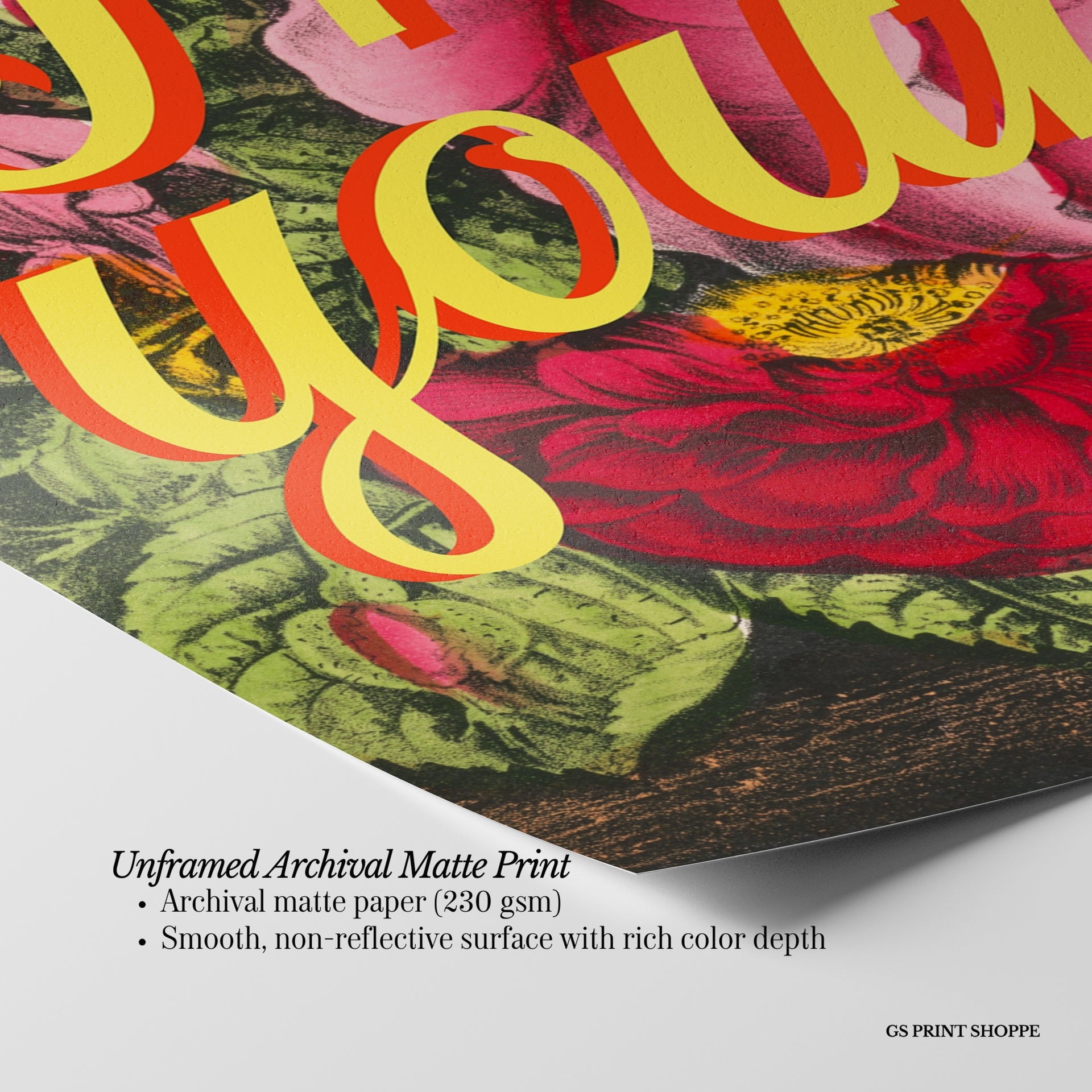 Unframed: This print is professionally printed on archival matte paper (230 gsm), a smooth, acid-free paper with a non-reflective finish. It will be carefully packaged to arrive safely at your door.