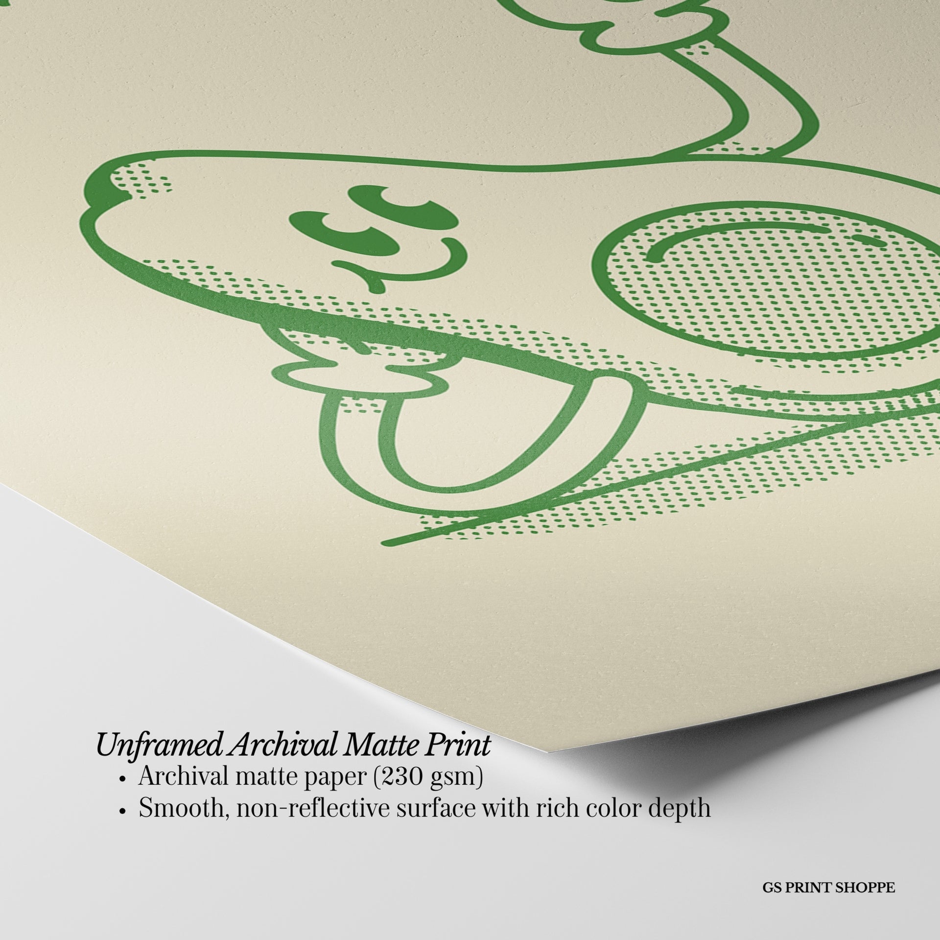 Unframed: This print is professionally printed on archival matte paper (230 gsm), a smooth, acid-free paper with a non-reflective finish. It will be carefully packaged to arrive safely at your door.
