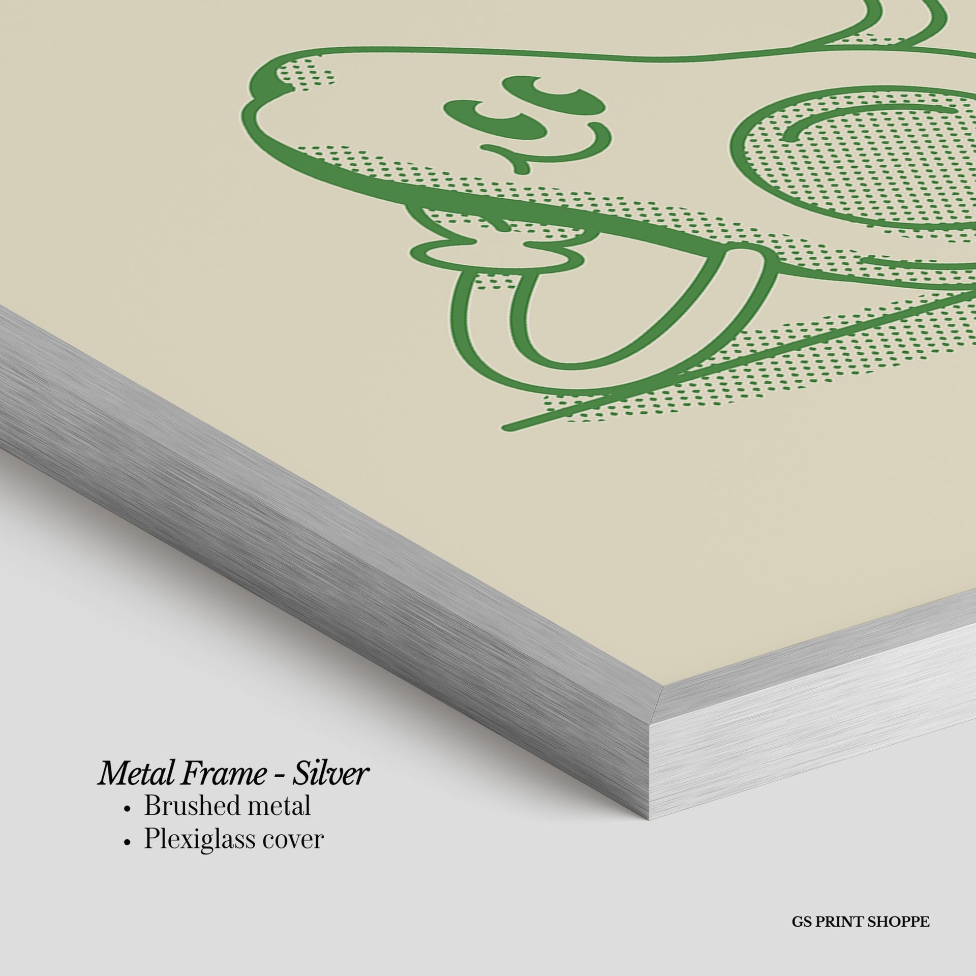 Metal Frame: Sleek and modern, our metal frame is crafted with brushed metal for a polished finish. It comes with durable plexiglass and sturdy metal hangers for horizontal or vertical display.