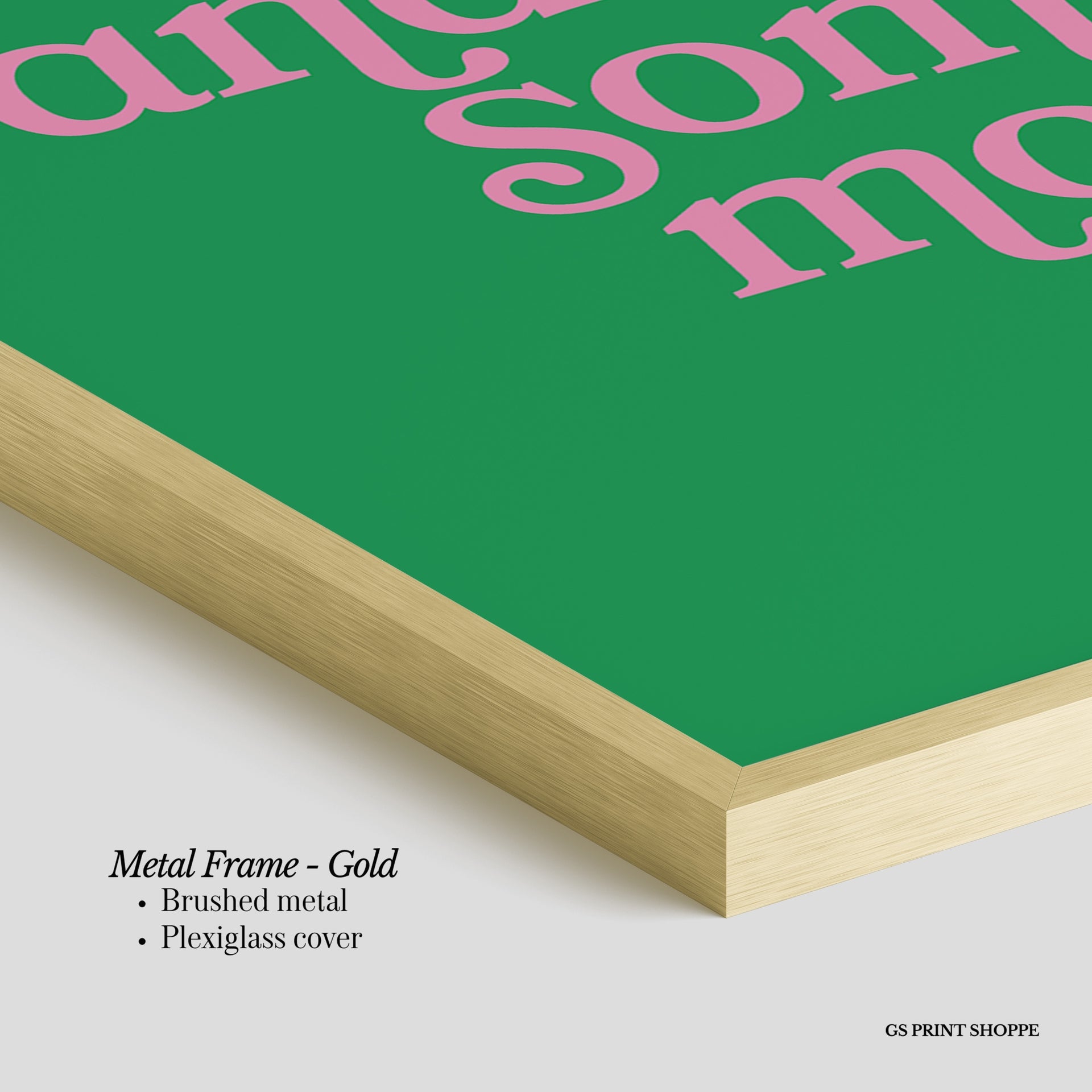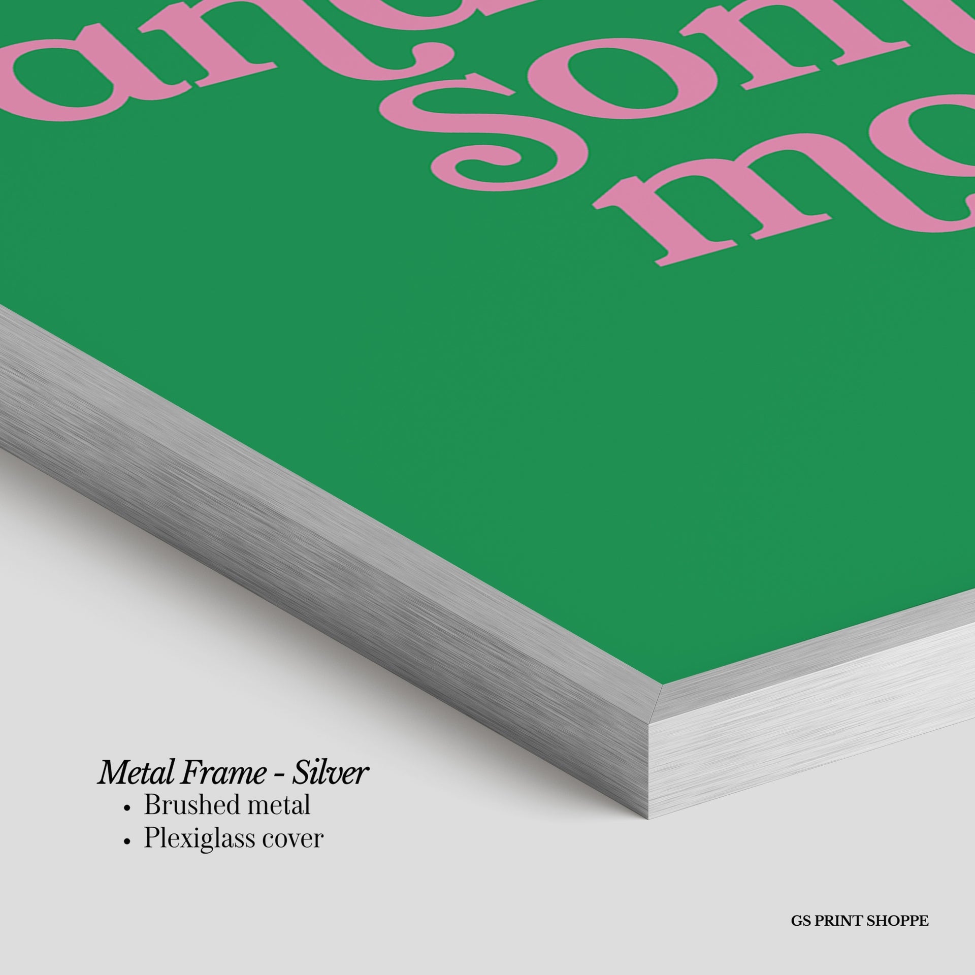 Metal Frame: Sleek and modern, our metal frame is crafted with brushed metal for a polished finish. It comes with durable plexiglass and sturdy metal hangers for horizontal or vertical display.