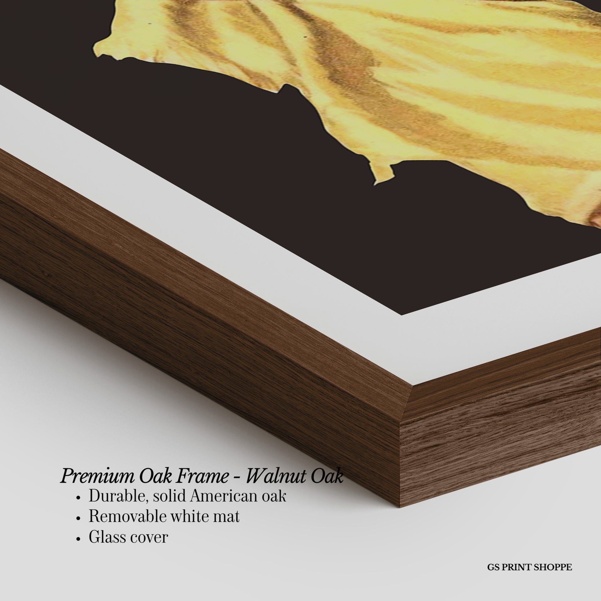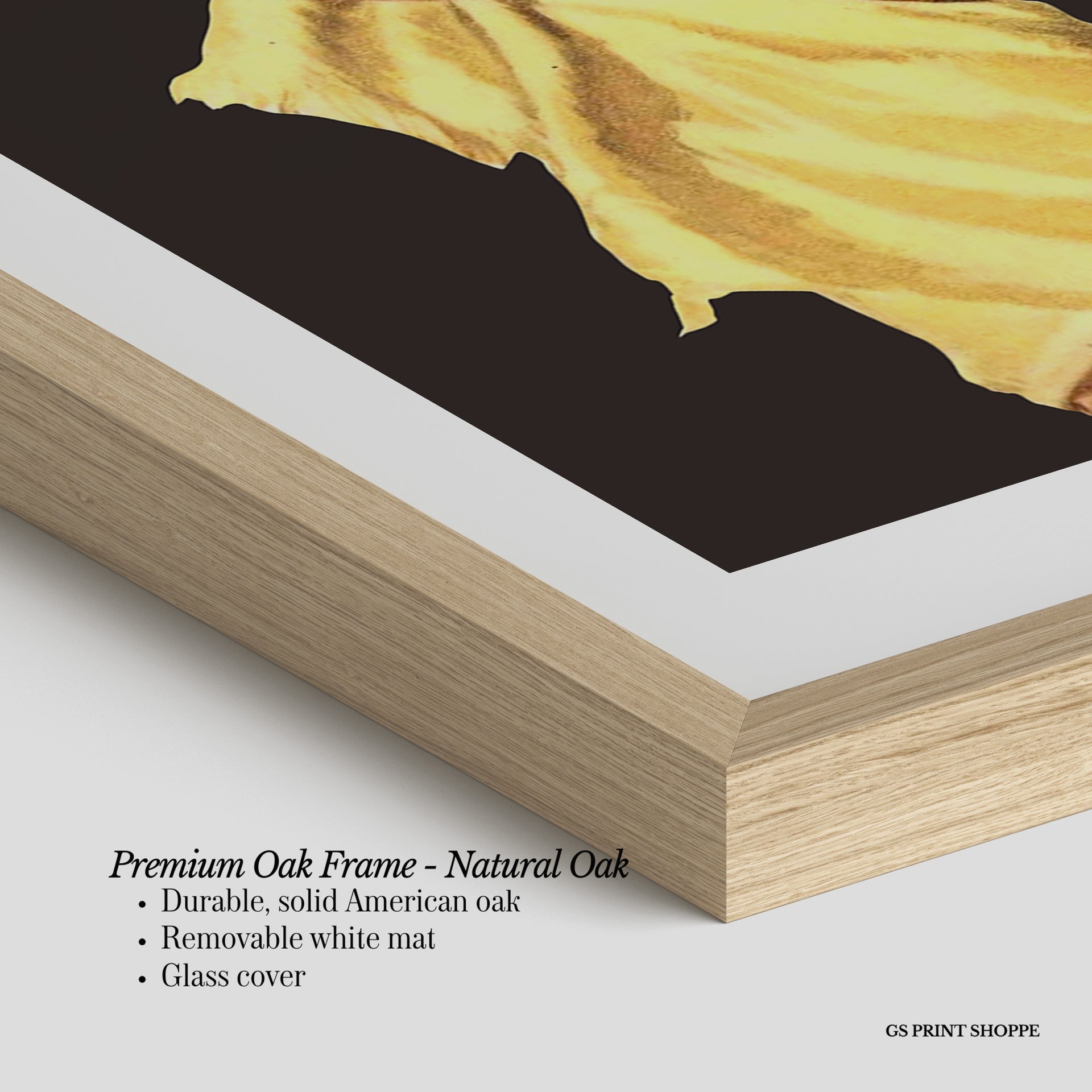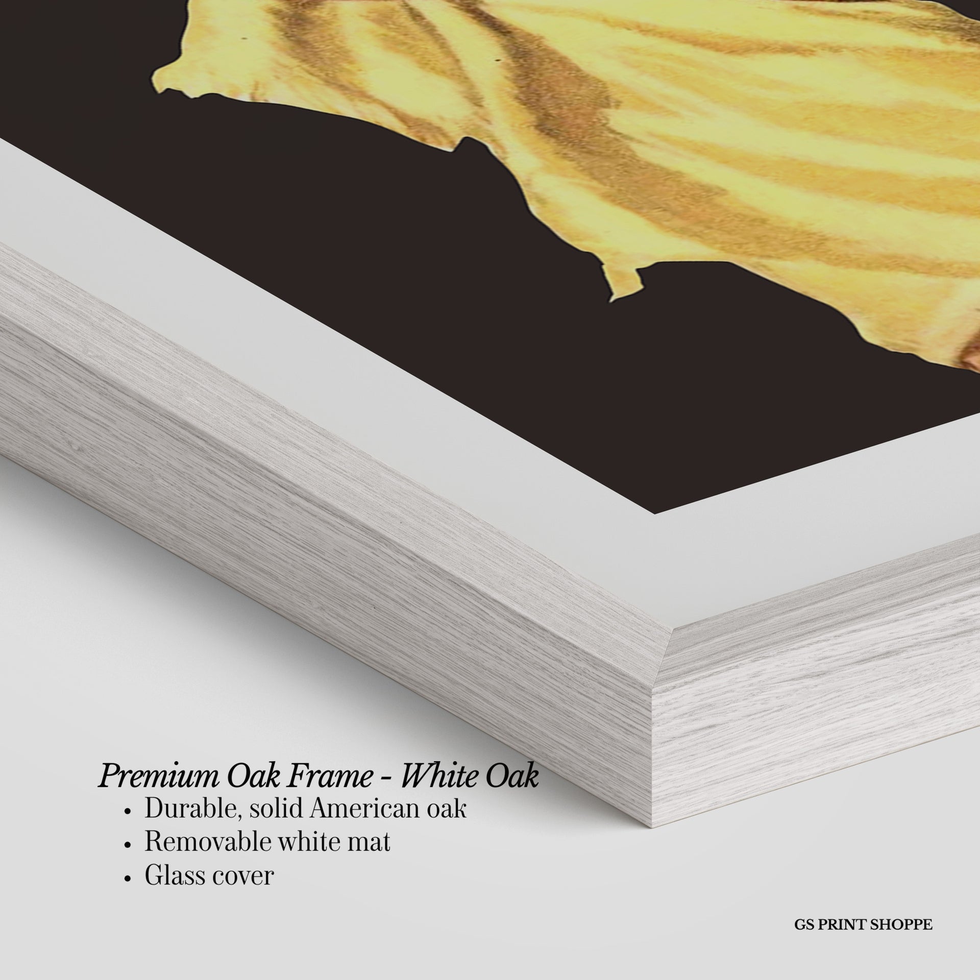 Premium Oak Frame: Our premium oak frame is crafted from solid American oak, offering a warm, natural feel with a high-end finish. We complete this elevated offering with a bright white removable mat and real glass for a versatile and polished look.
