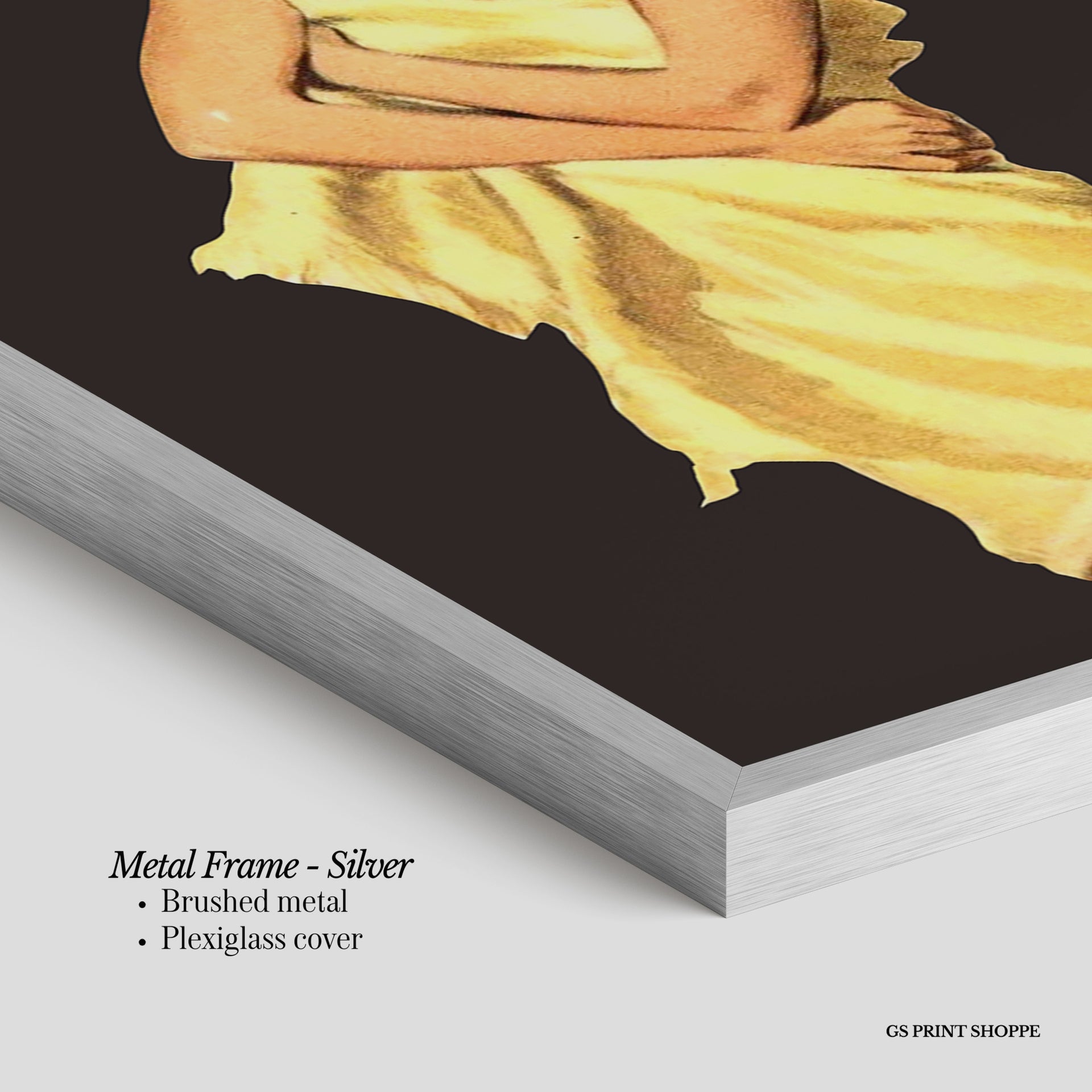 Metal Frame: Sleek and modern, our metal frame is crafted with brushed metal for a polished finish. It comes with durable plexiglass and sturdy metal hangers for horizontal or vertical display.