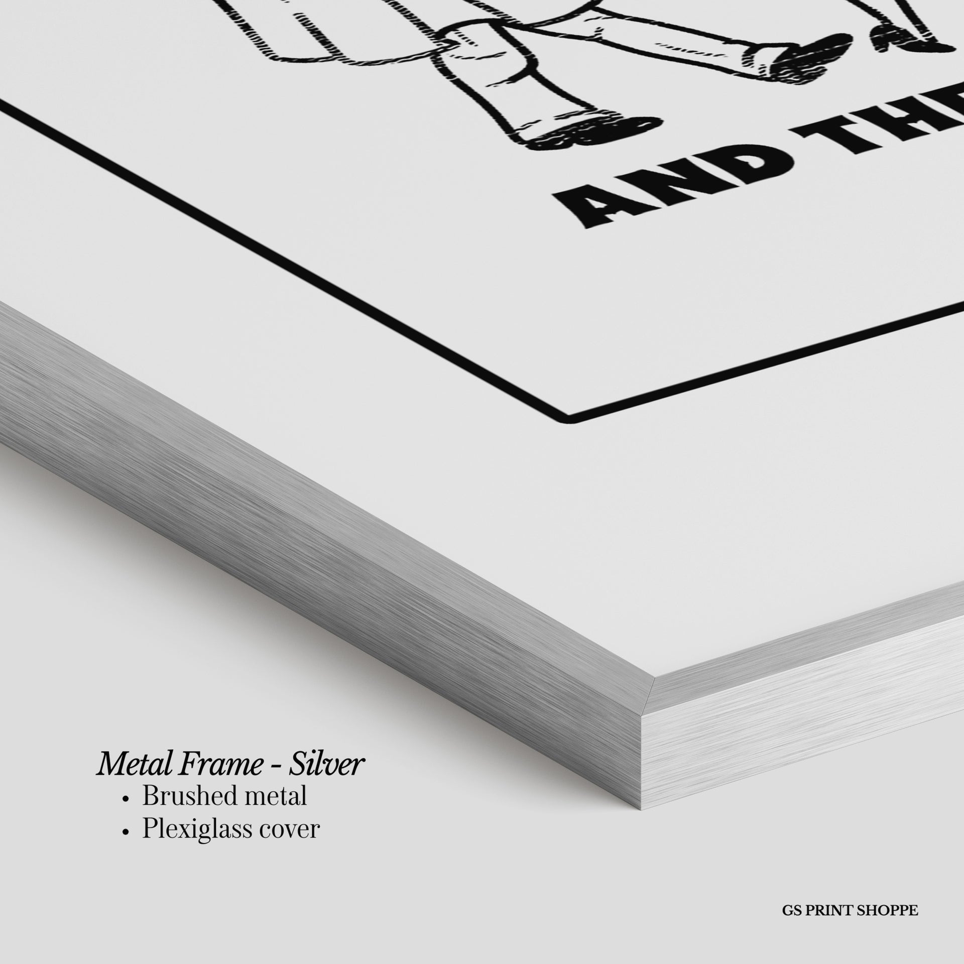 Metal Frame: Sleek and modern, our metal frame is crafted with brushed metal for a polished finish. It comes with durable plexiglass and sturdy metal hangers for horizontal or vertical display.