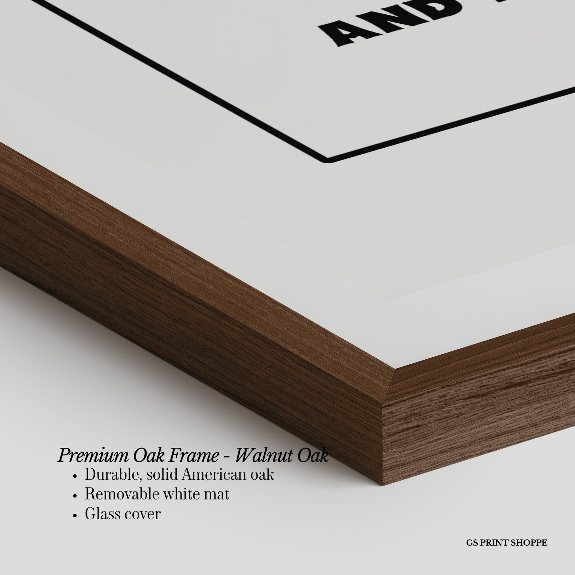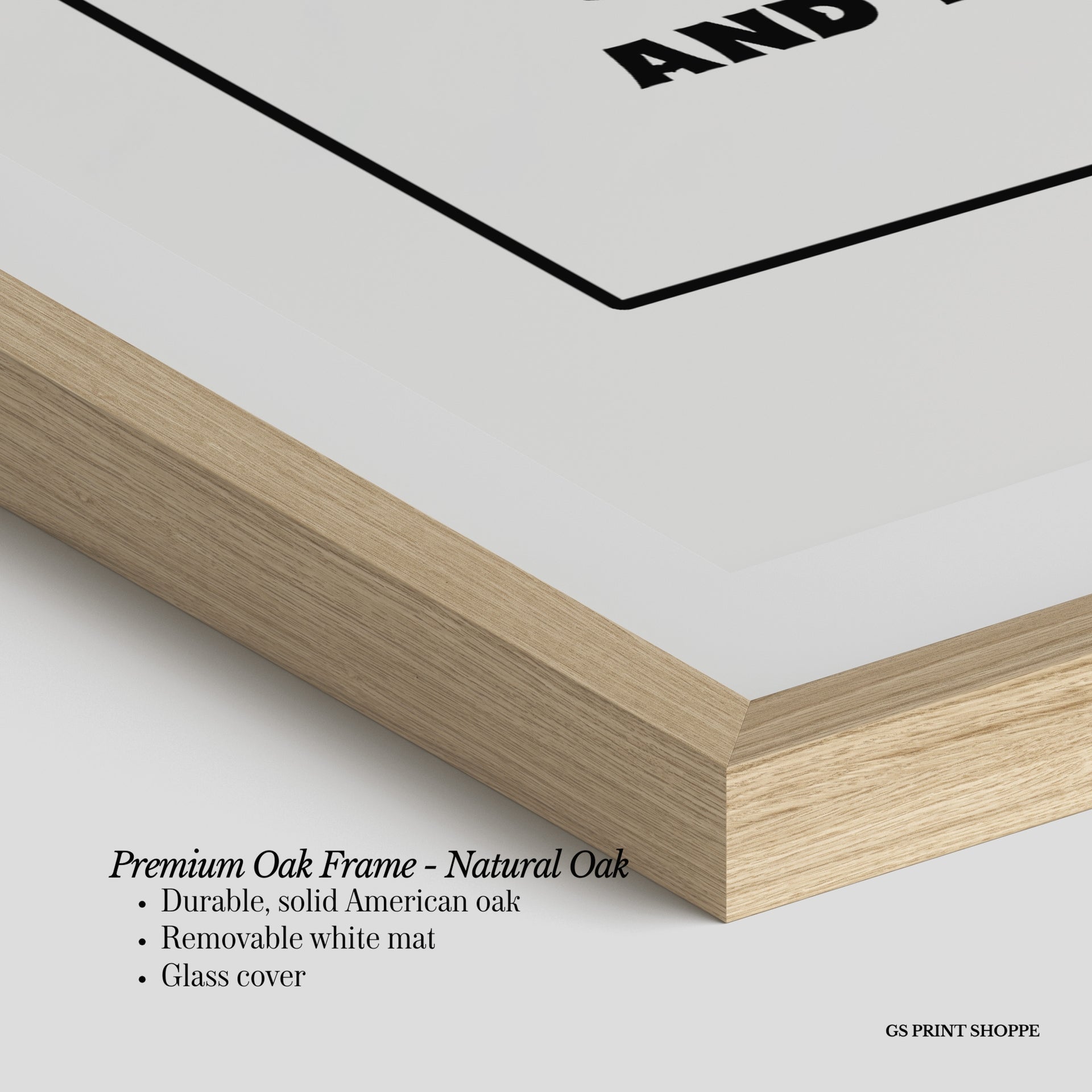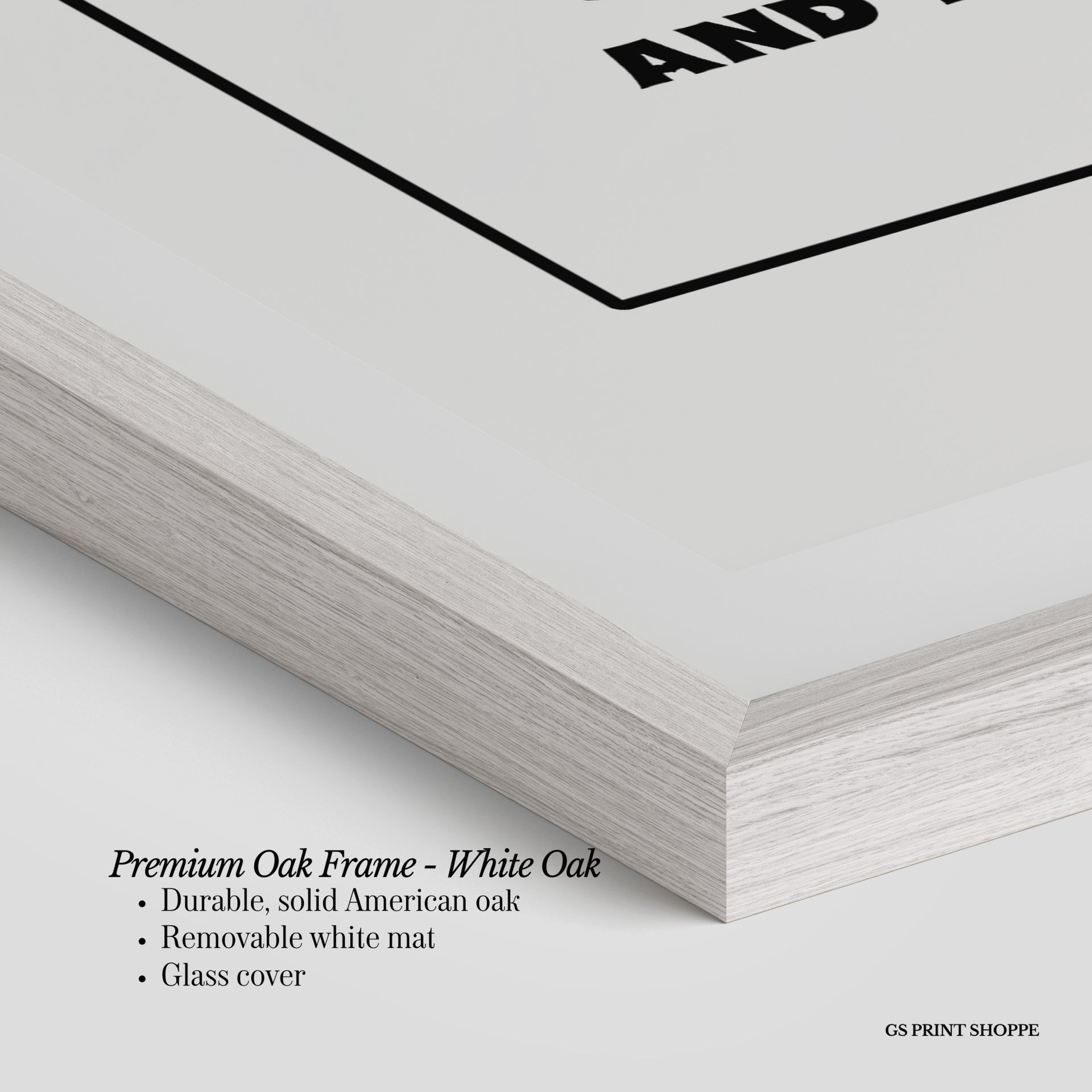 Premium Oak Frame: Our premium oak frame is crafted from solid American oak, offering a warm, natural feel with a high-end finish. We complete this elevated offering with a bright white removable mat and real glass for a versatile and polished look.
