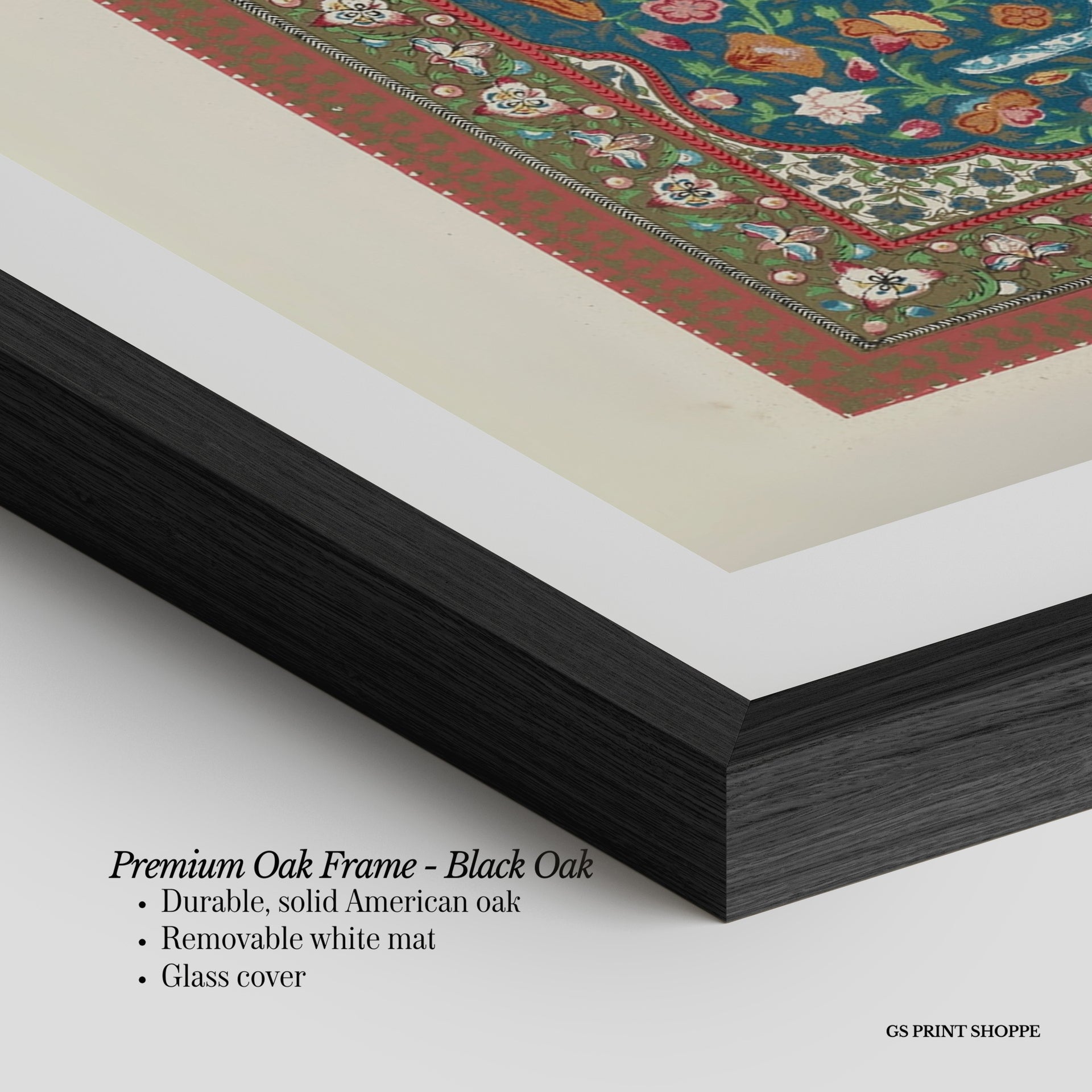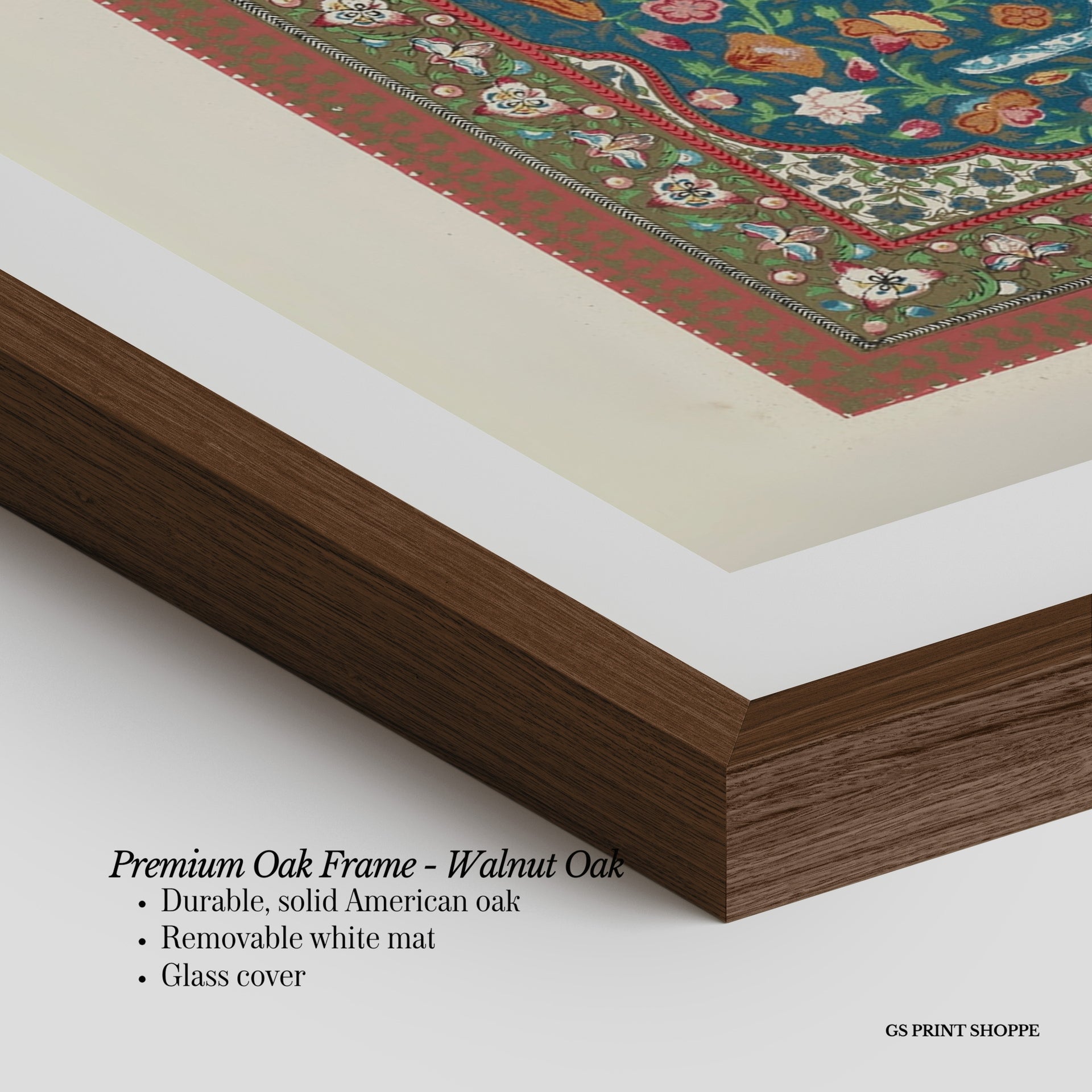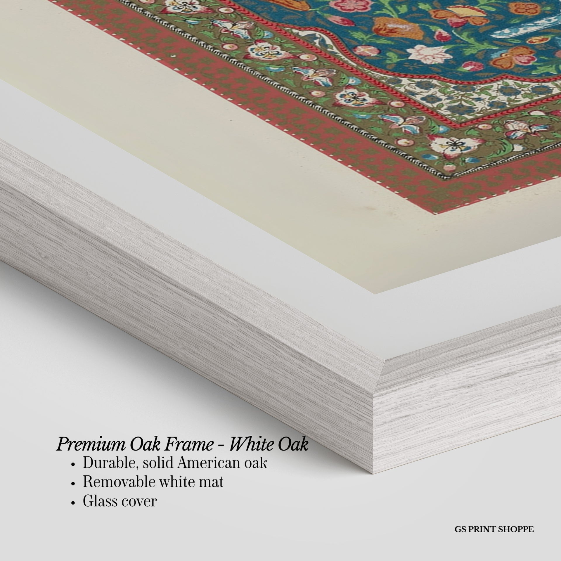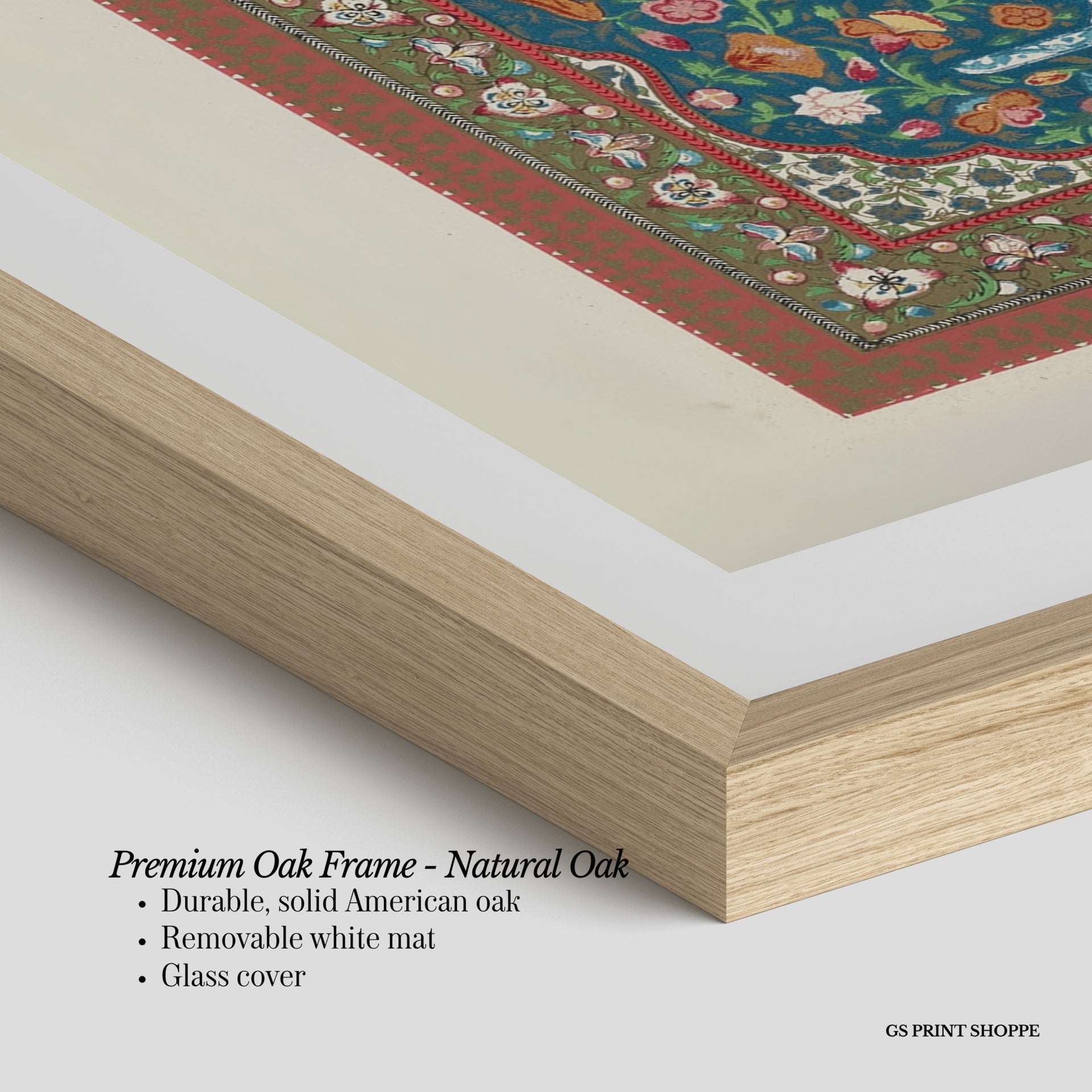 Premium Oak Frame: Our premium oak frame is crafted from solid American oak, offering a warm, natural feel with a high-end finish. We complete this elevated offering with a bright white removable mat and real glass for a versatile and polished look.