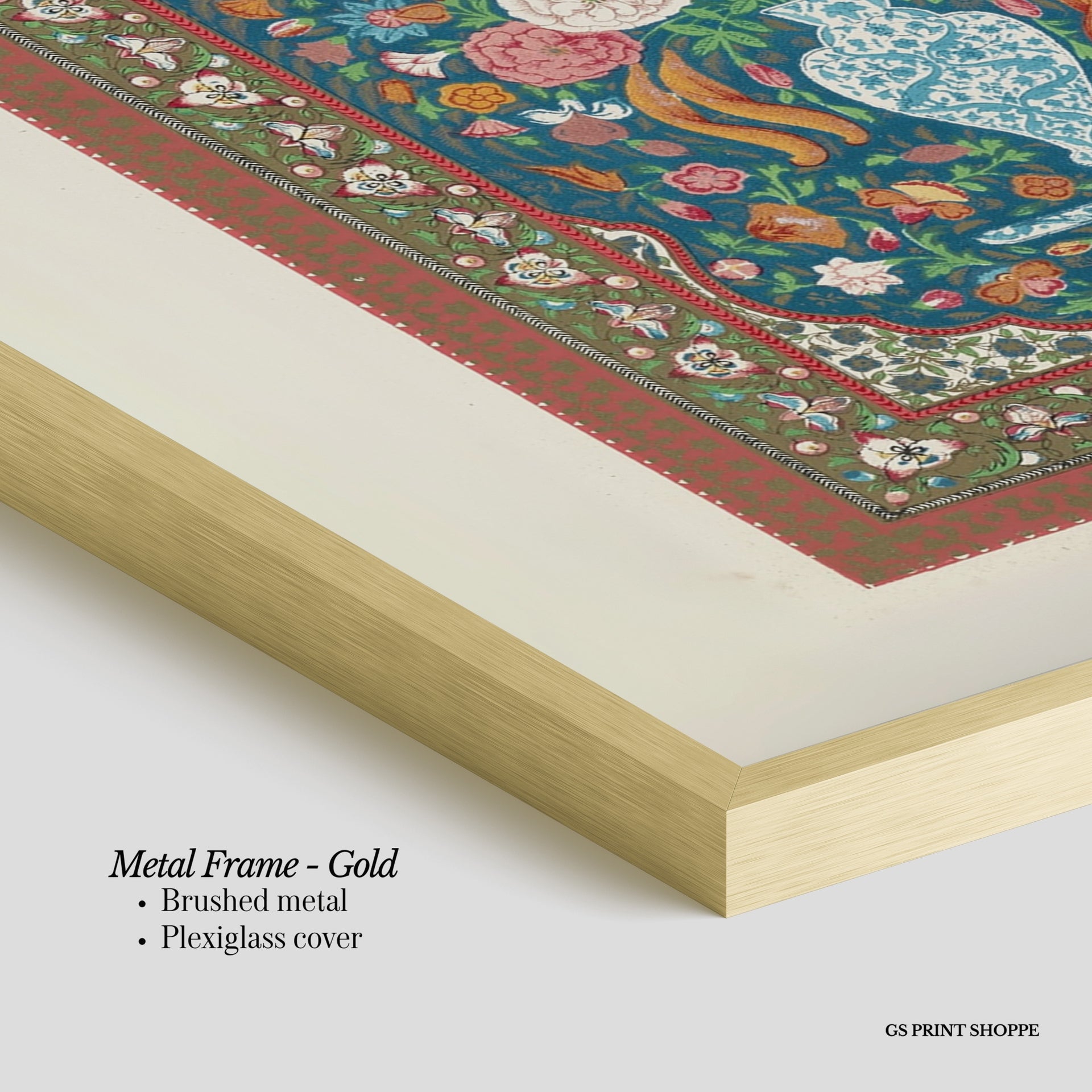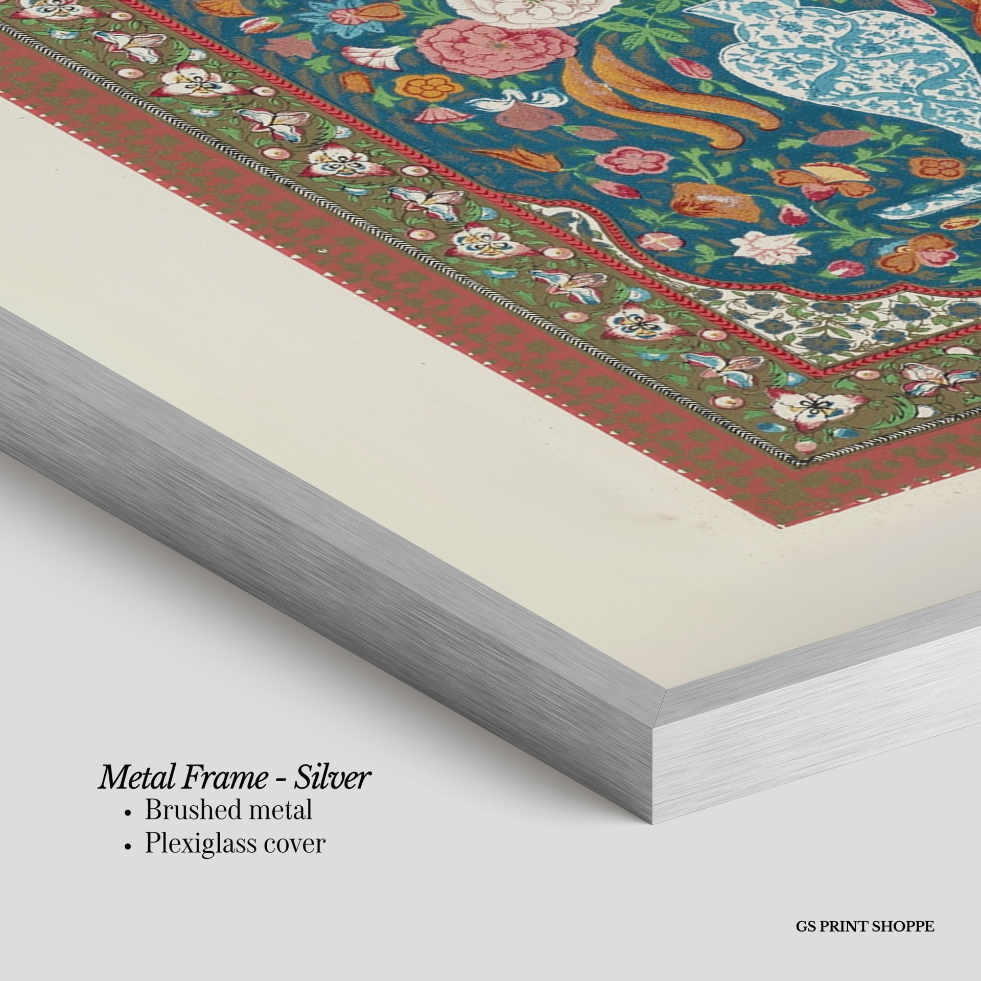 Metal Frame: Sleek and modern, our metal frame is crafted with brushed metal for a polished finish. It comes with durable plexiglass and sturdy metal hangers for horizontal or vertical display.