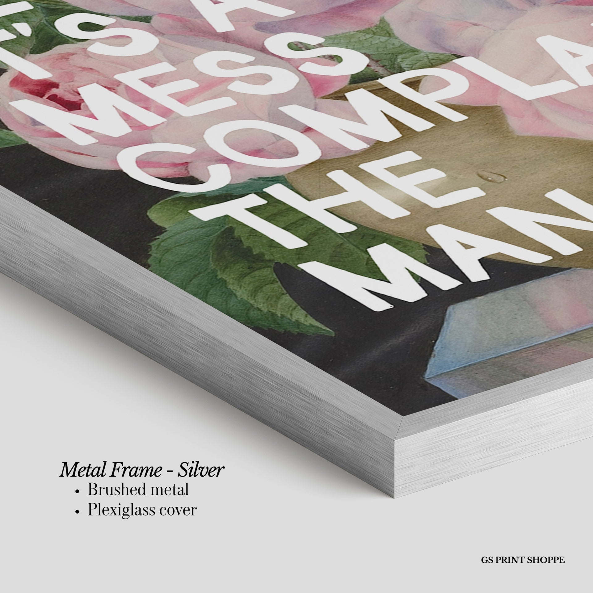 Metal Frame: Sleek and modern, our metal frame is crafted with brushed metal for a polished finish. It comes with durable plexiglass and sturdy metal hangers for horizontal or vertical display.