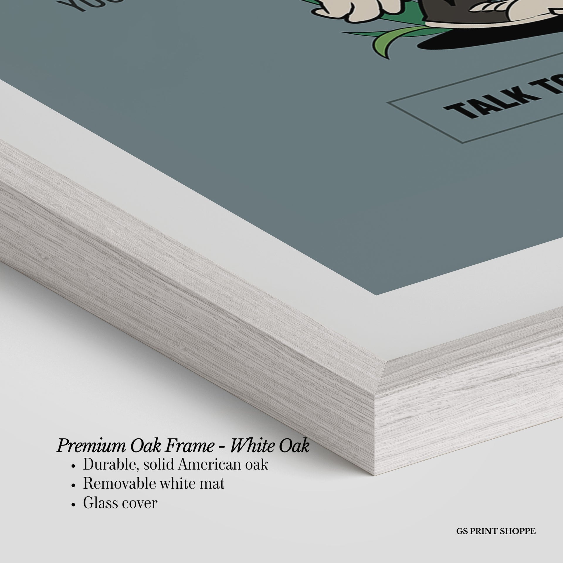 Premium Oak Frame: Our premium oak frame is crafted from solid American oak, offering a warm, natural feel with a high-end finish. We complete this elevated offering with a bright white removable mat and real glass for a versatile and polished look.