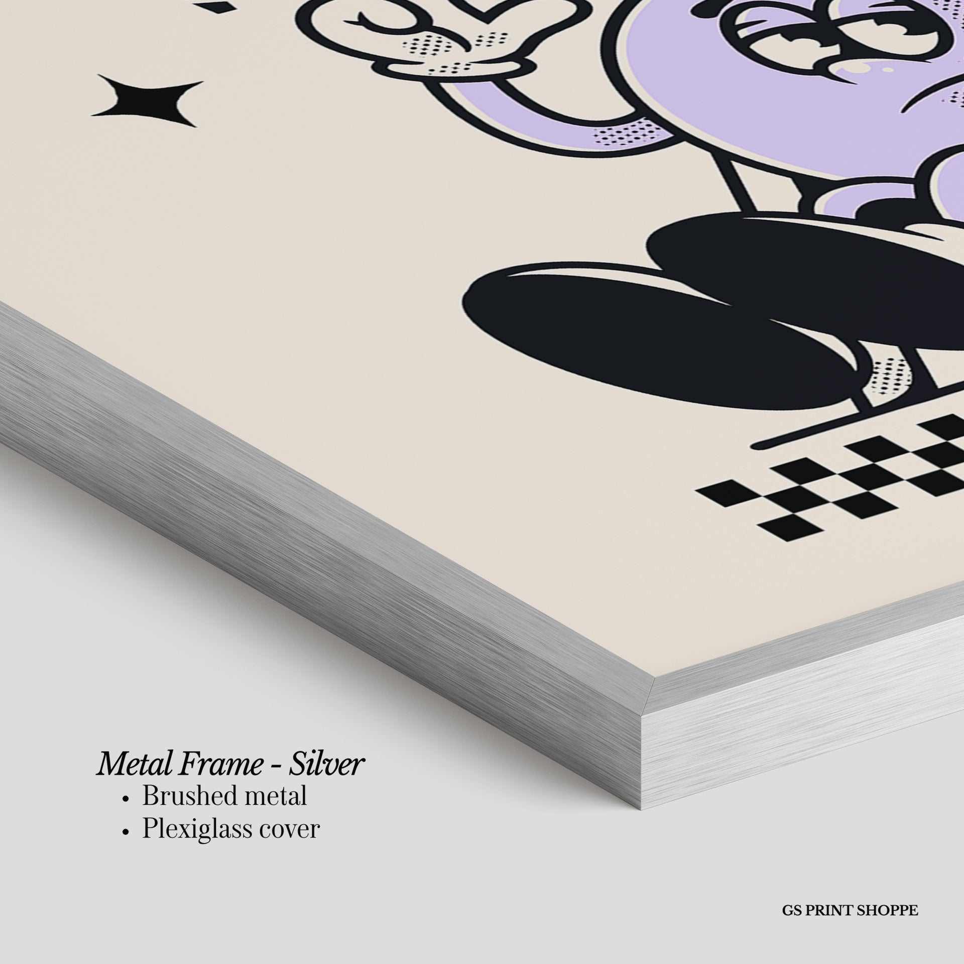 Metal Frame: Sleek and modern, our metal frame is crafted with brushed metal for a polished finish. It comes with durable plexiglass and sturdy metal hangers for horizontal or vertical display.