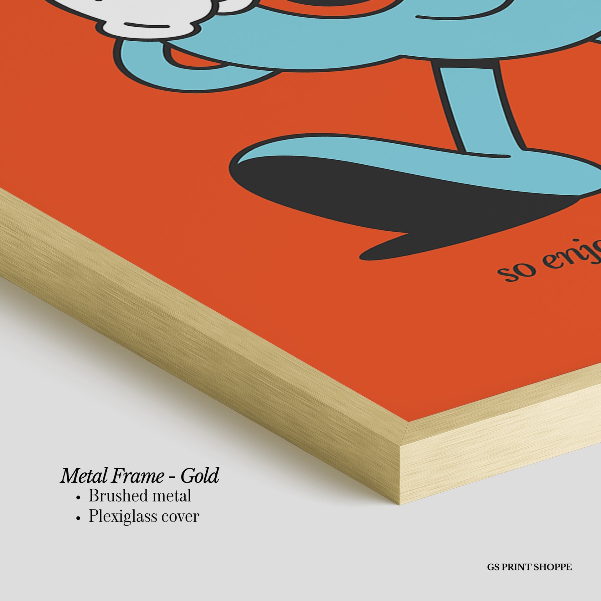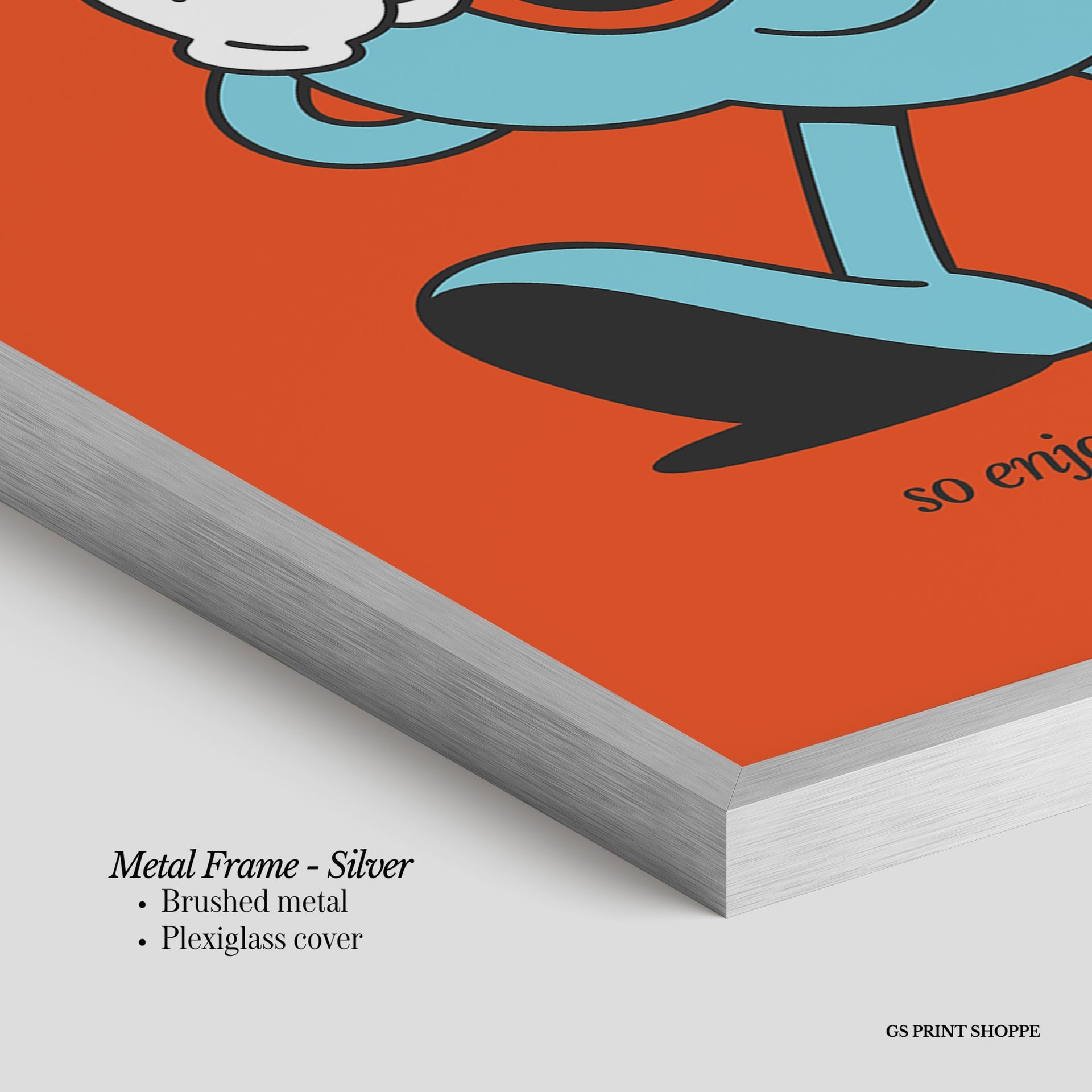 Metal Frame: Sleek and modern, our metal frame is crafted with brushed metal for a polished finish. It comes with durable plexiglass and sturdy metal hangers for horizontal or vertical display.