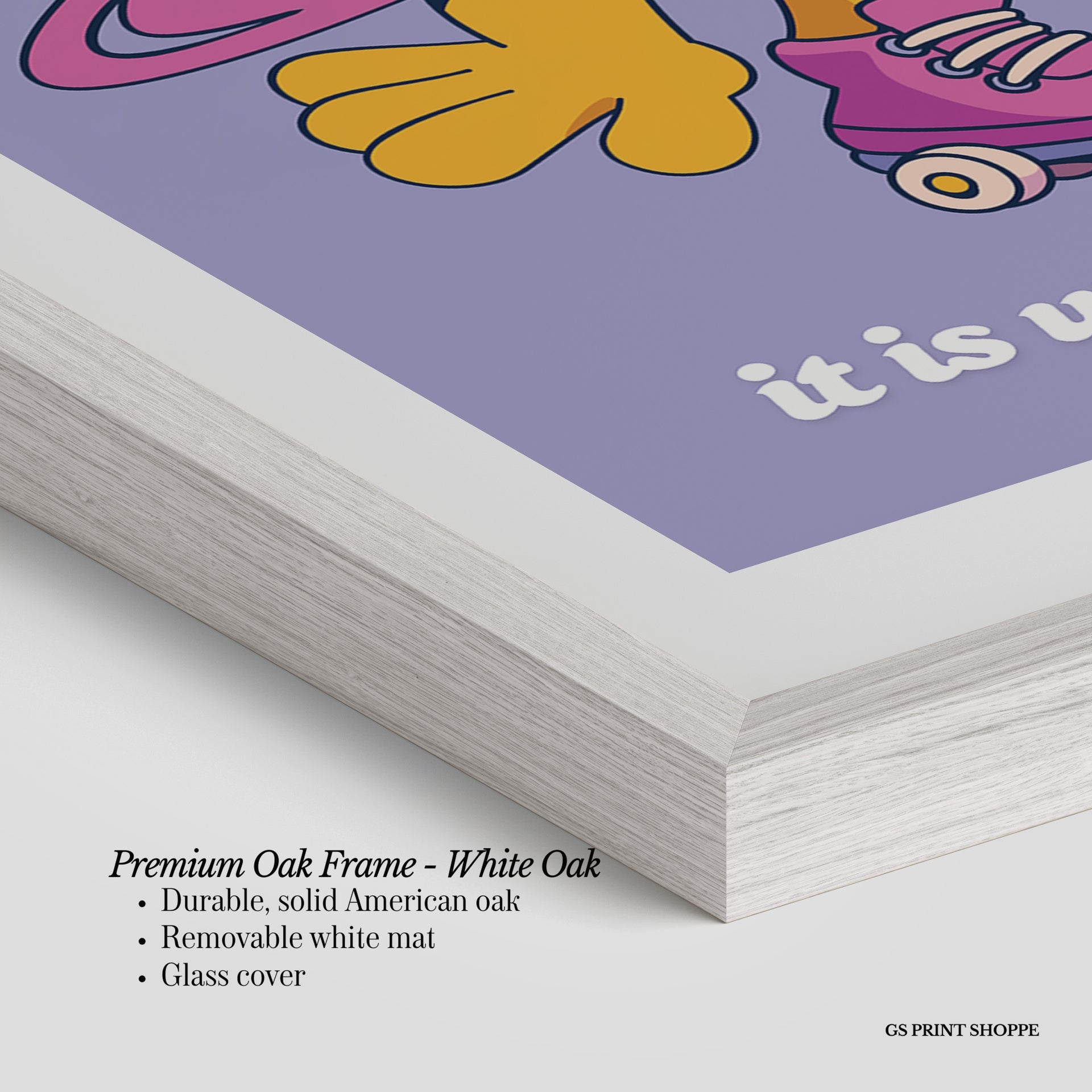 Premium Oak Frame: Our premium oak frame is crafted from solid American oak, offering a warm, natural feel with a high-end finish. We complete this elevated offering with a bright white removable mat and real glass for a versatile and polished look.