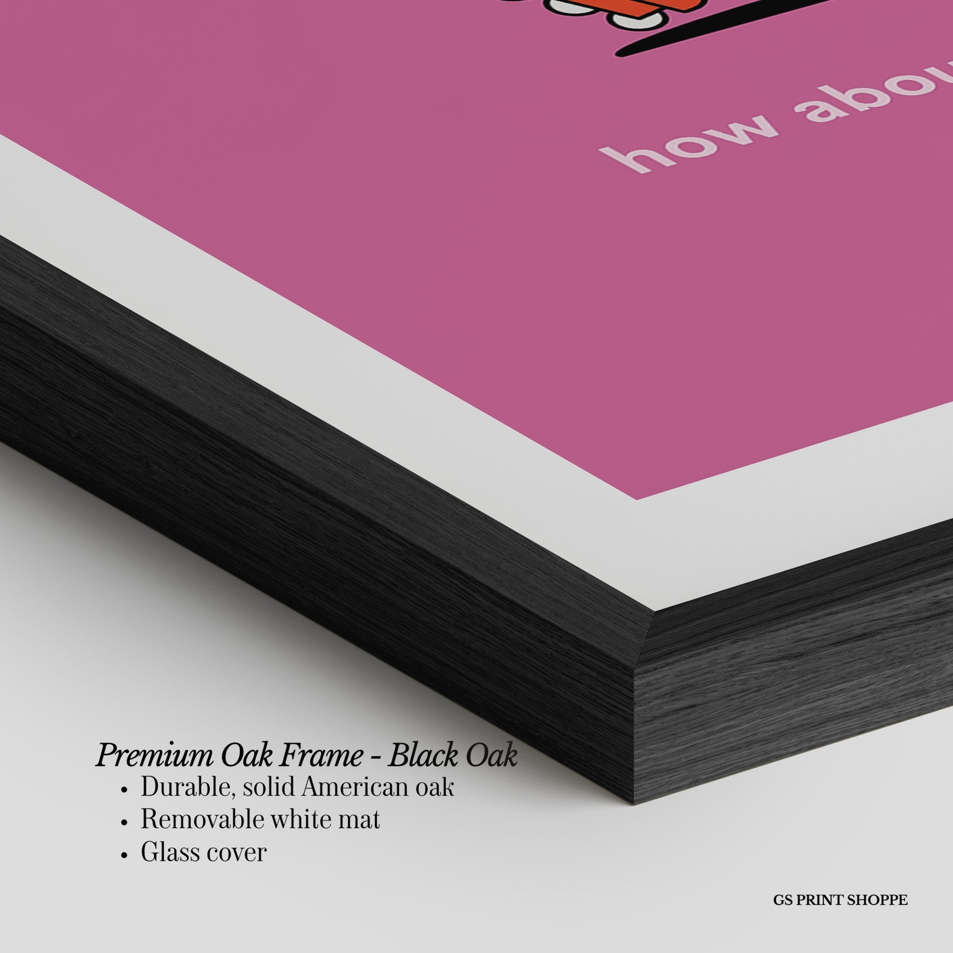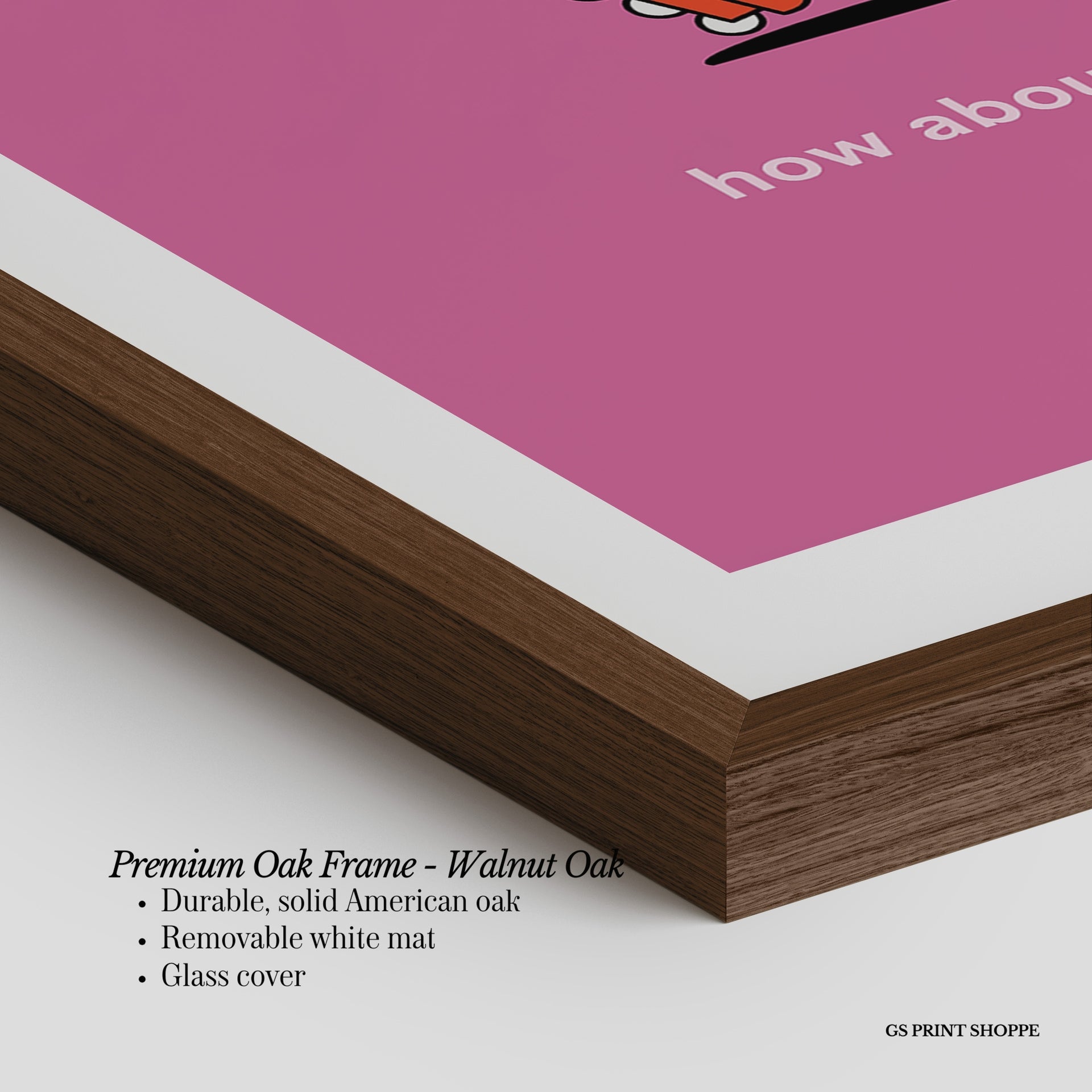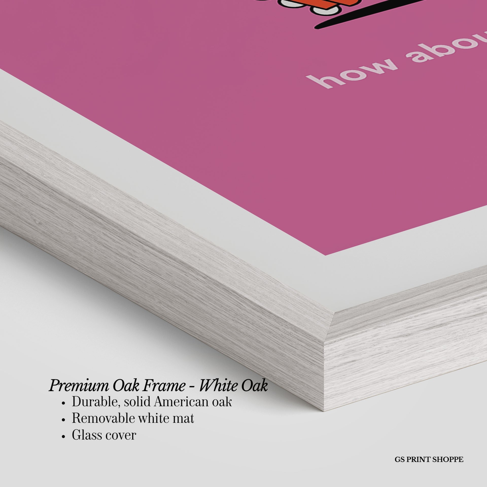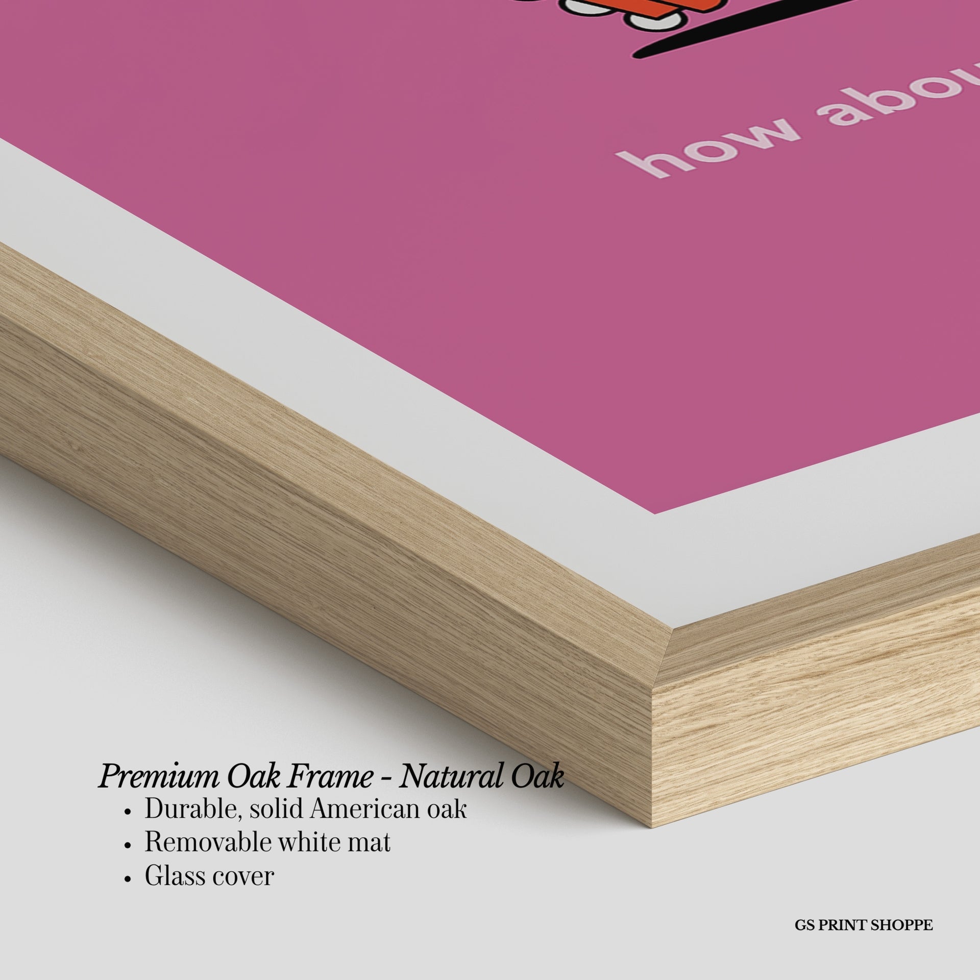 Premium Oak Frame: Our premium oak frame is crafted from solid American oak, offering a warm, natural feel with a high-end finish. We complete this elevated offering with a bright white removable mat and real glass for a versatile and polished look.