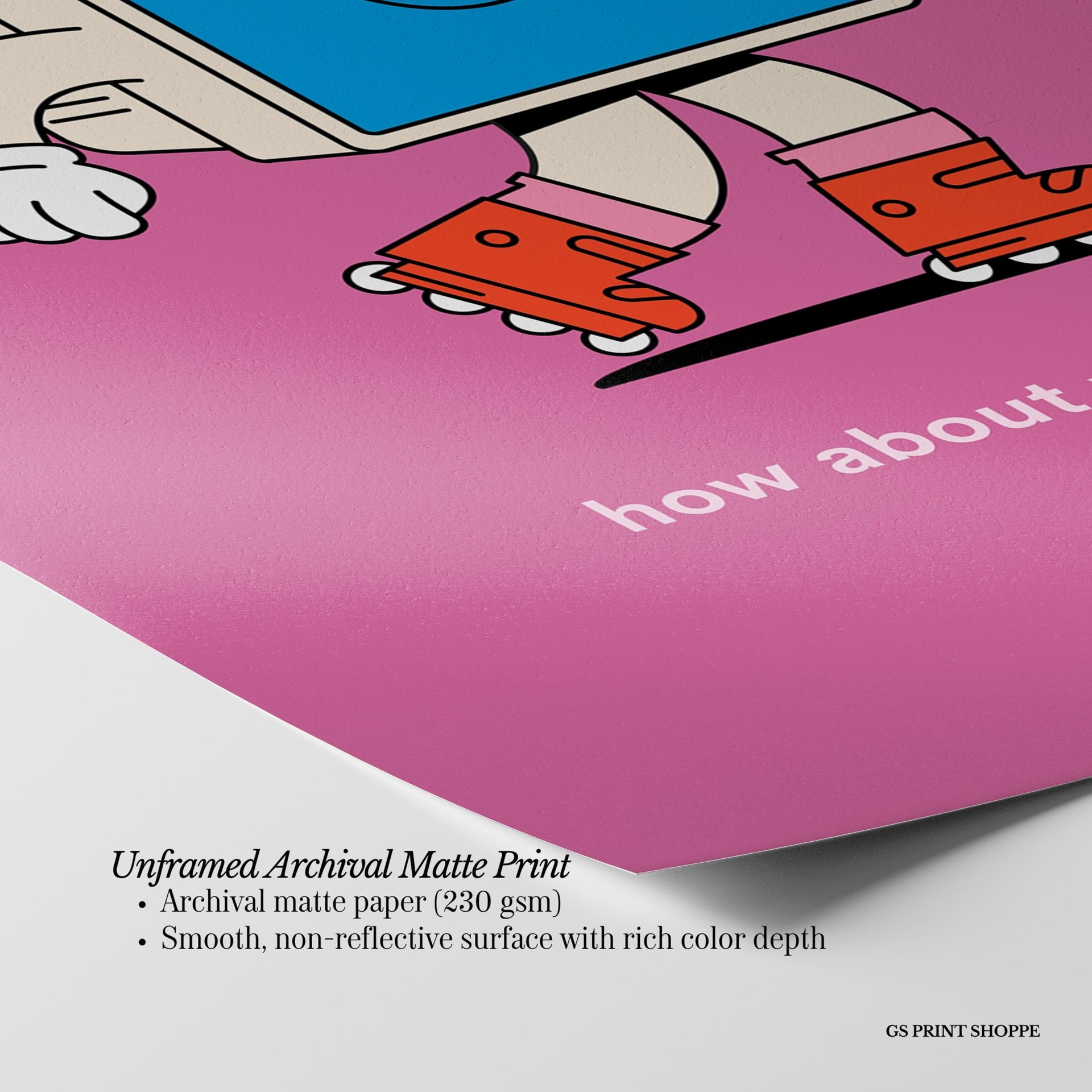Unframed: This print is professionally printed on archival matte paper (230 gsm), a smooth, acid-free paper with a non-reflective finish. It will be carefully packaged to arrive safely at your door.