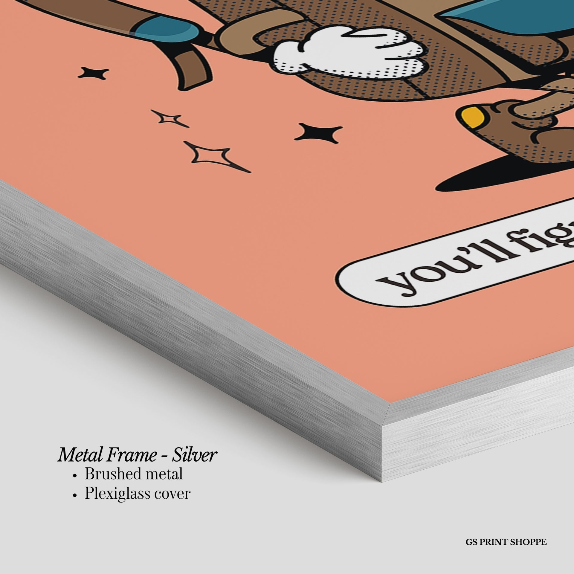 Metal Frame: Sleek and modern, our metal frame is crafted with brushed metal for a polished finish. It comes with durable plexiglass and sturdy metal hangers for horizontal or vertical display.