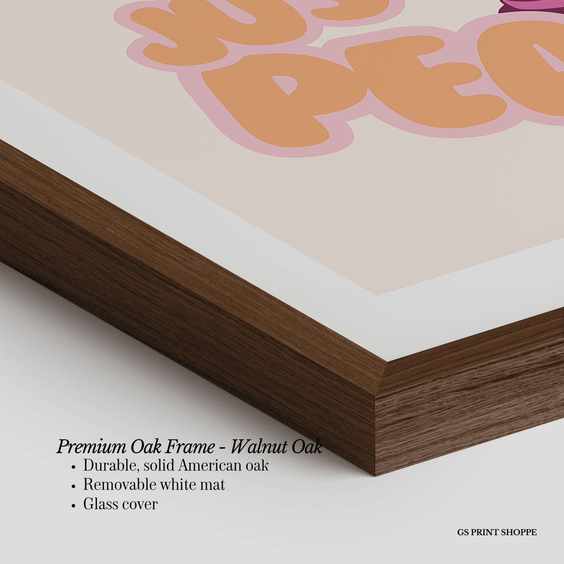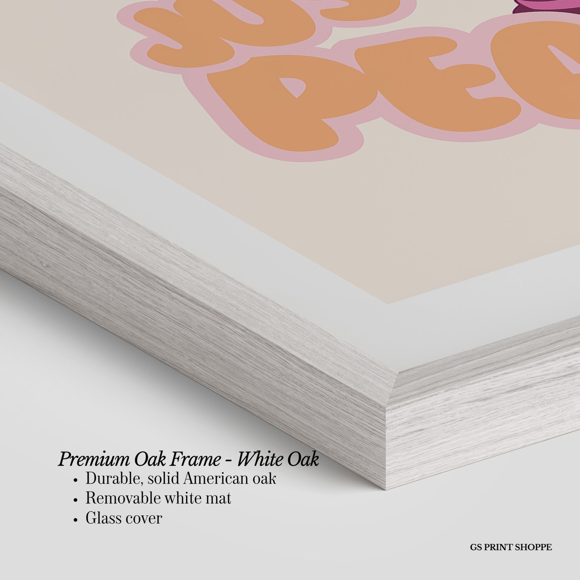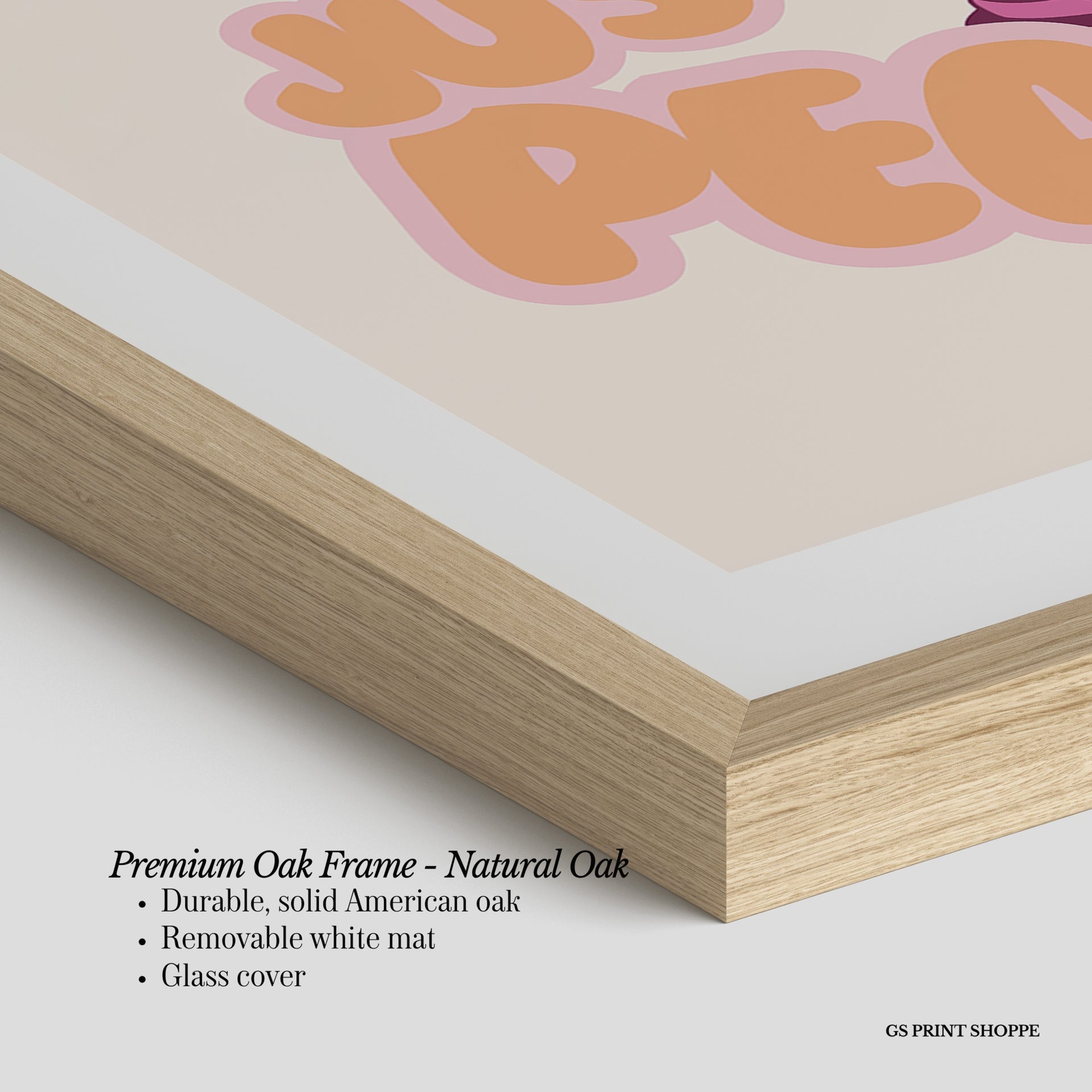Premium Oak Frame: Our premium oak frame is crafted from solid American oak, offering a warm, natural feel with a high-end finish. We complete this elevated offering with a bright white removable mat and real glass for a versatile and polished look.
