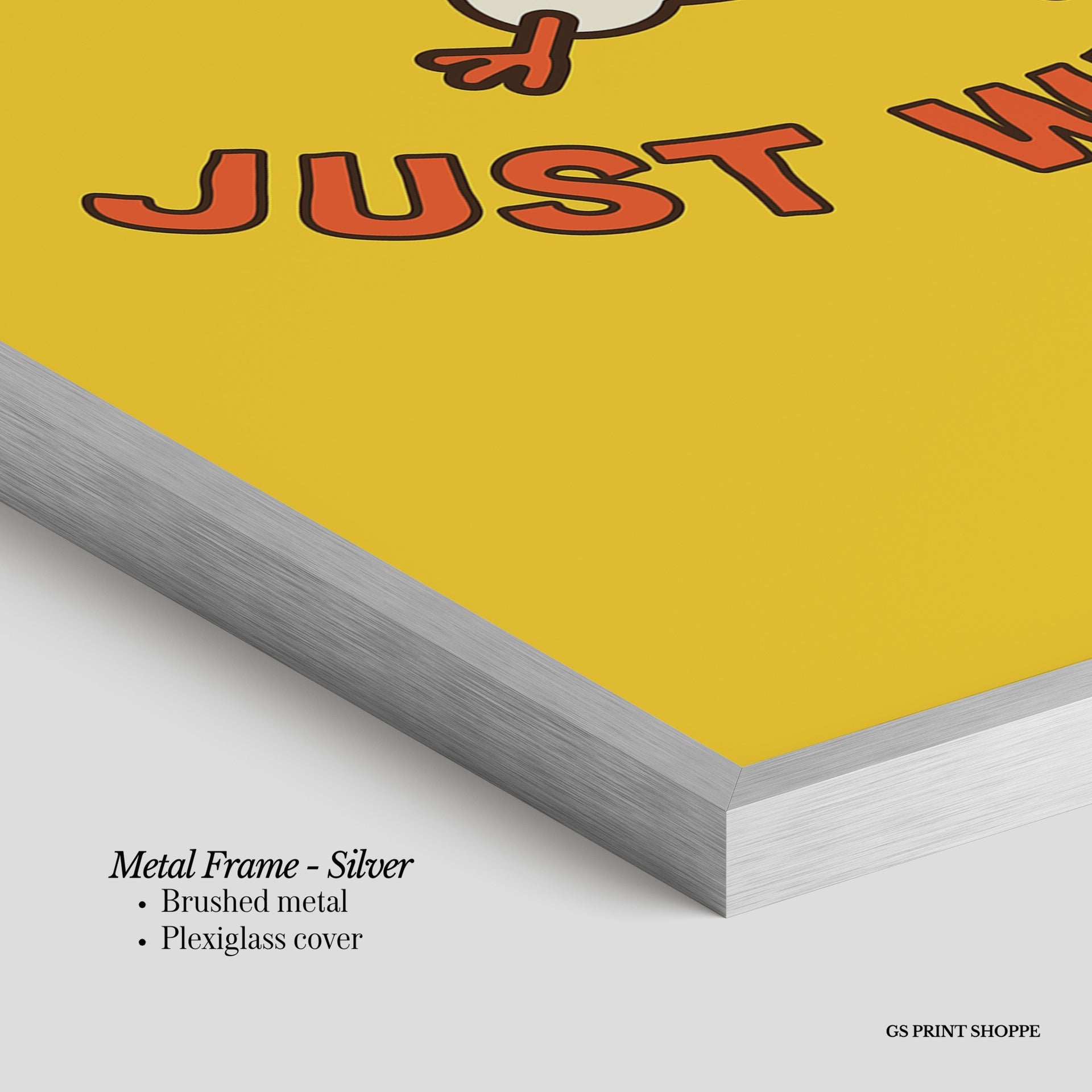 Metal Frame: Sleek and modern, our metal frame is crafted with brushed metal for a polished finish. It comes with durable plexiglass and sturdy metal hangers for horizontal or vertical display.