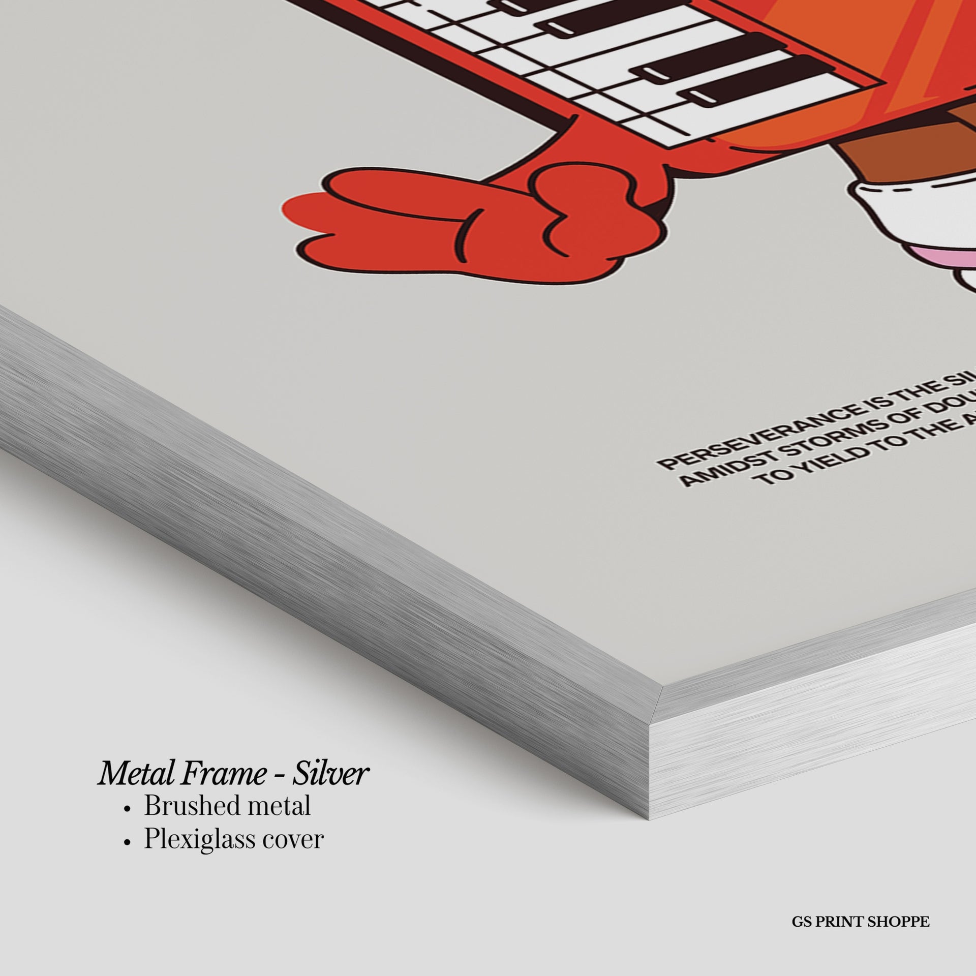 Metal Frame: Sleek and modern, our metal frame is crafted with brushed metal for a polished finish. It comes with durable plexiglass and sturdy metal hangers for horizontal or vertical display.