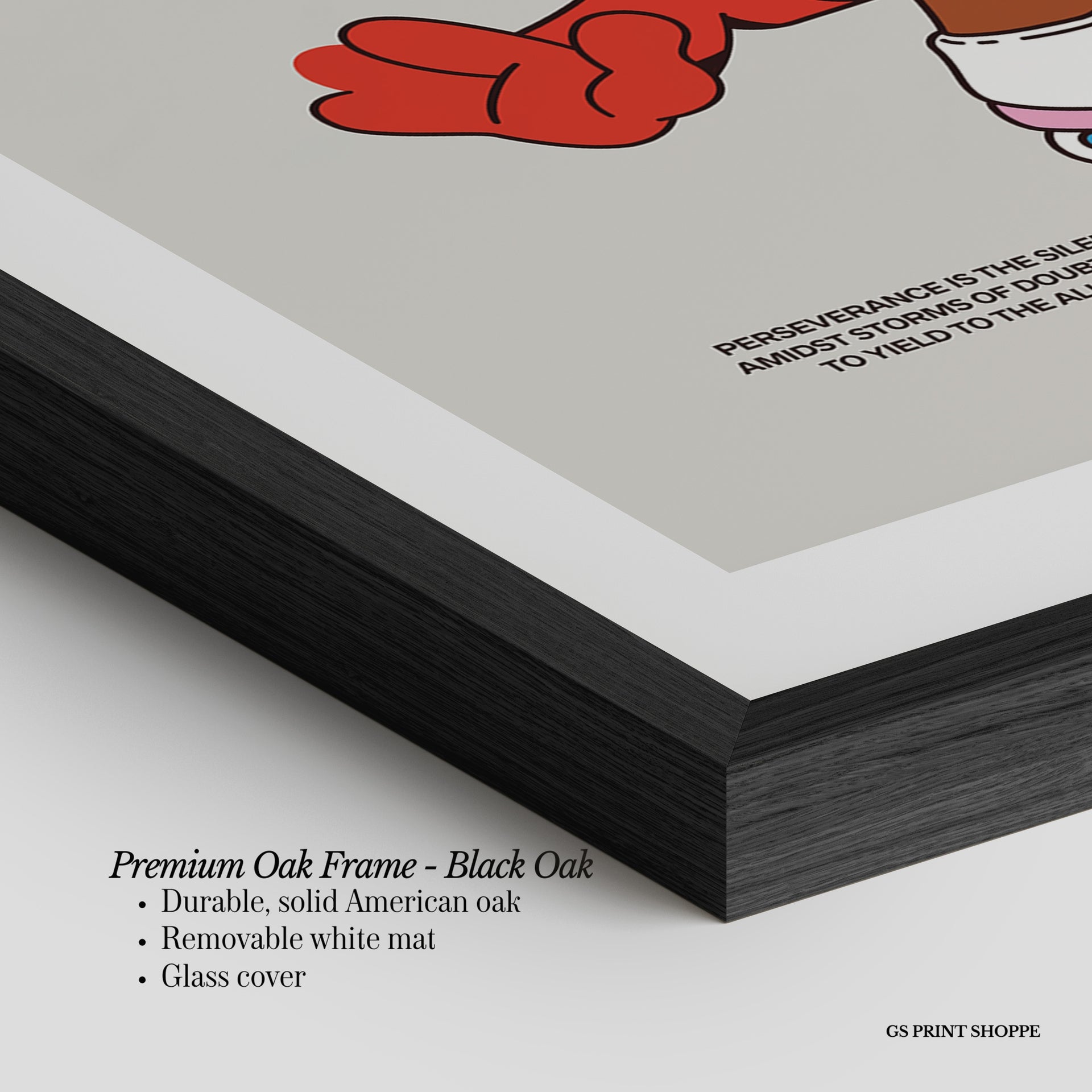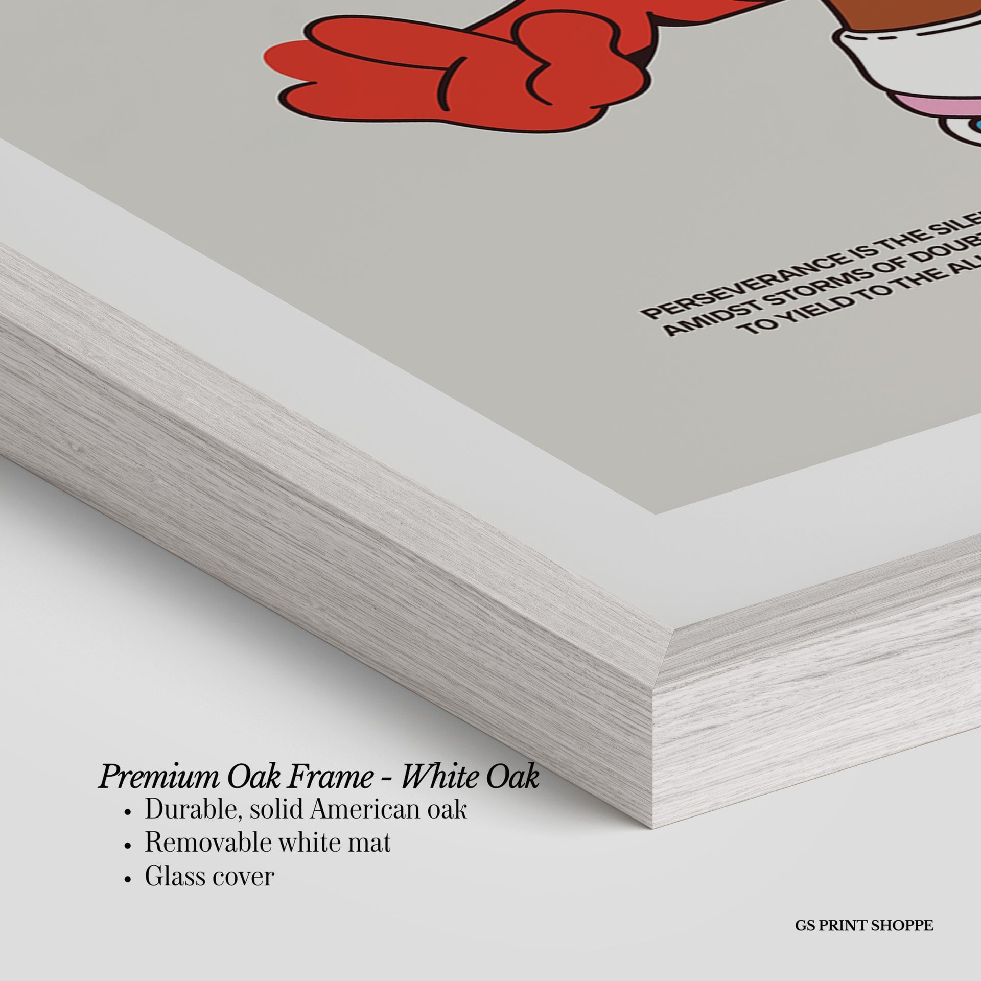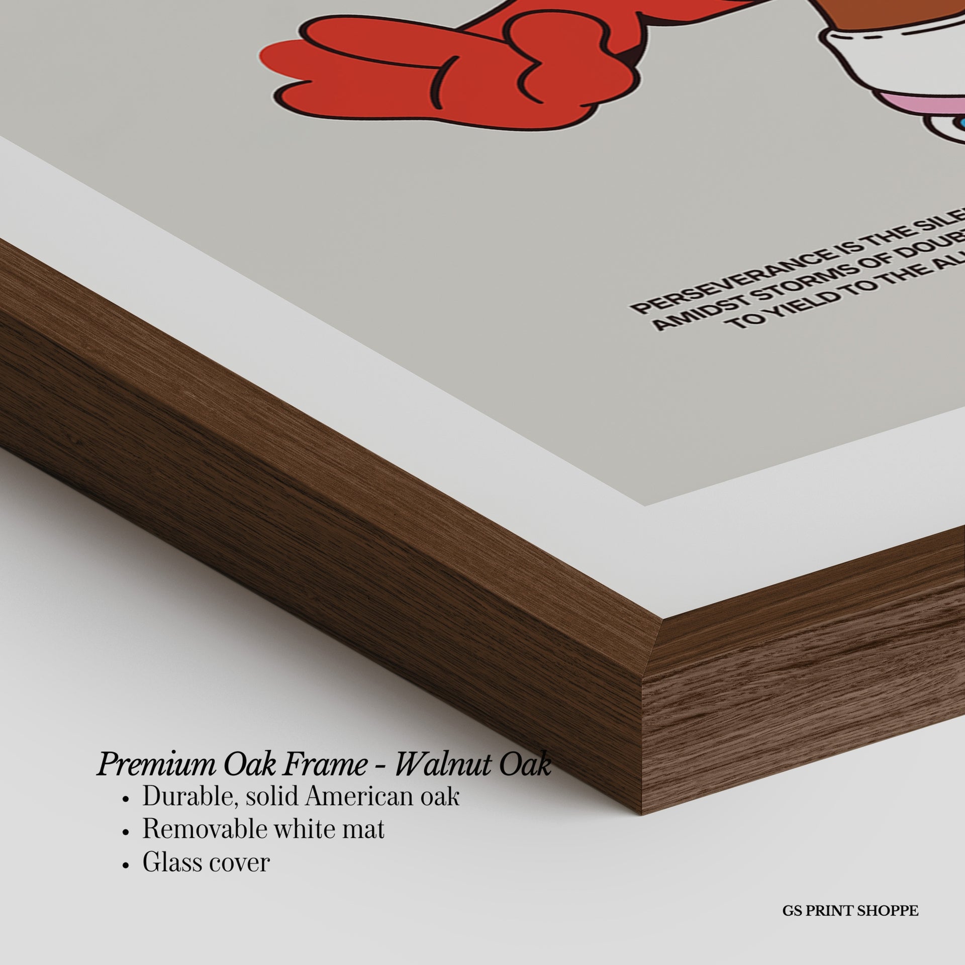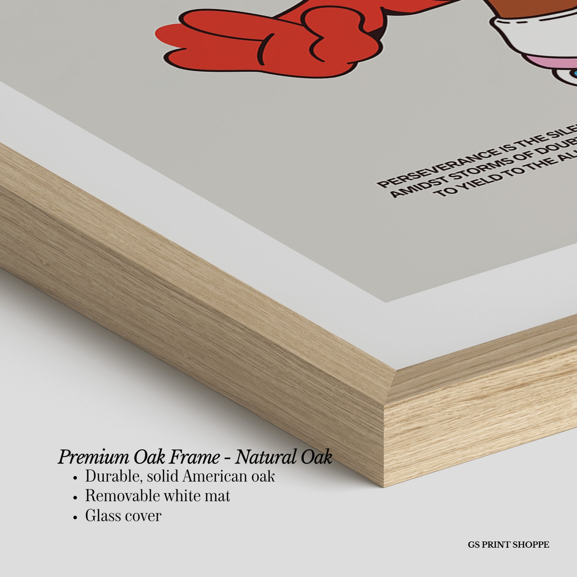 Premium Oak Frame: Our premium oak frame is crafted from solid American oak, offering a warm, natural feel with a high-end finish. We complete this elevated offering with a bright white removable mat and real glass for a versatile and polished look.