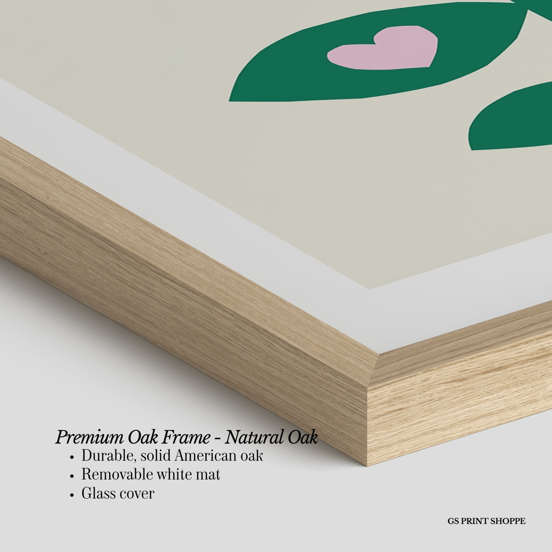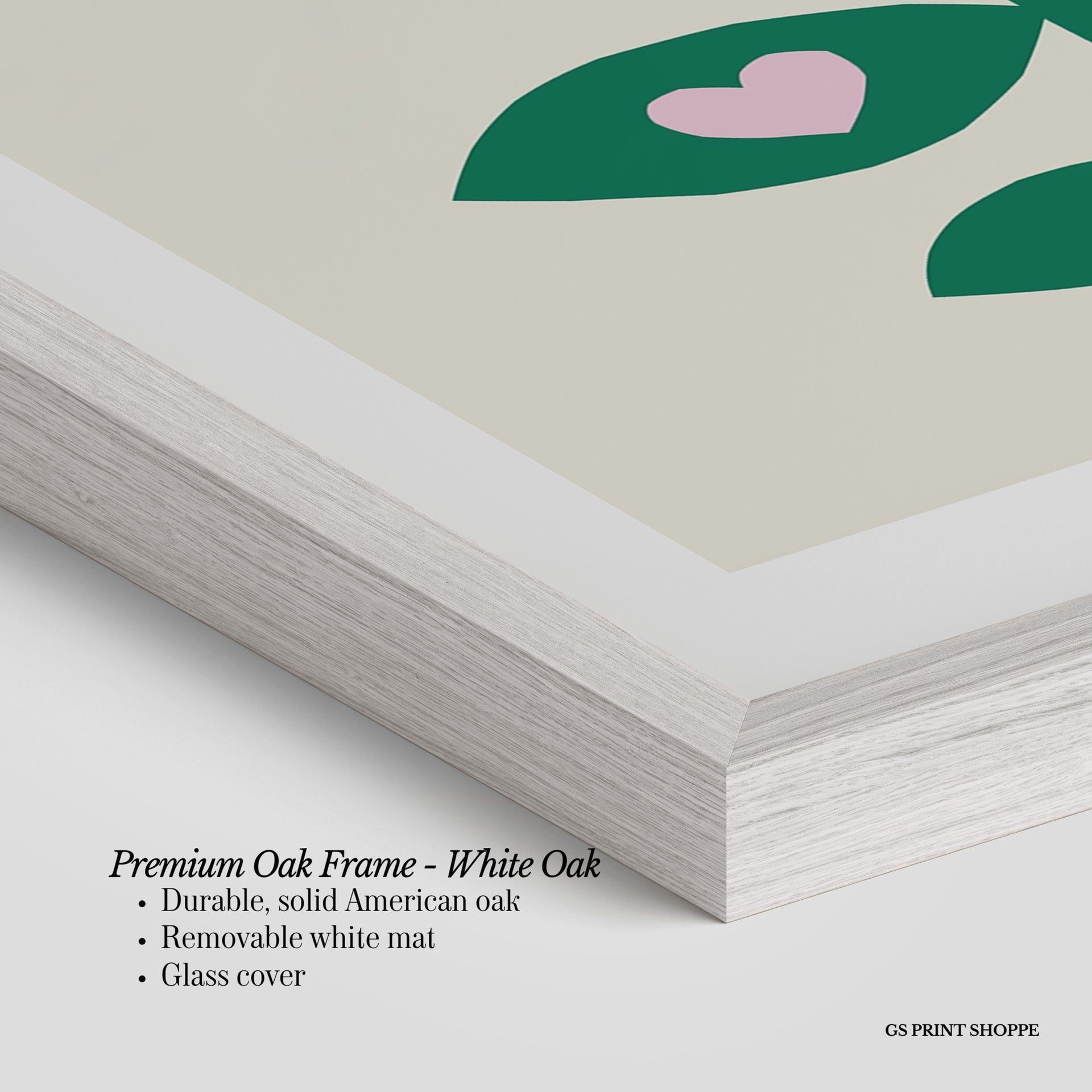 Premium Oak Frame: Our premium oak frame is crafted from solid American oak, offering a warm, natural feel with a high-end finish. We complete this elevated offering with a bright white removable mat and real glass for a versatile and polished look.