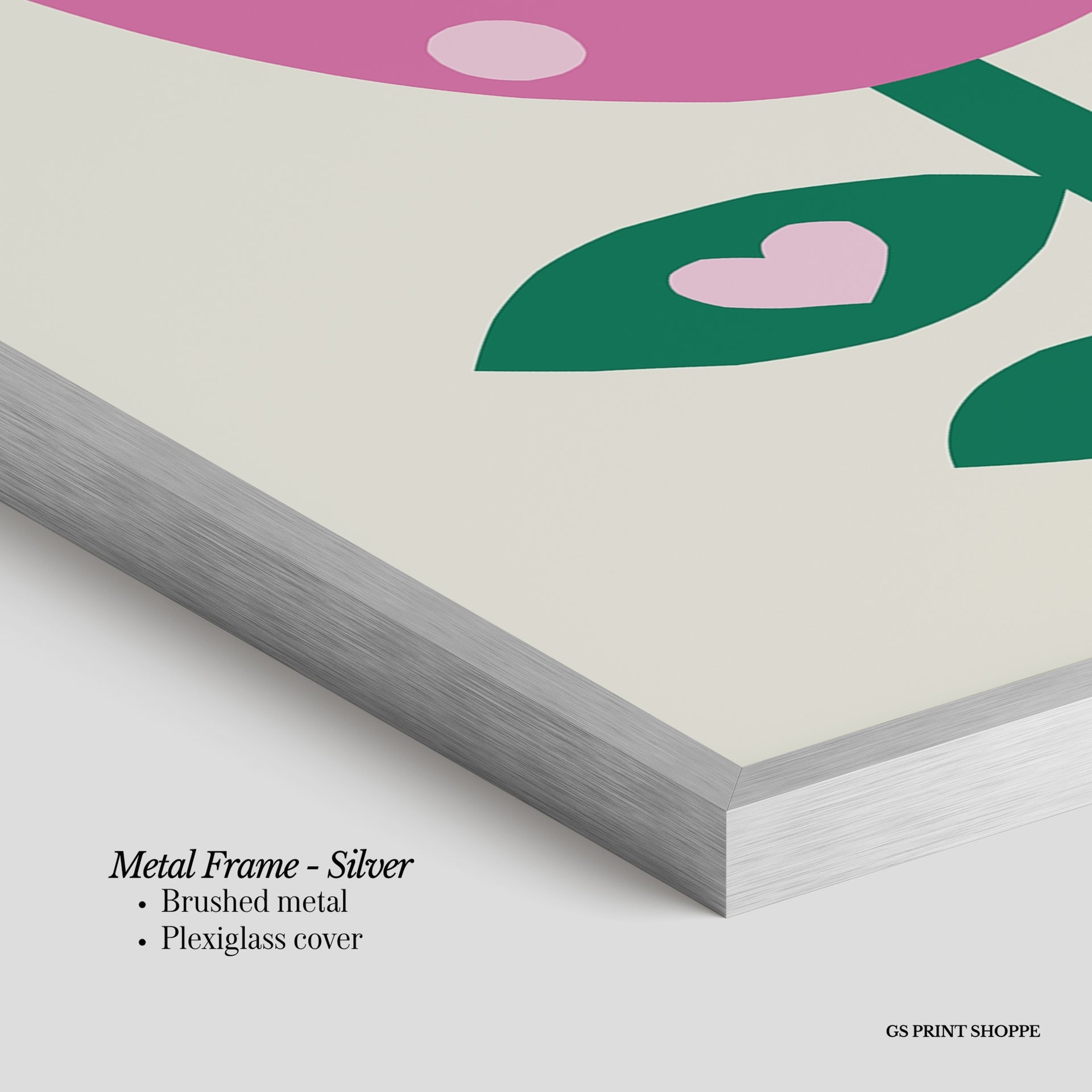 Metal Frame: Sleek and modern, our metal frame is crafted with brushed metal for a polished finish. It comes with durable plexiglass and sturdy metal hangers for horizontal or vertical display.