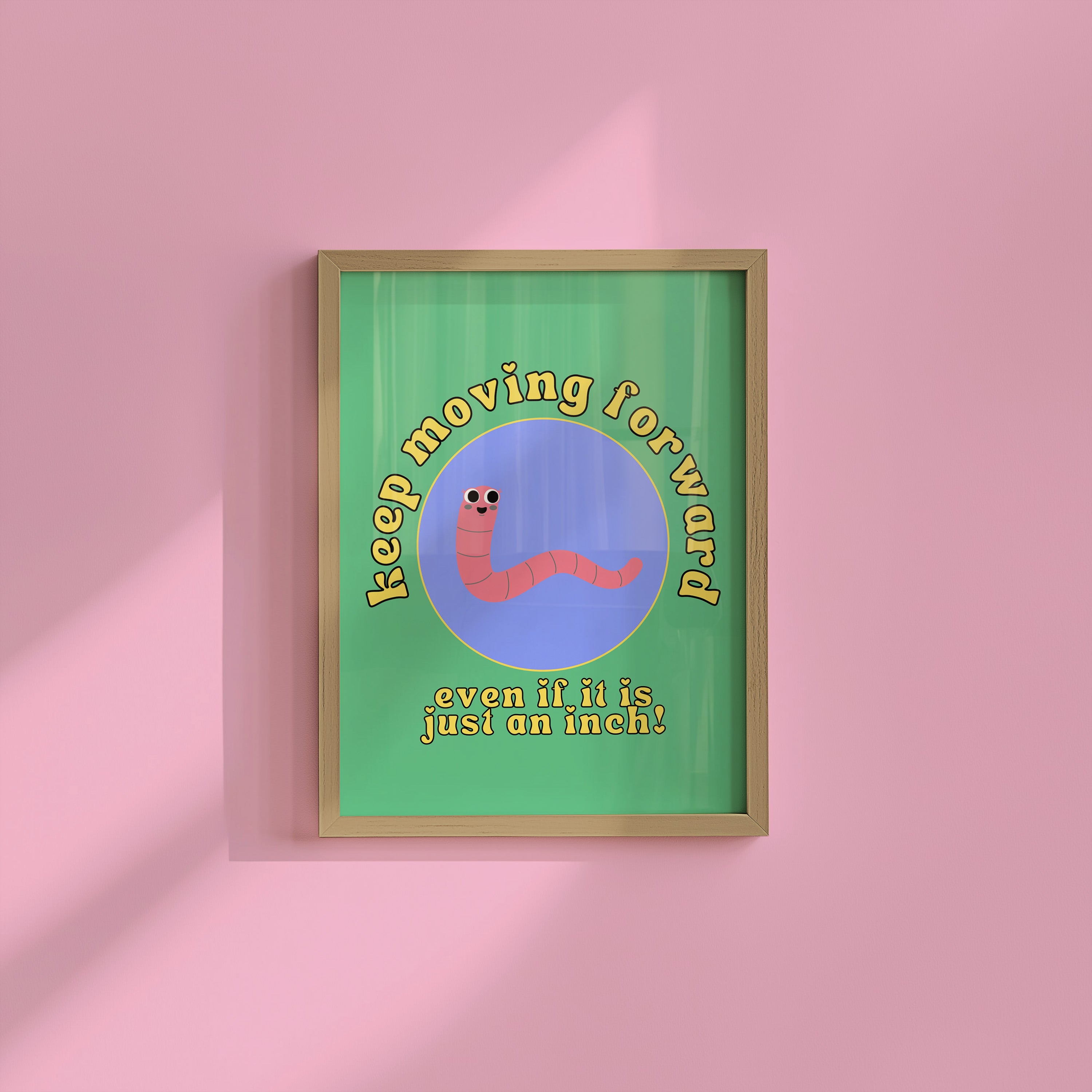 Keep Moving Forward Worm Vertical Digital Art Print - Green