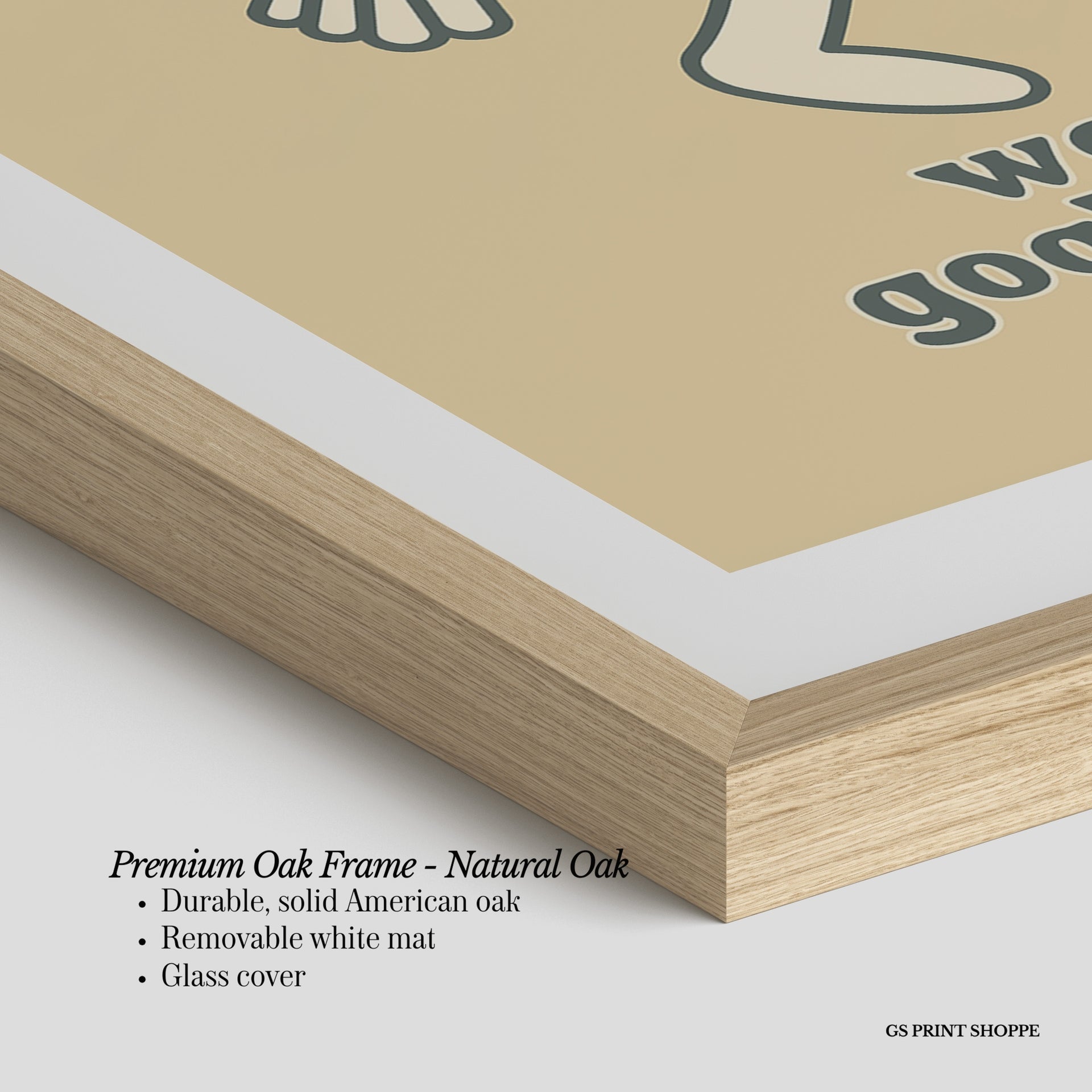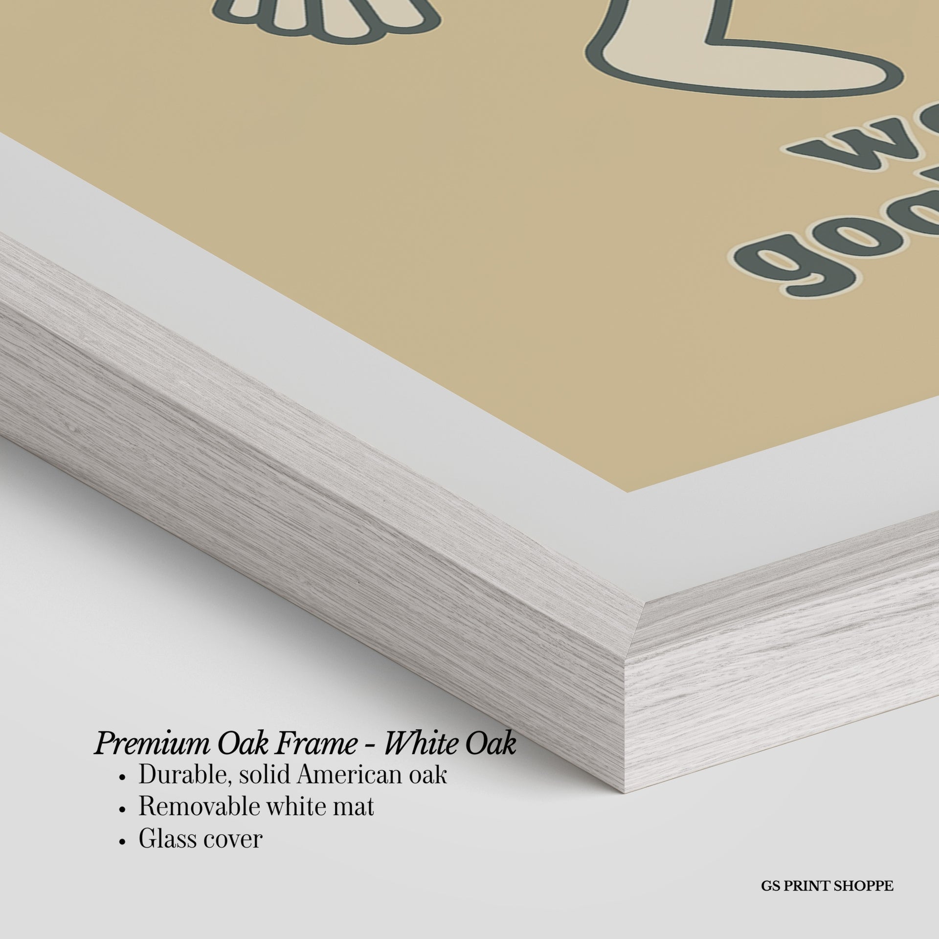 Premium Oak Frame: Our premium oak frame is crafted from solid American oak, offering a warm, natural feel with a high-end finish. We complete this elevated offering with a bright white removable mat and real glass for a versatile and polished look.