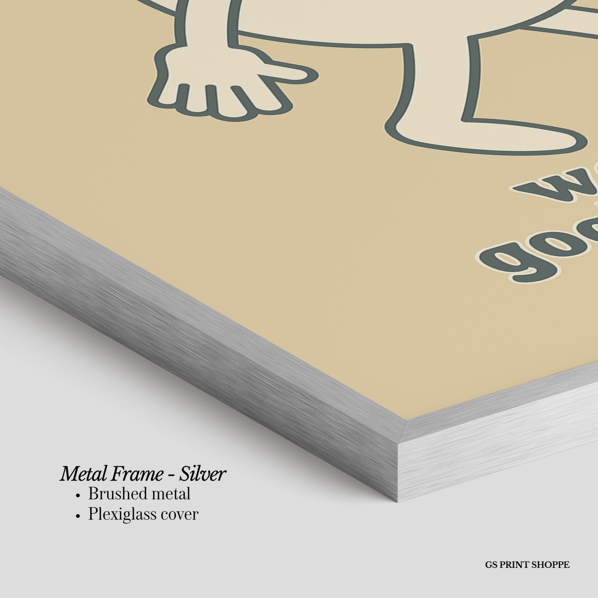Metal Frame: Sleek and modern, our metal frame is crafted with brushed metal for a polished finish. It comes with durable plexiglass and sturdy metal hangers for horizontal or vertical display.
