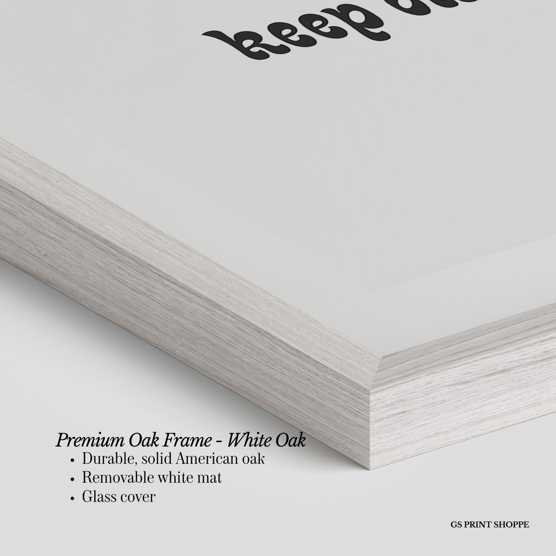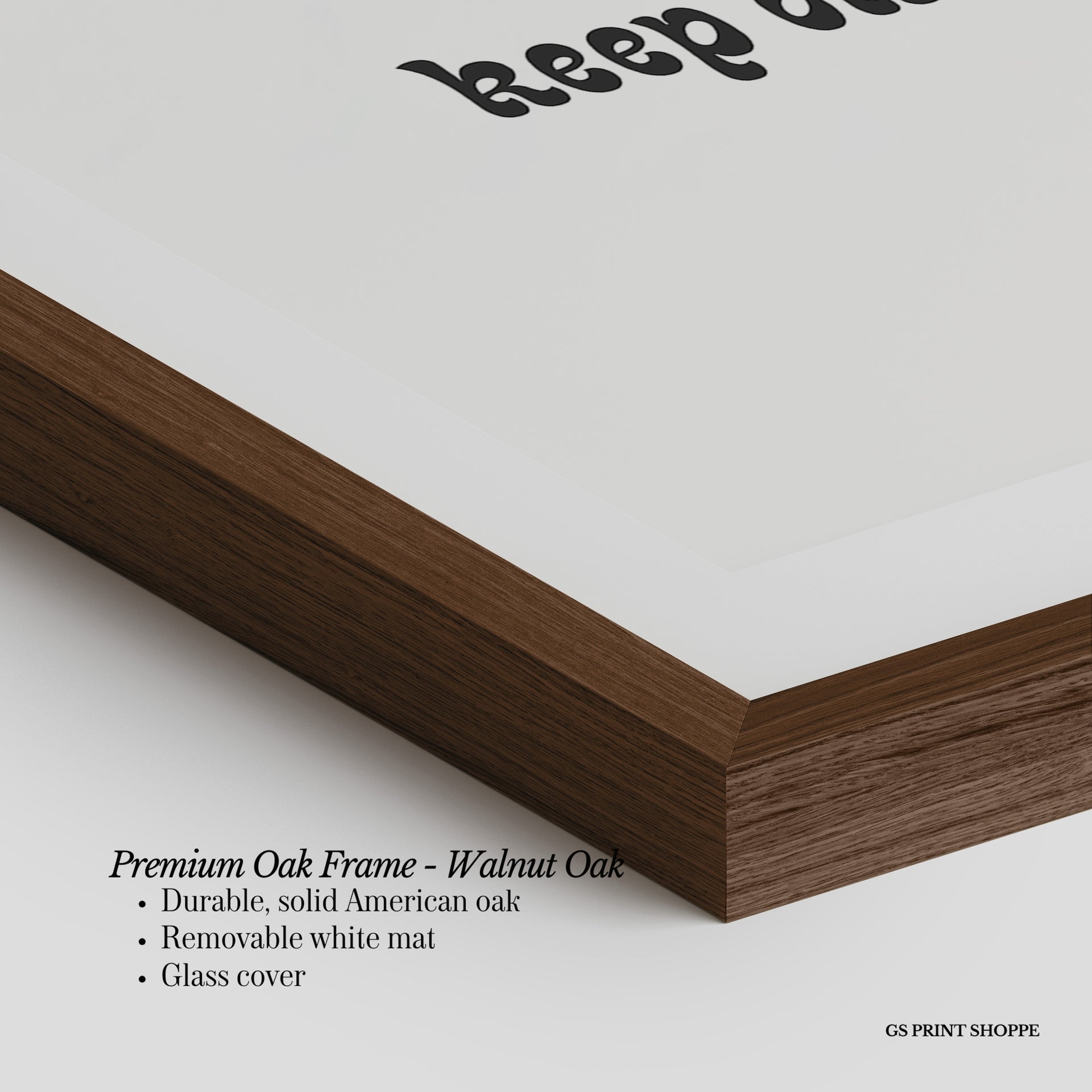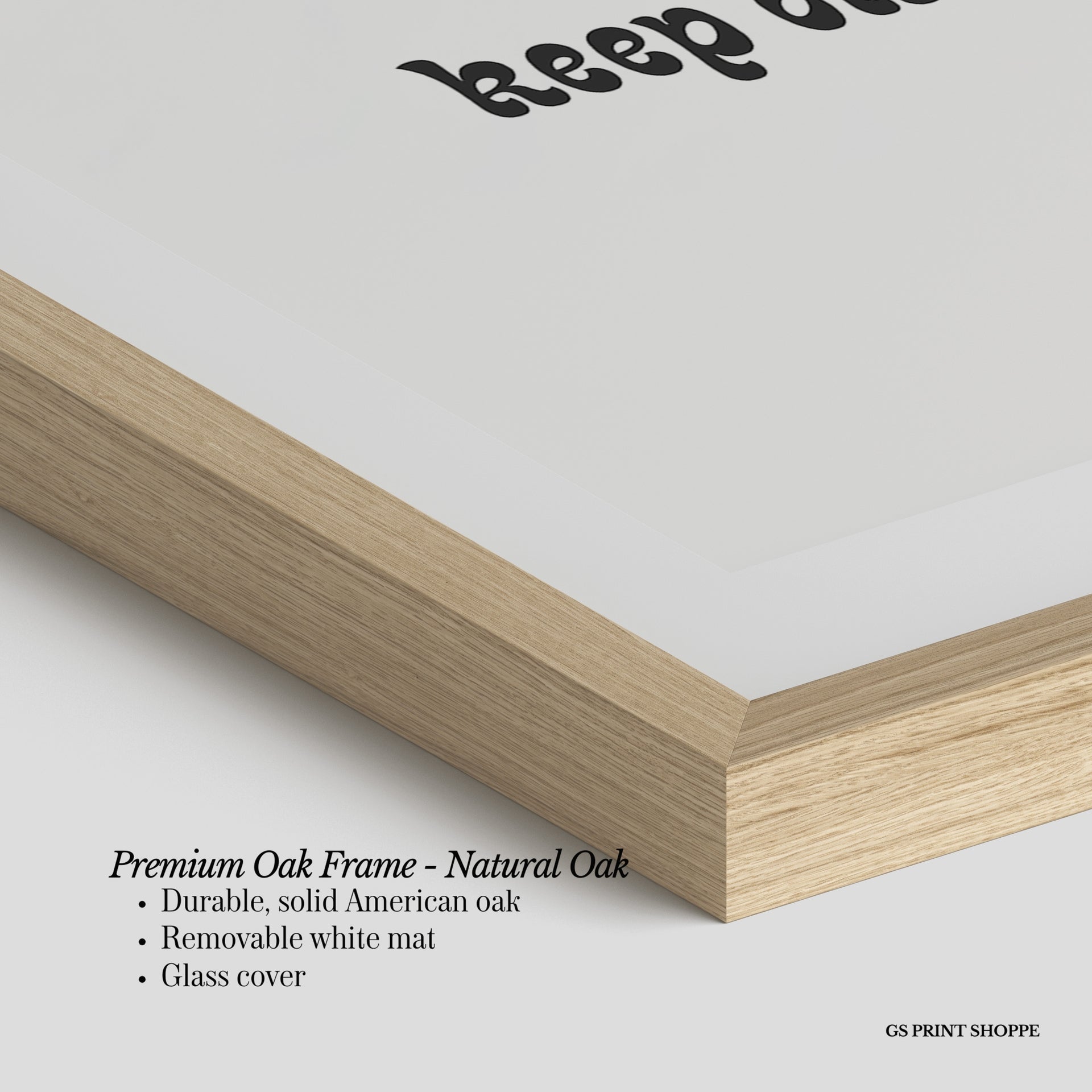 Premium Oak Frame: Our premium oak frame is crafted from solid American oak, offering a warm, natural feel with a high-end finish. We complete this elevated offering with a bright white removable mat and real glass for a versatile and polished look.