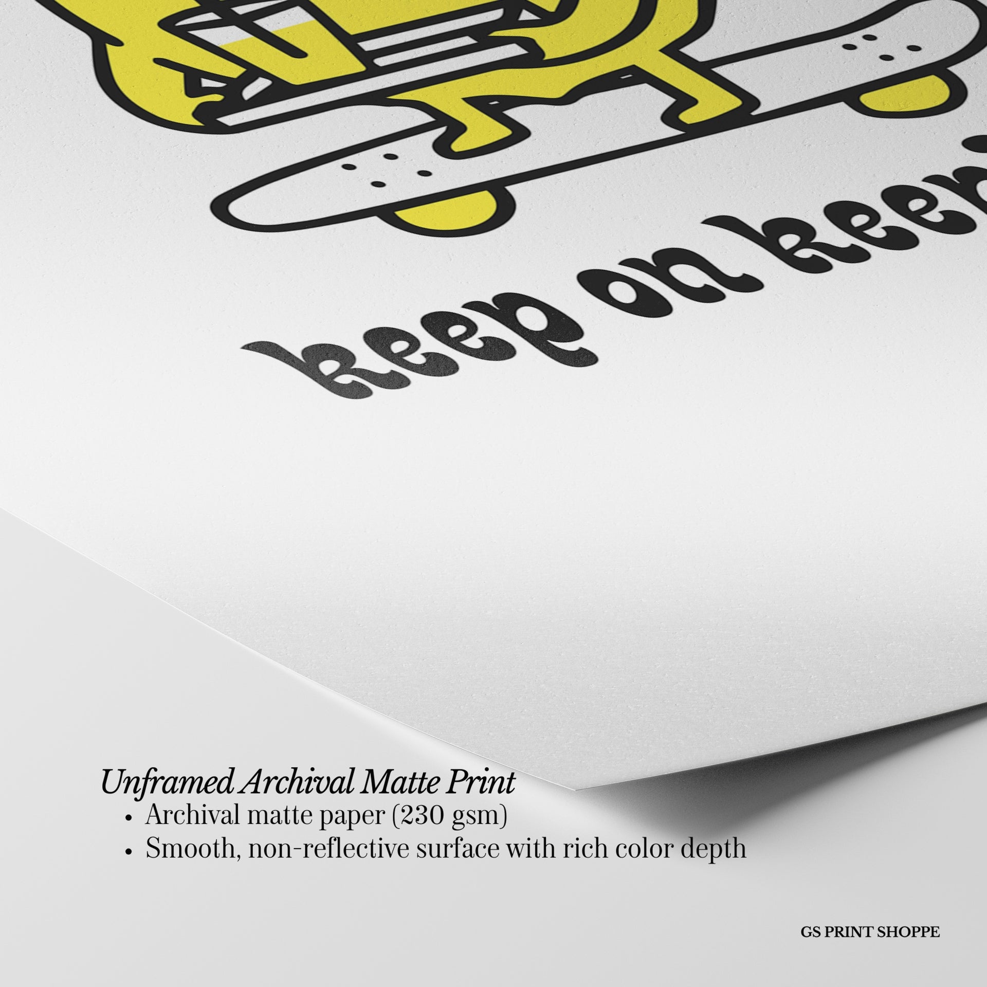 Unframed: This print is professionally printed on archival matte paper (230 gsm), a smooth, acid-free paper with a non-reflective finish. It will be carefully packaged to arrive safely at your door.