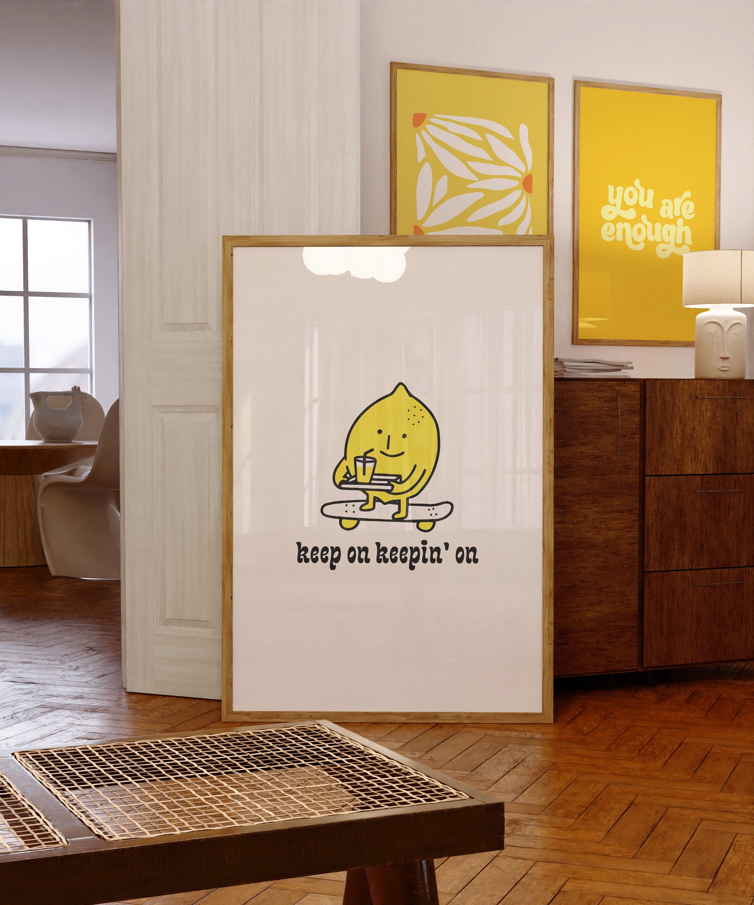 Keep on Keepin' On Lemon Vertical Digital Art Print