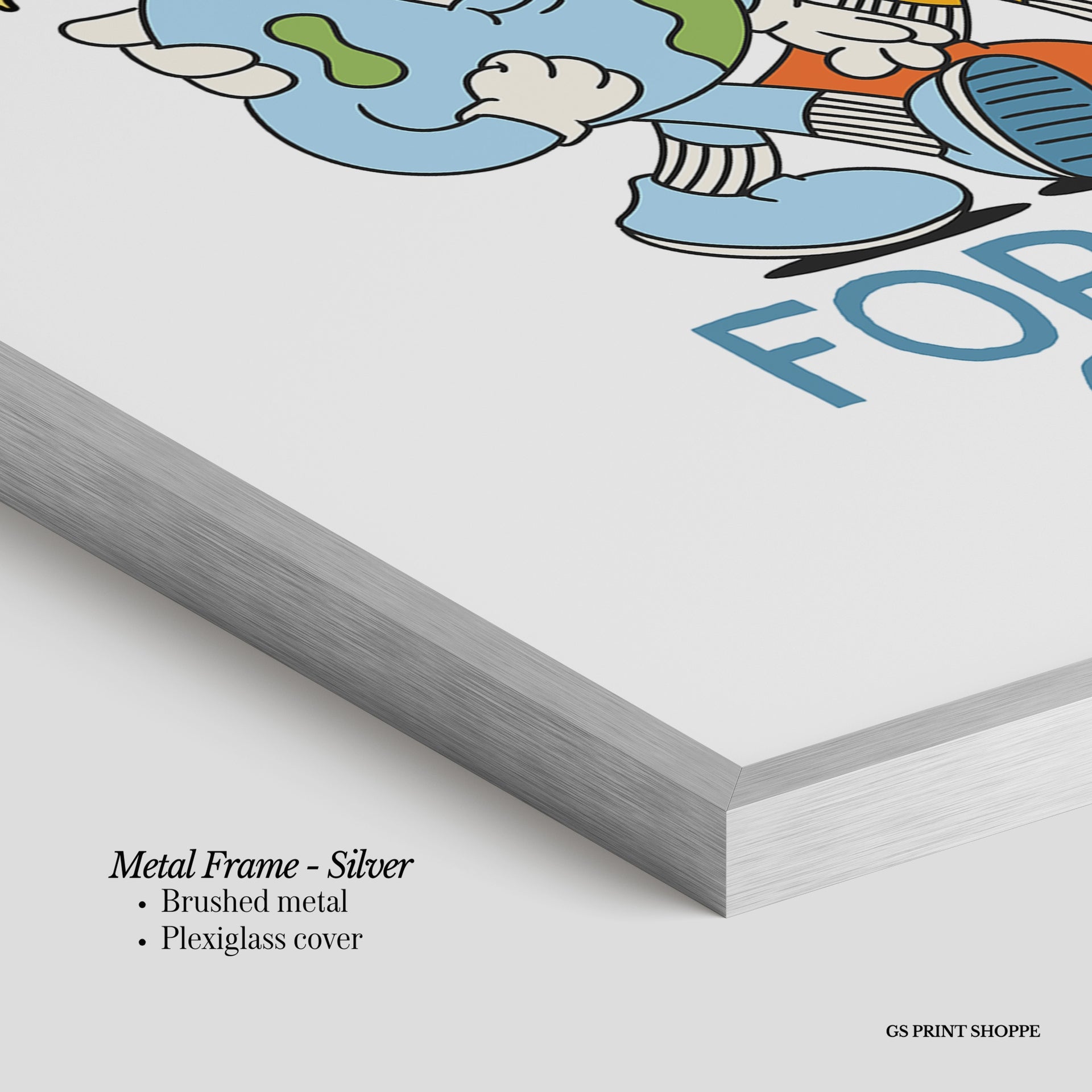 Metal Frame: Sleek and modern, our metal frame is crafted with brushed metal for a polished finish. It comes with durable plexiglass and sturdy metal hangers for horizontal or vertical display.