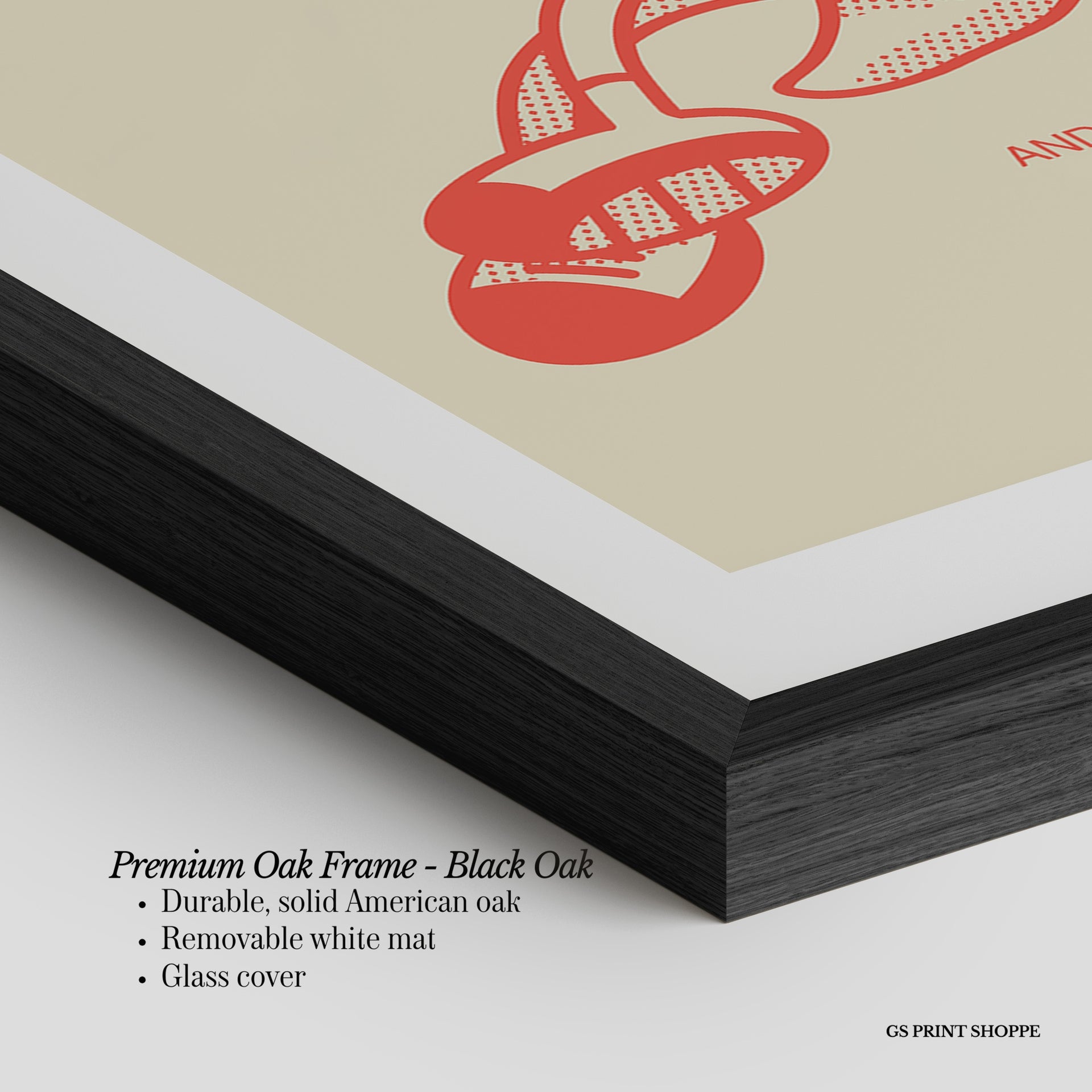 Oak Frame: Our solid oak frame blends durability with timeless appeal. Made from American oak, it features a smooth finish and plexiglass for long-lasting quality.
