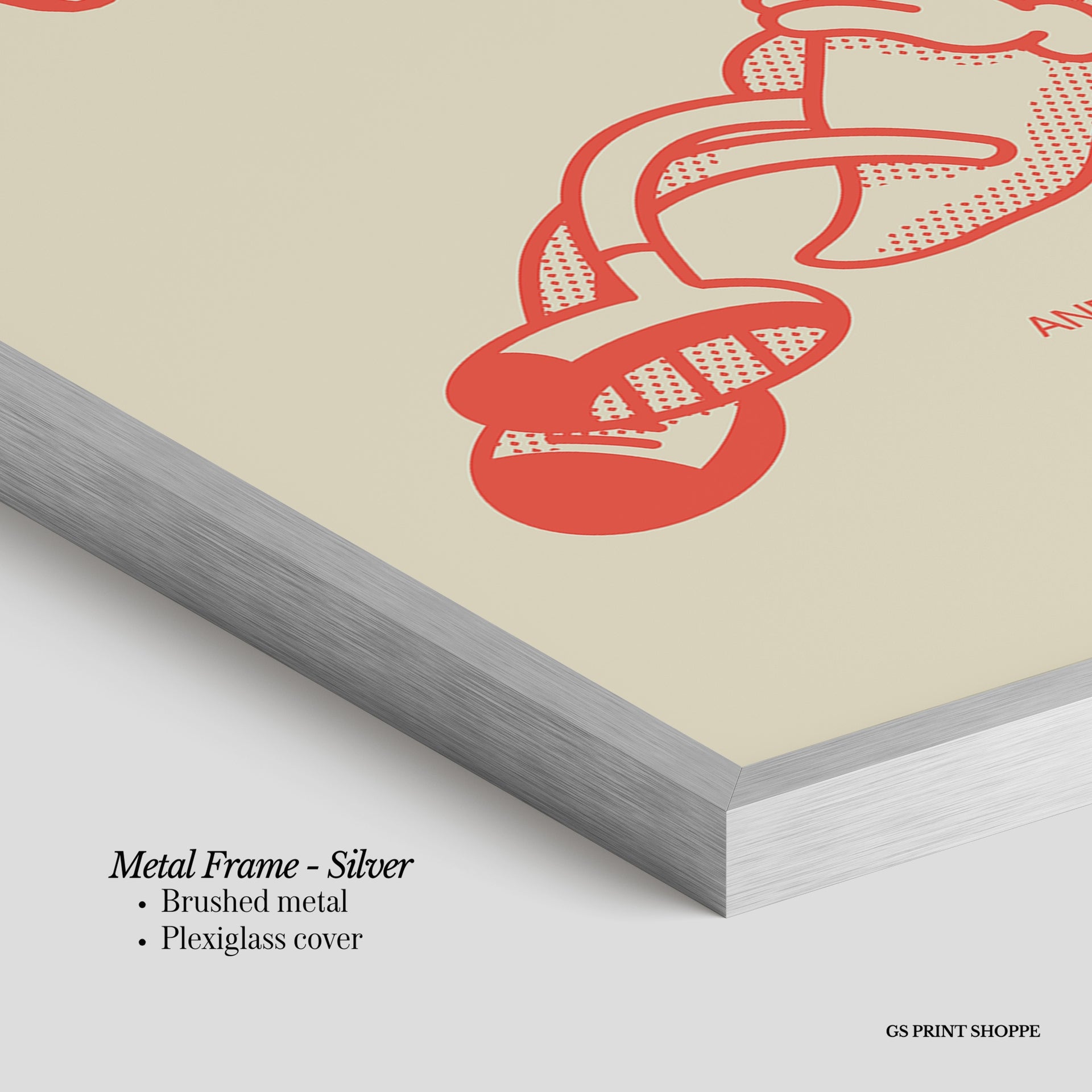 Metal Frame: Sleek and modern, our metal frame is crafted with brushed metal for a polished finish. It comes with durable plexiglass and sturdy metal hangers for horizontal or vertical display.