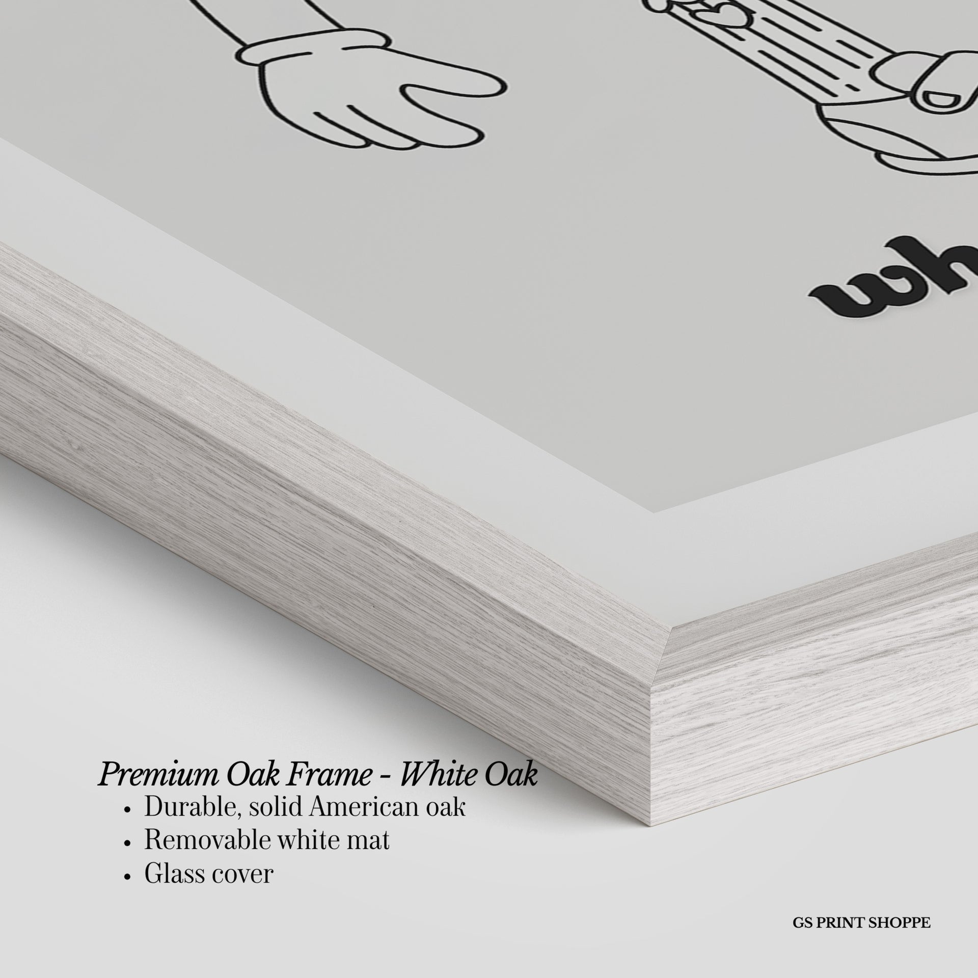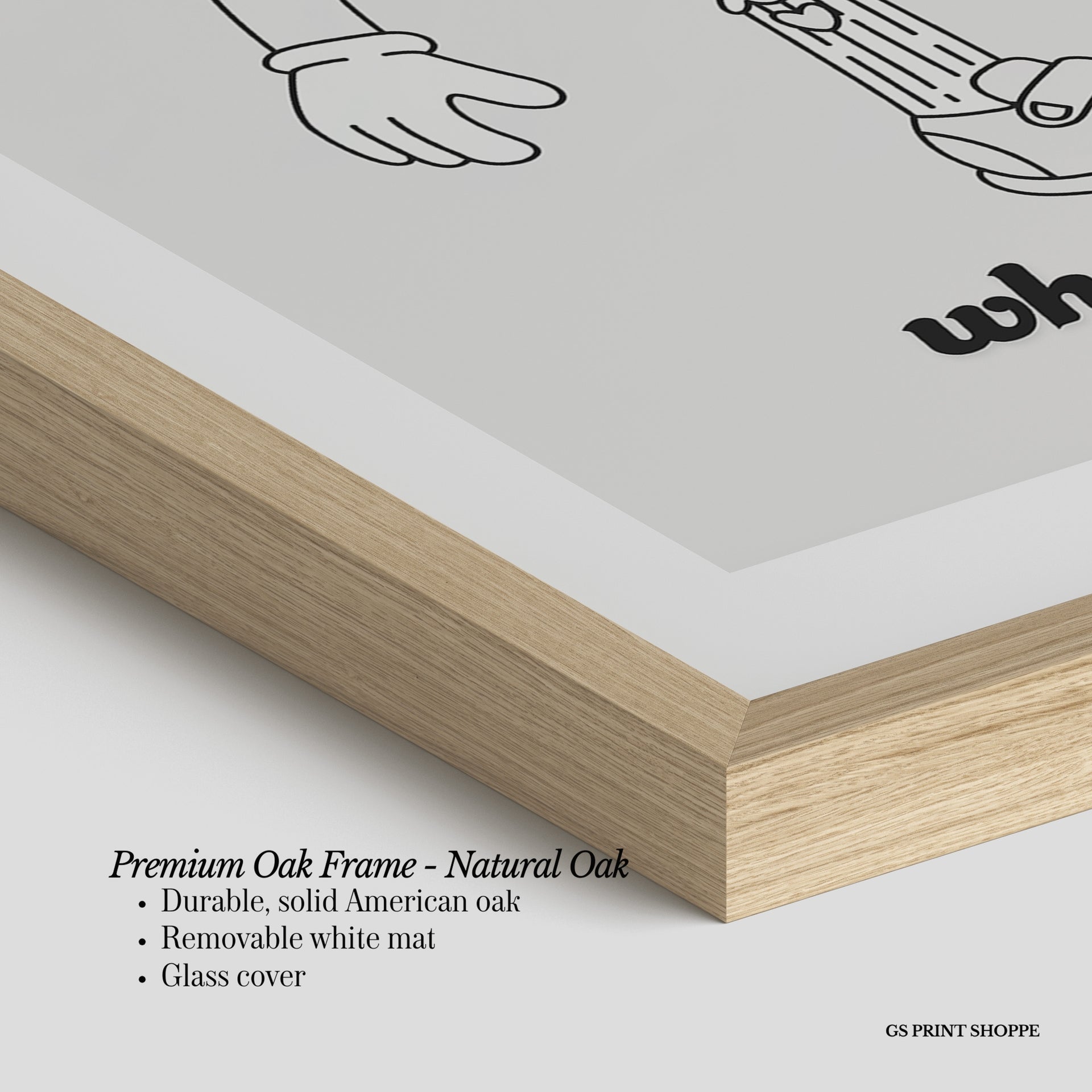 Premium Oak Frame: Our premium oak frame is crafted from solid American oak, offering a warm, natural feel with a high-end finish. We complete this elevated offering with a bright white removable mat and real glass for a versatile and polished look.