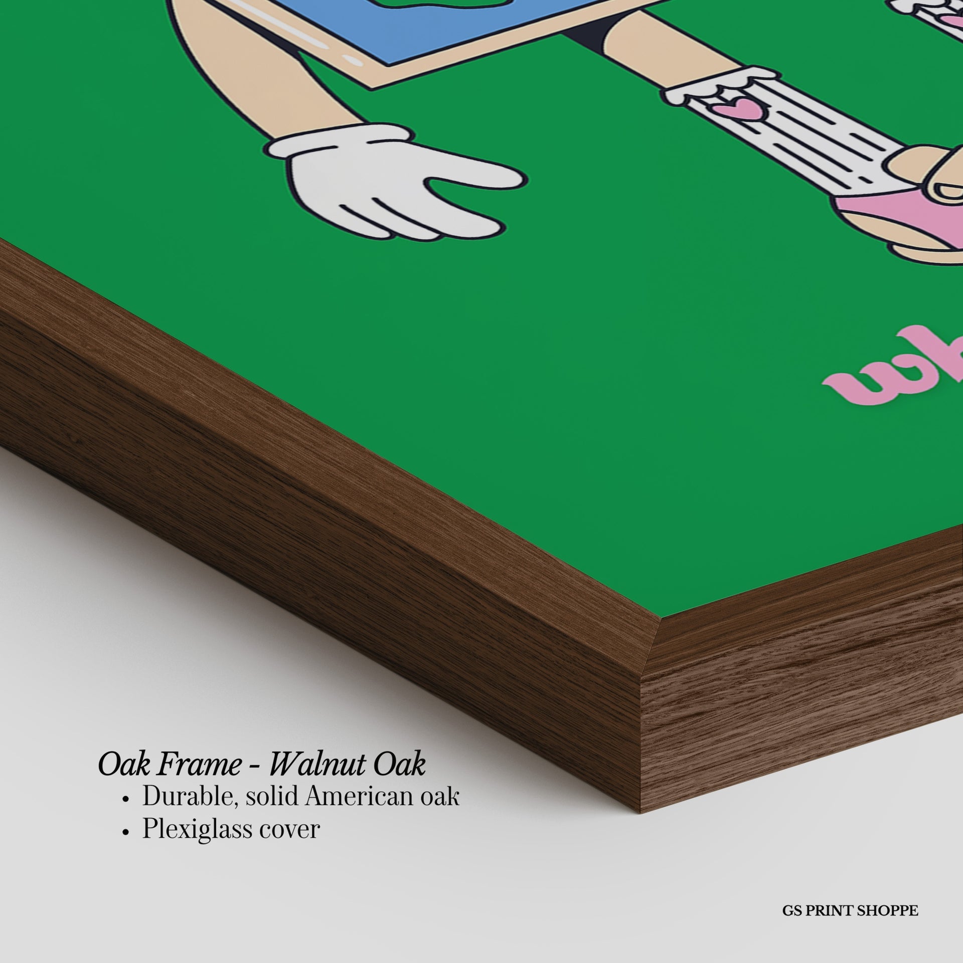 Oak Frame: Our solid oak frame blends durability with timeless appeal. Made from American oak, it features a smooth finish and plexiglass for long-lasting quality.