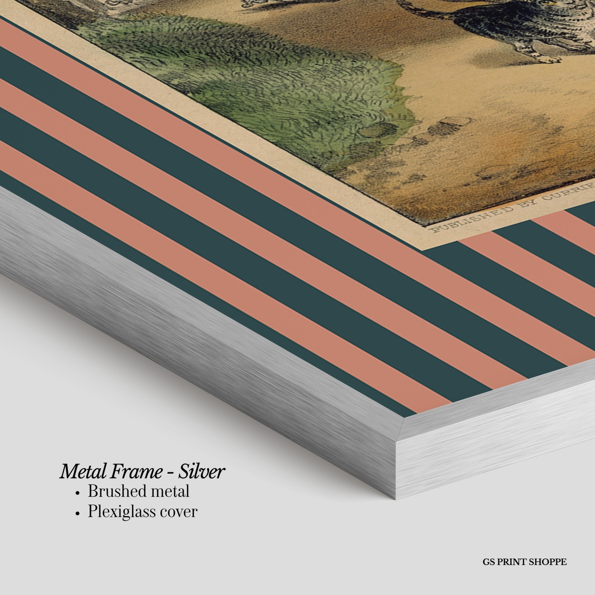 Metal Frame: Sleek and modern, our metal frame is crafted with brushed metal for a polished finish. It comes with durable plexiglass and sturdy metal hangers for horizontal or vertical display.