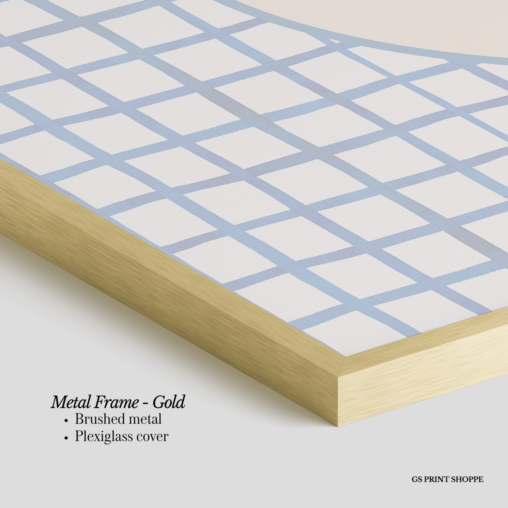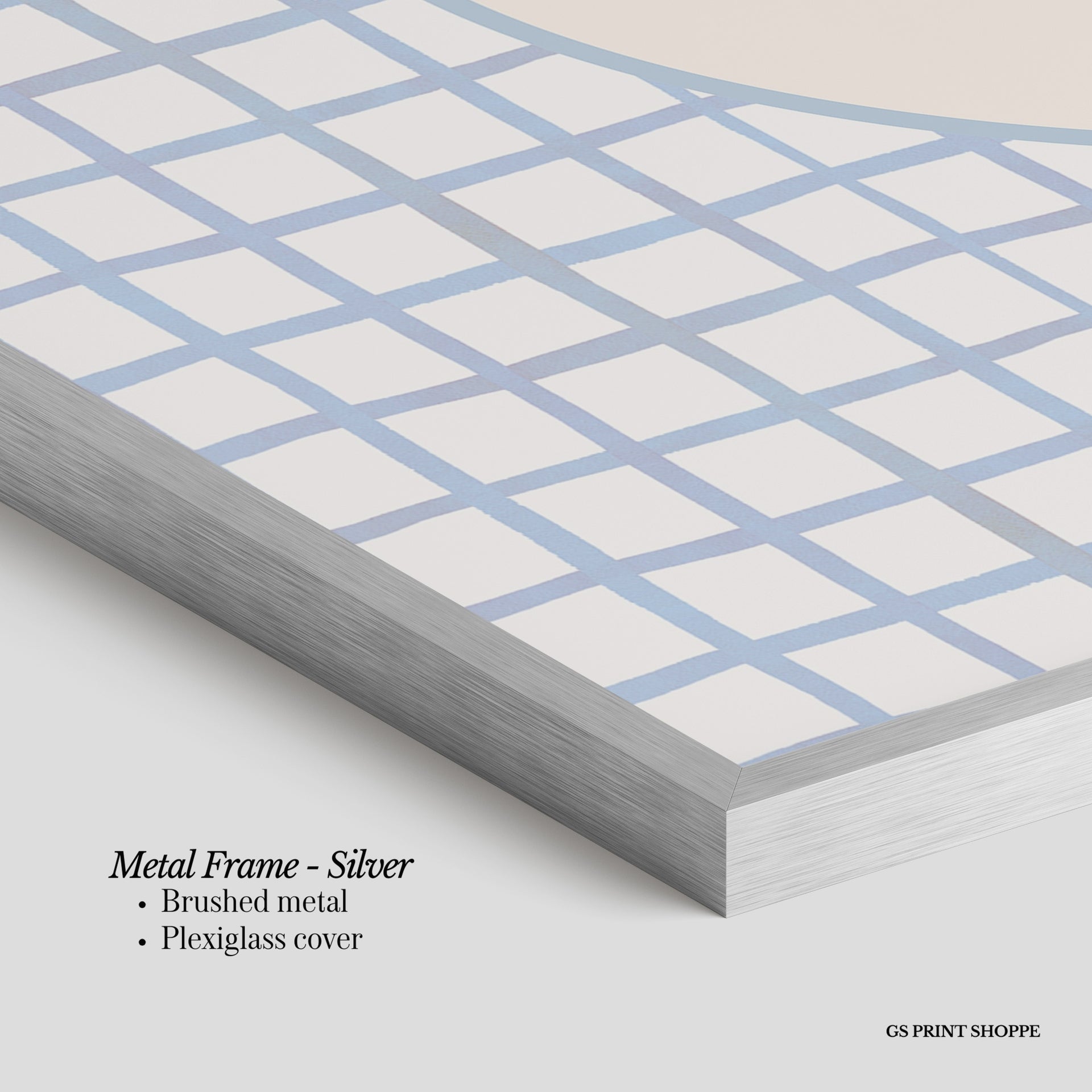 Metal Frame: Sleek and modern, our metal frame is crafted with brushed metal for a polished finish. It comes with durable plexiglass and sturdy metal hangers for horizontal or vertical display.