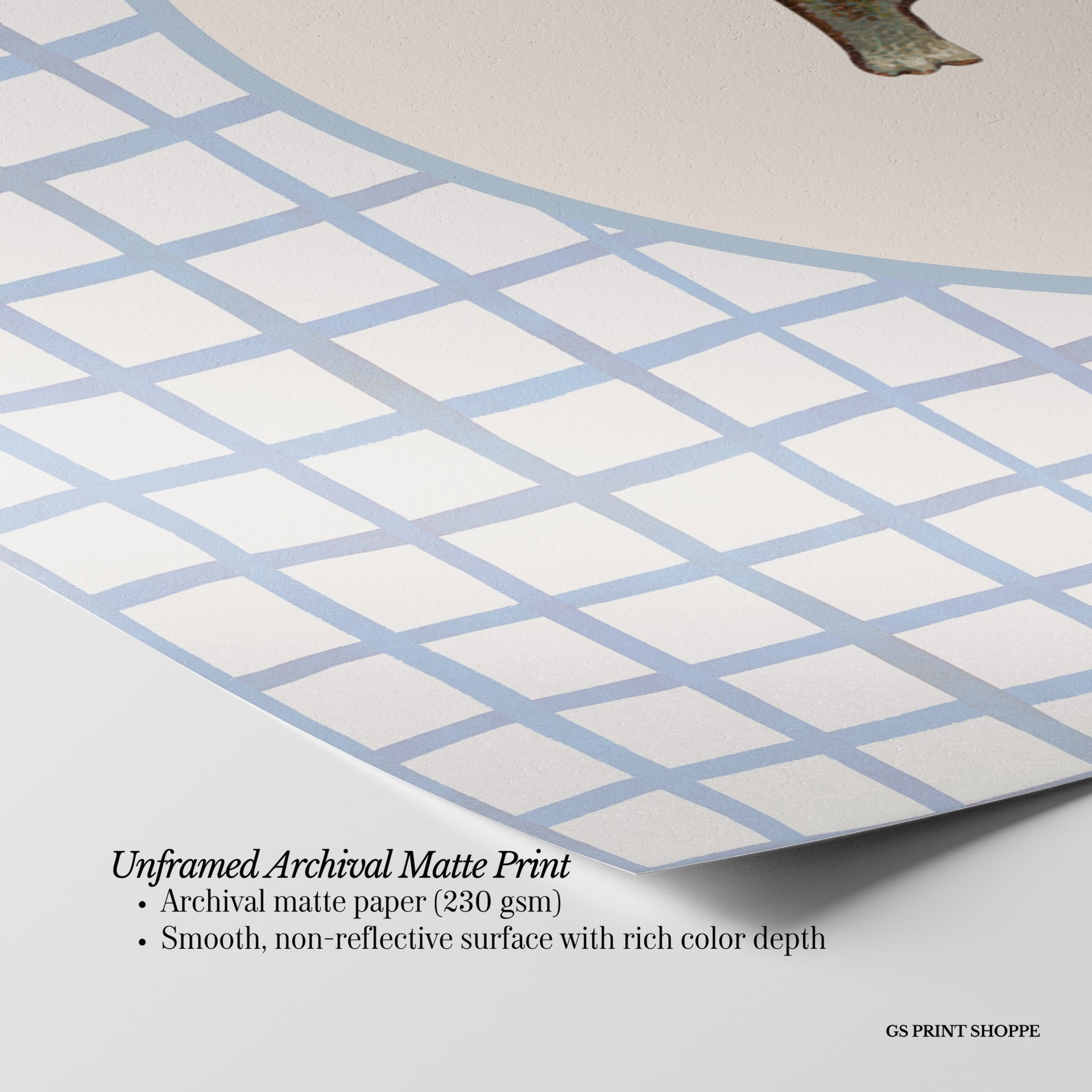 Unframed: This print is professionally printed on archival matte paper (230 gsm), a smooth, acid-free paper with a non-reflective finish. It will be carefully packaged to arrive safely at your door.