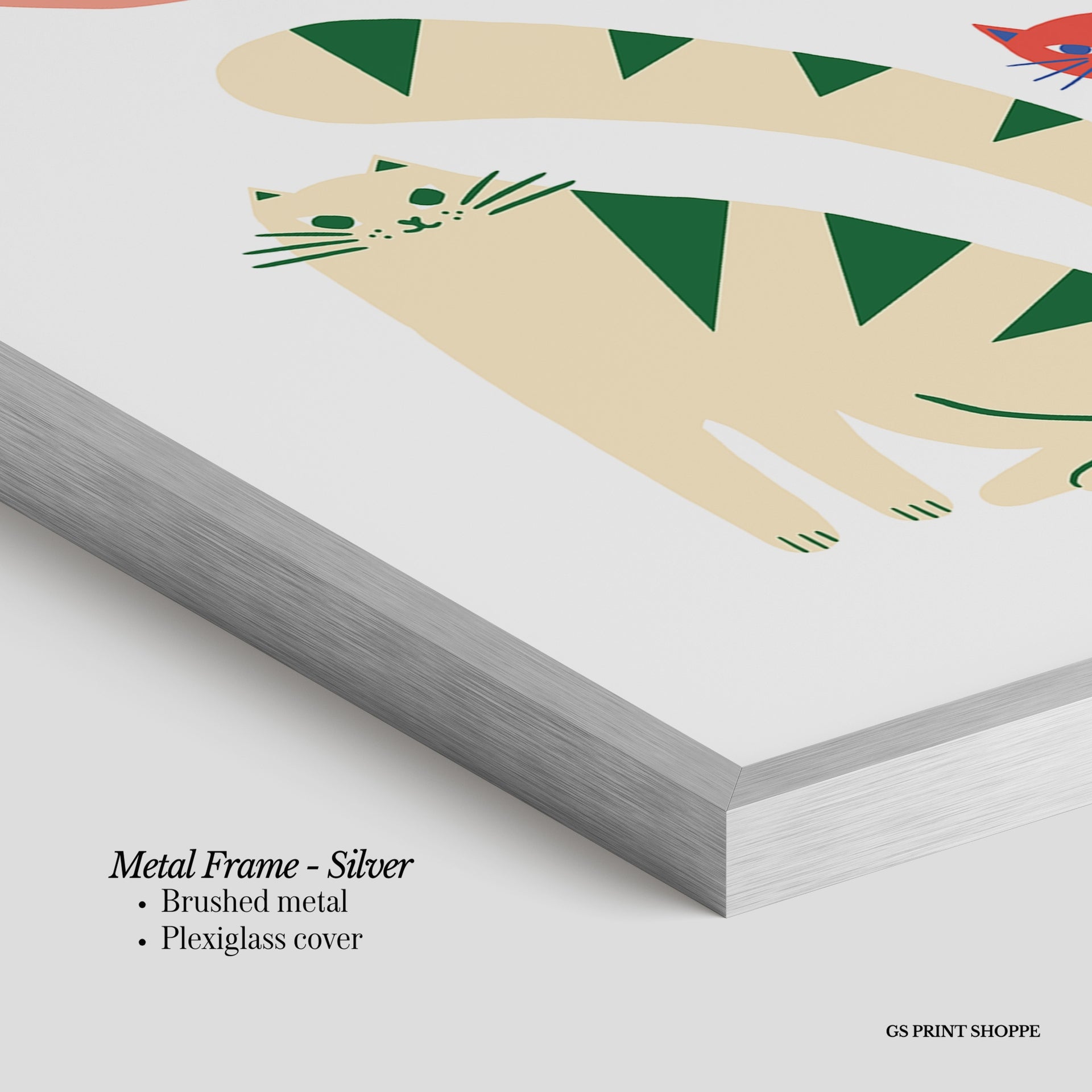 Metal Frame: Sleek and modern, our metal frame is crafted with brushed metal for a polished finish. It comes with durable plexiglass and sturdy metal hangers for horizontal or vertical display.